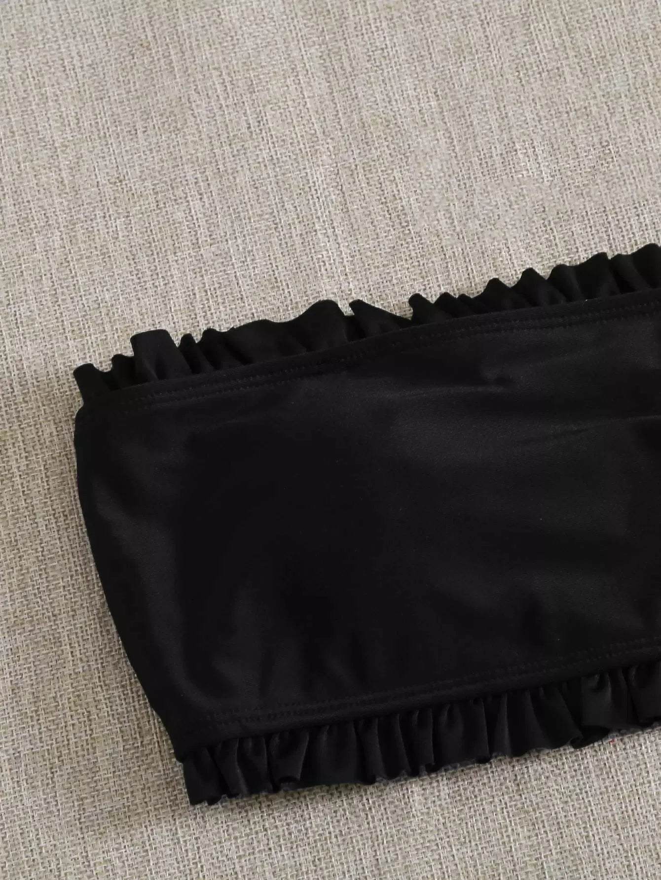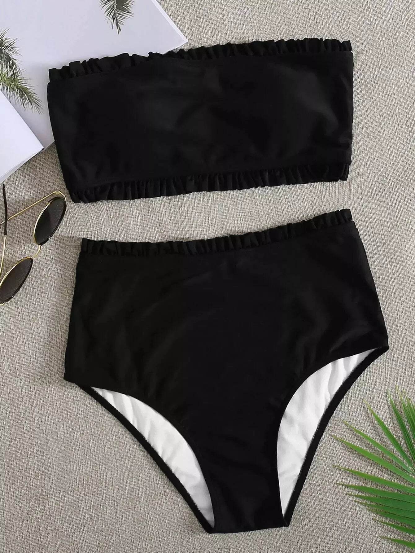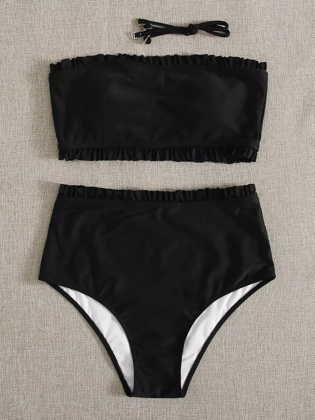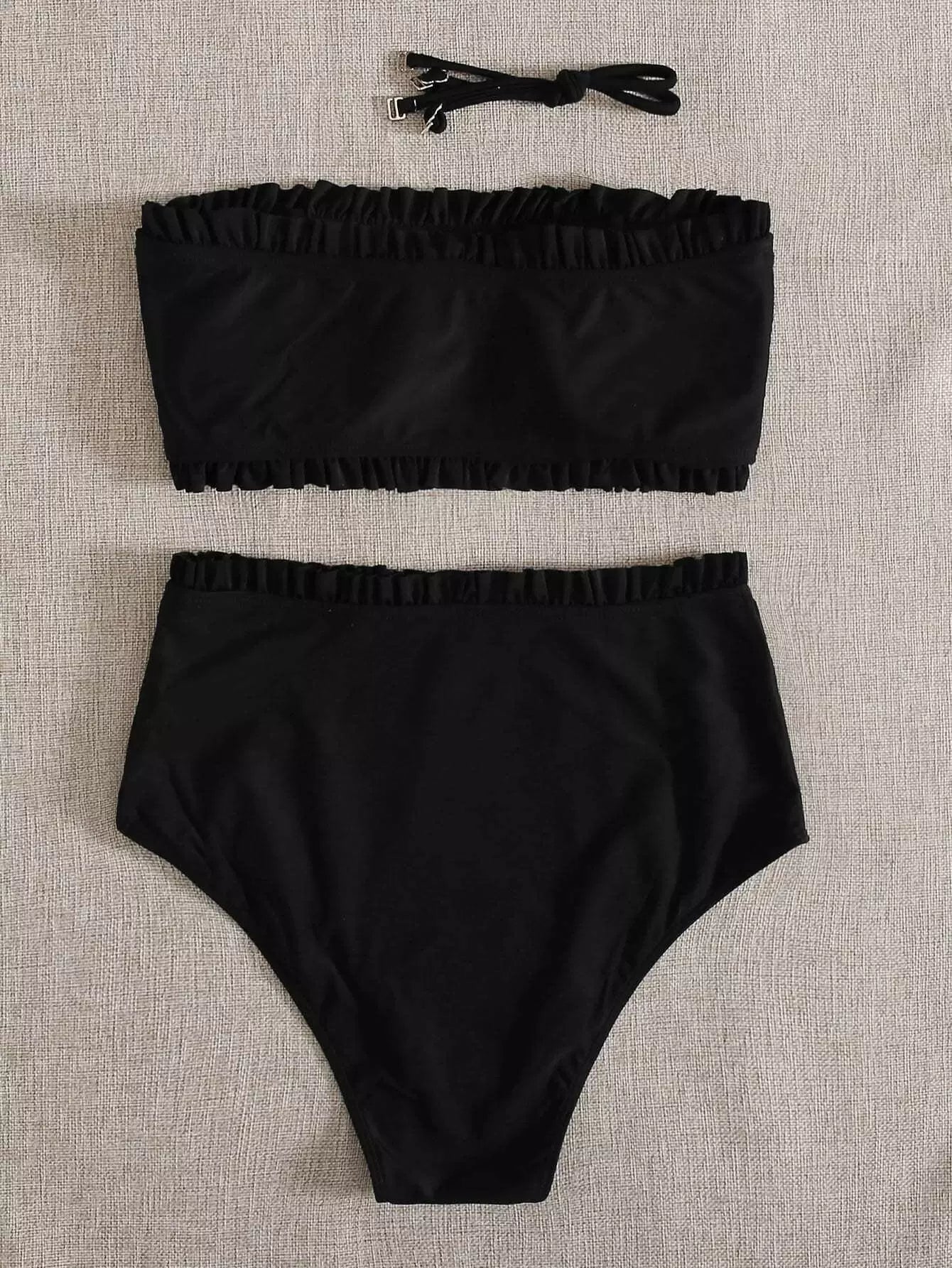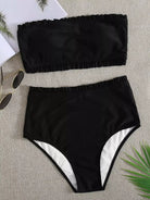 Lettuce Trim Top With High Waisted Bikini Set
