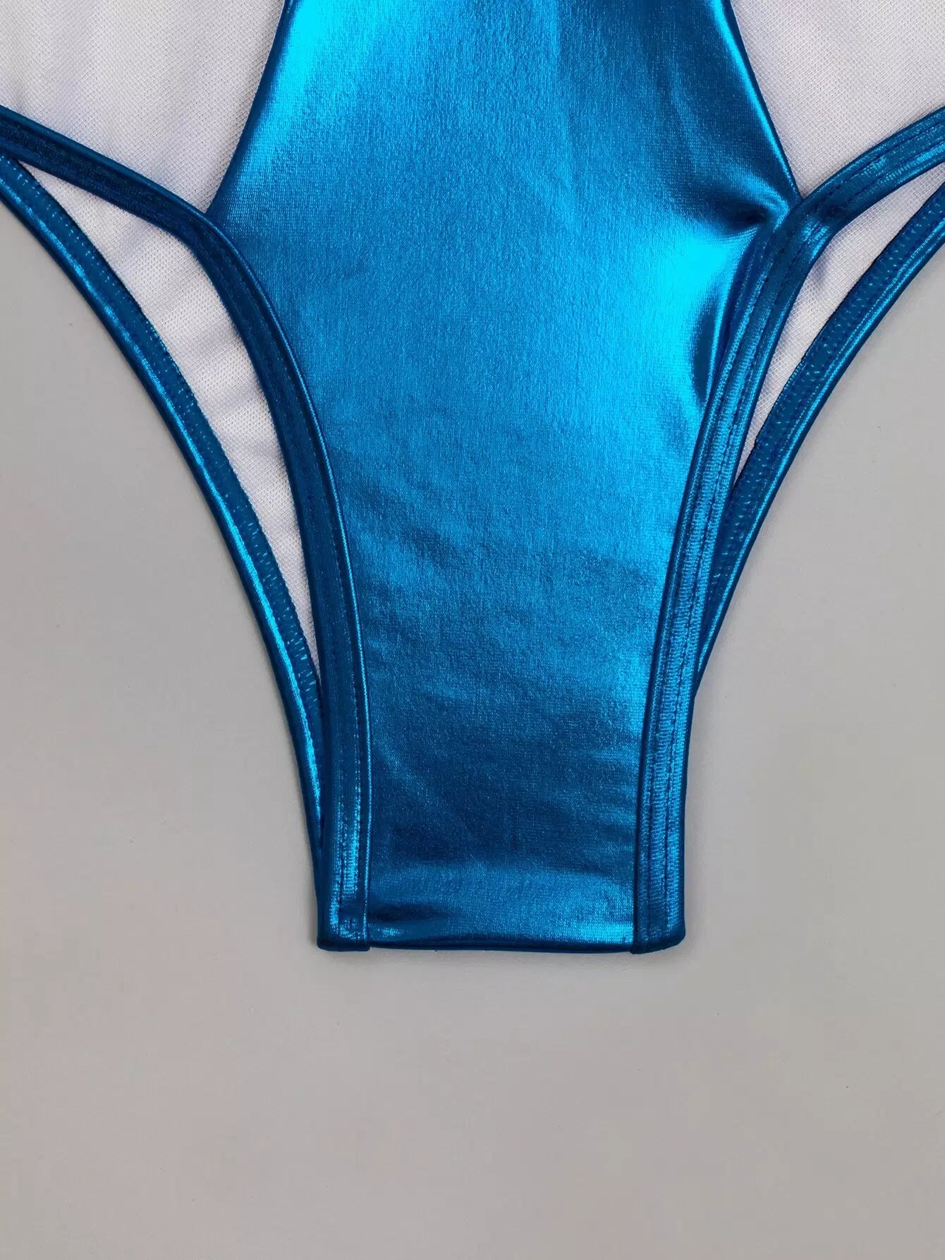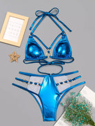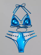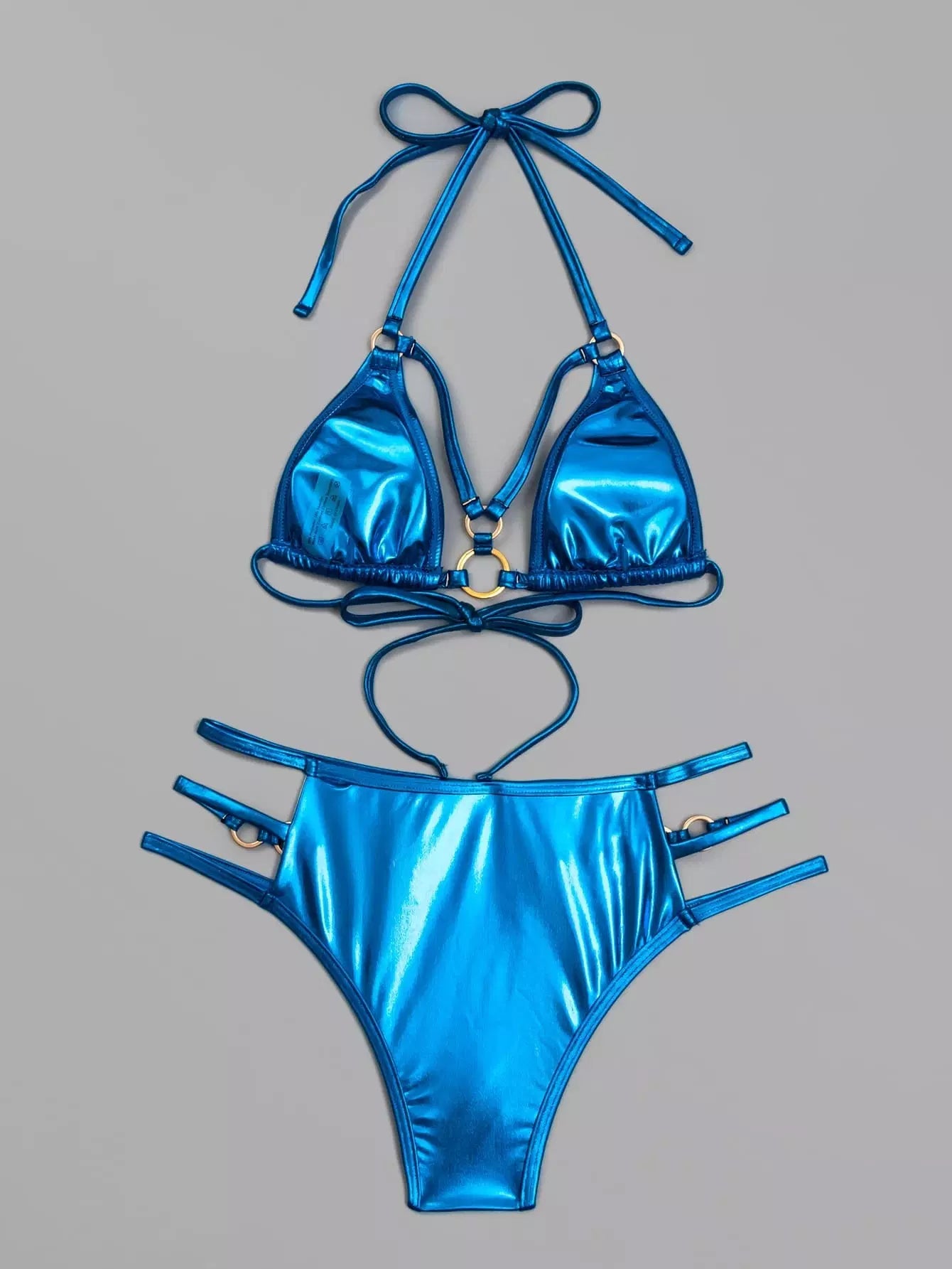 Metallic Ring Linked Micro Triangle Bikini Swimsuit