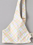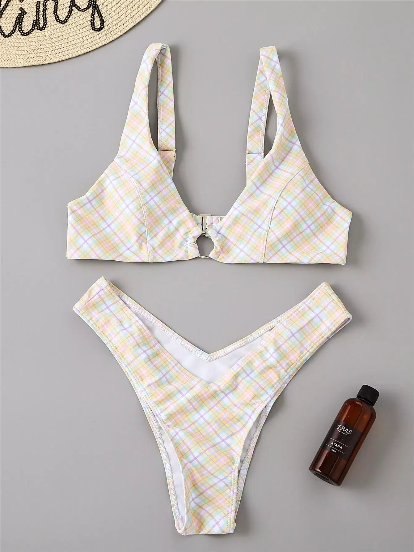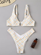 Plaid Ring Linked High Cut Bikini Swimsuit