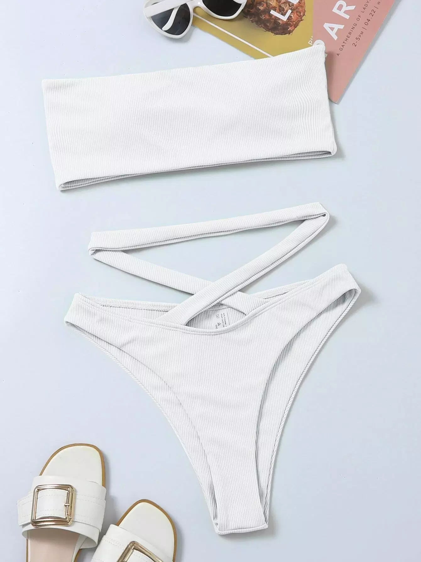 Rib Criss Detail Bandeau Bikini Swimsuit