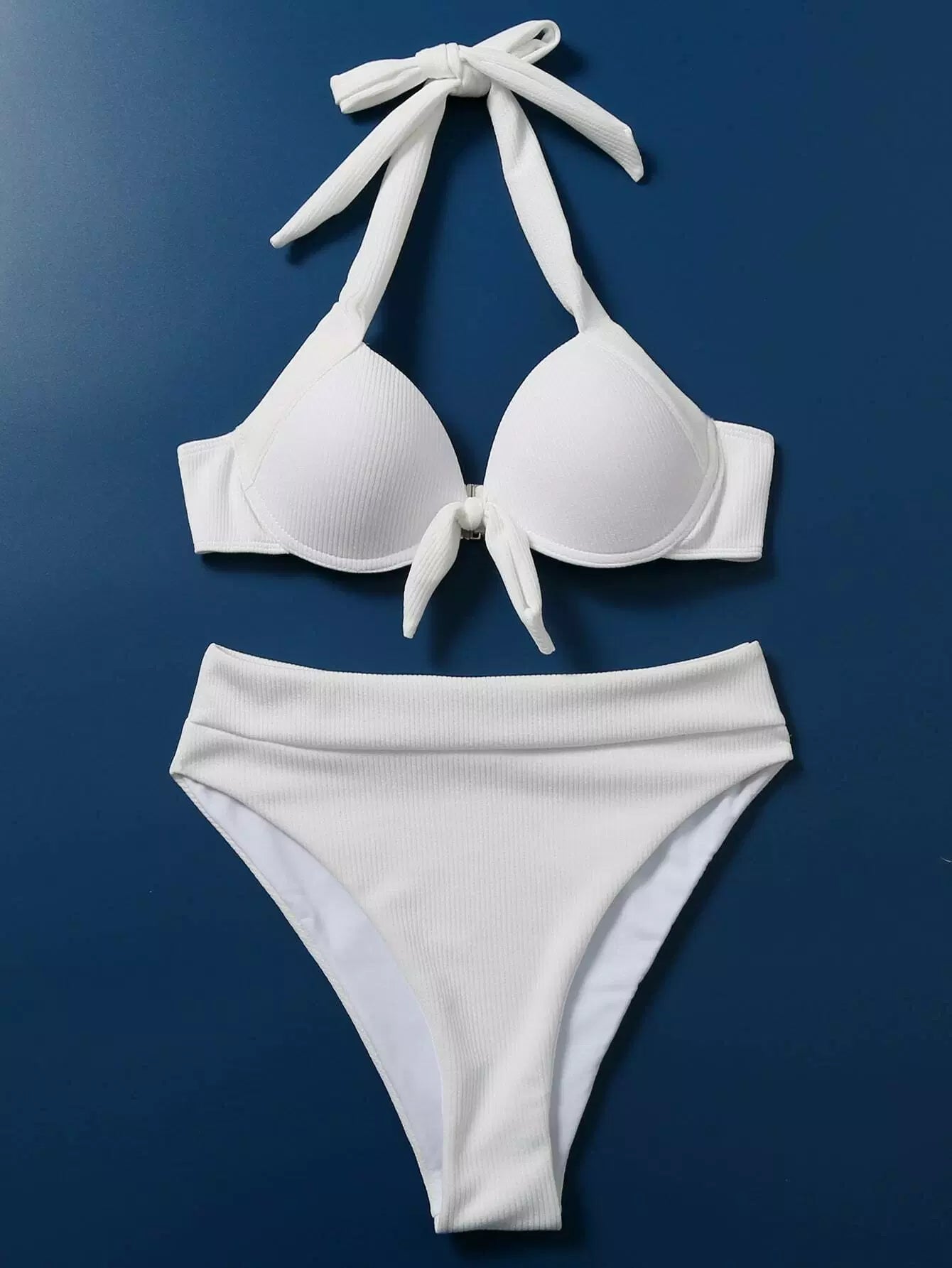 Rib Underwire High Waisted Bikini Swimsuit