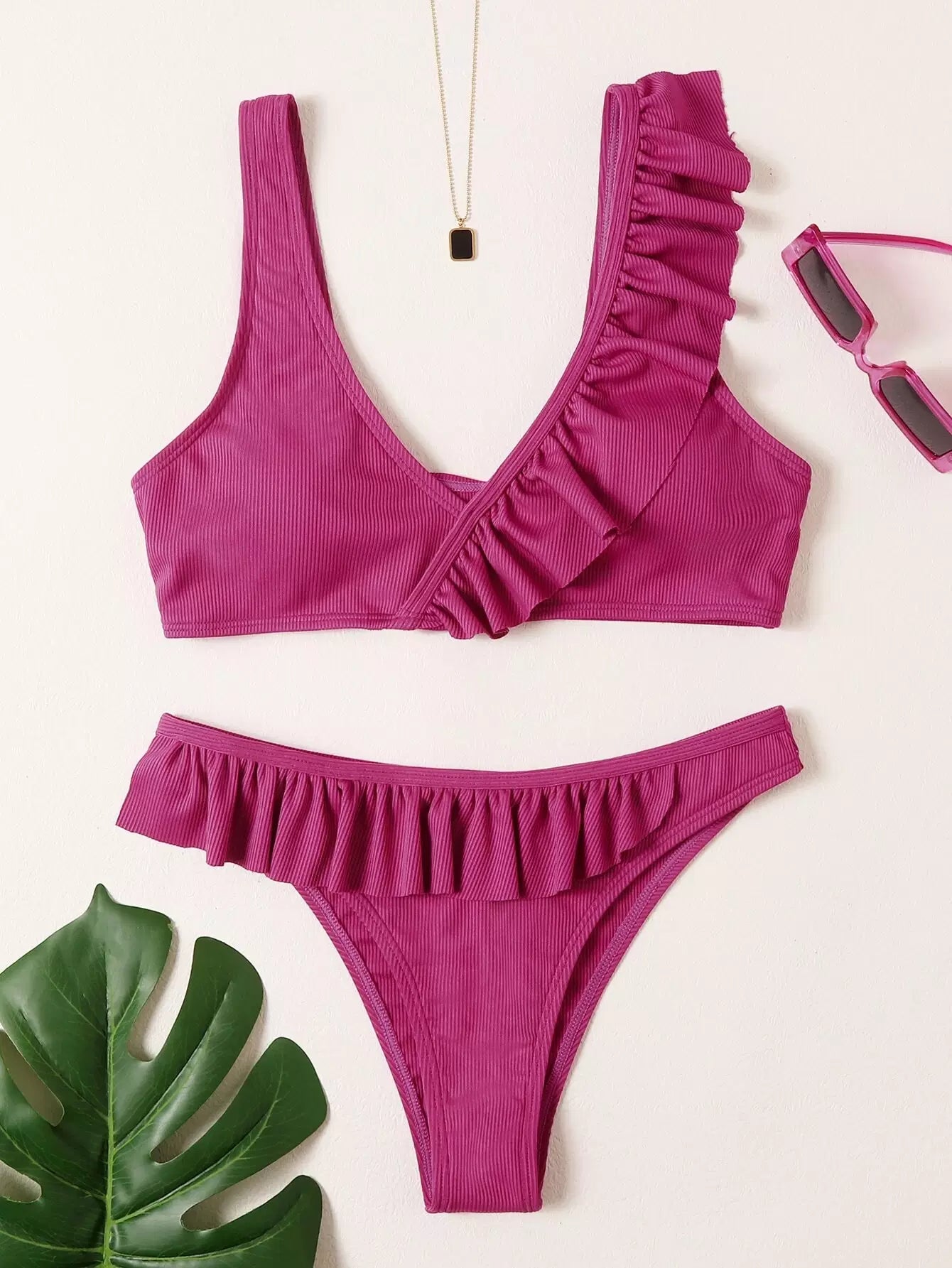 Ruffle Trim Bikini Swimsuit