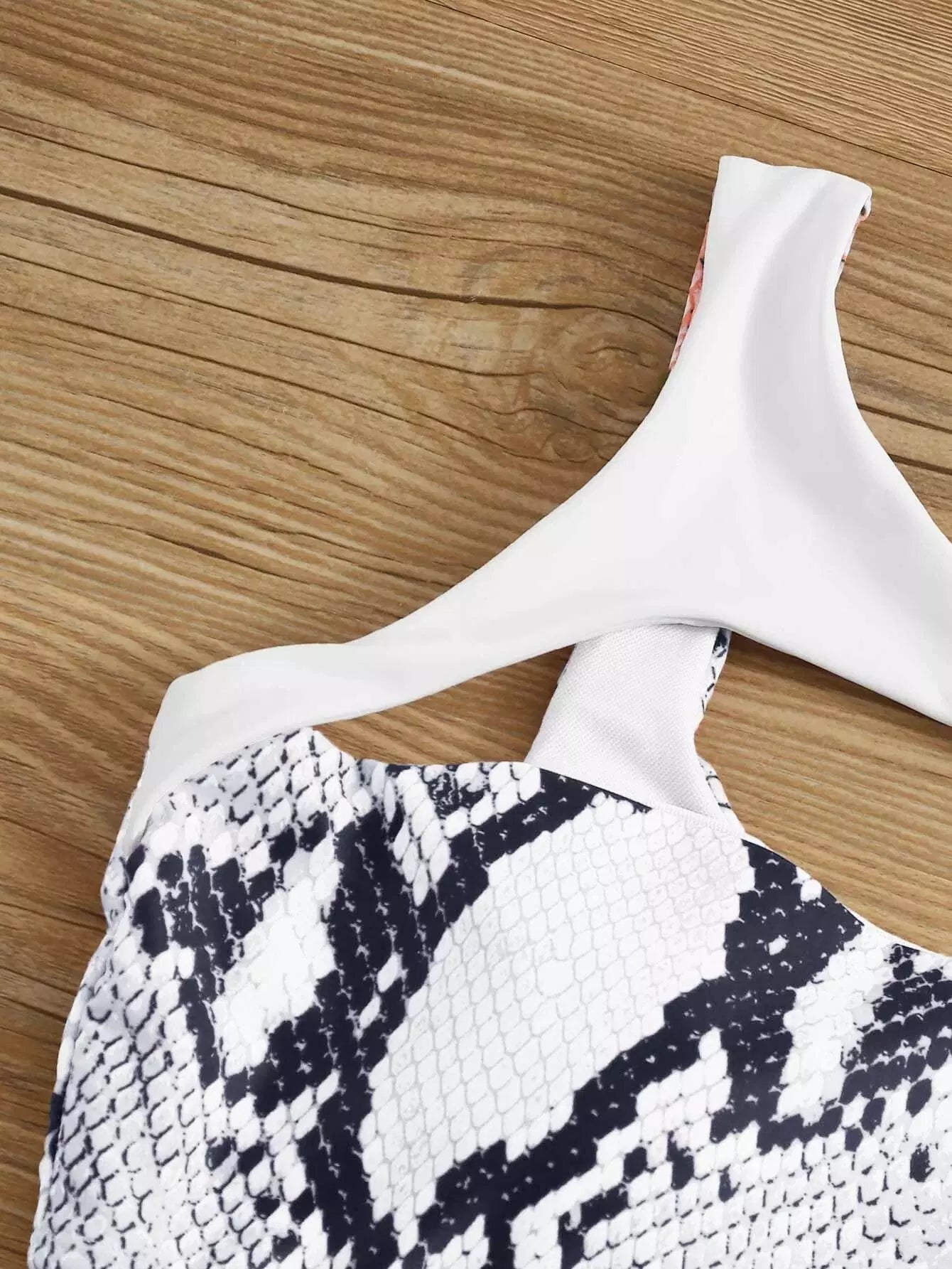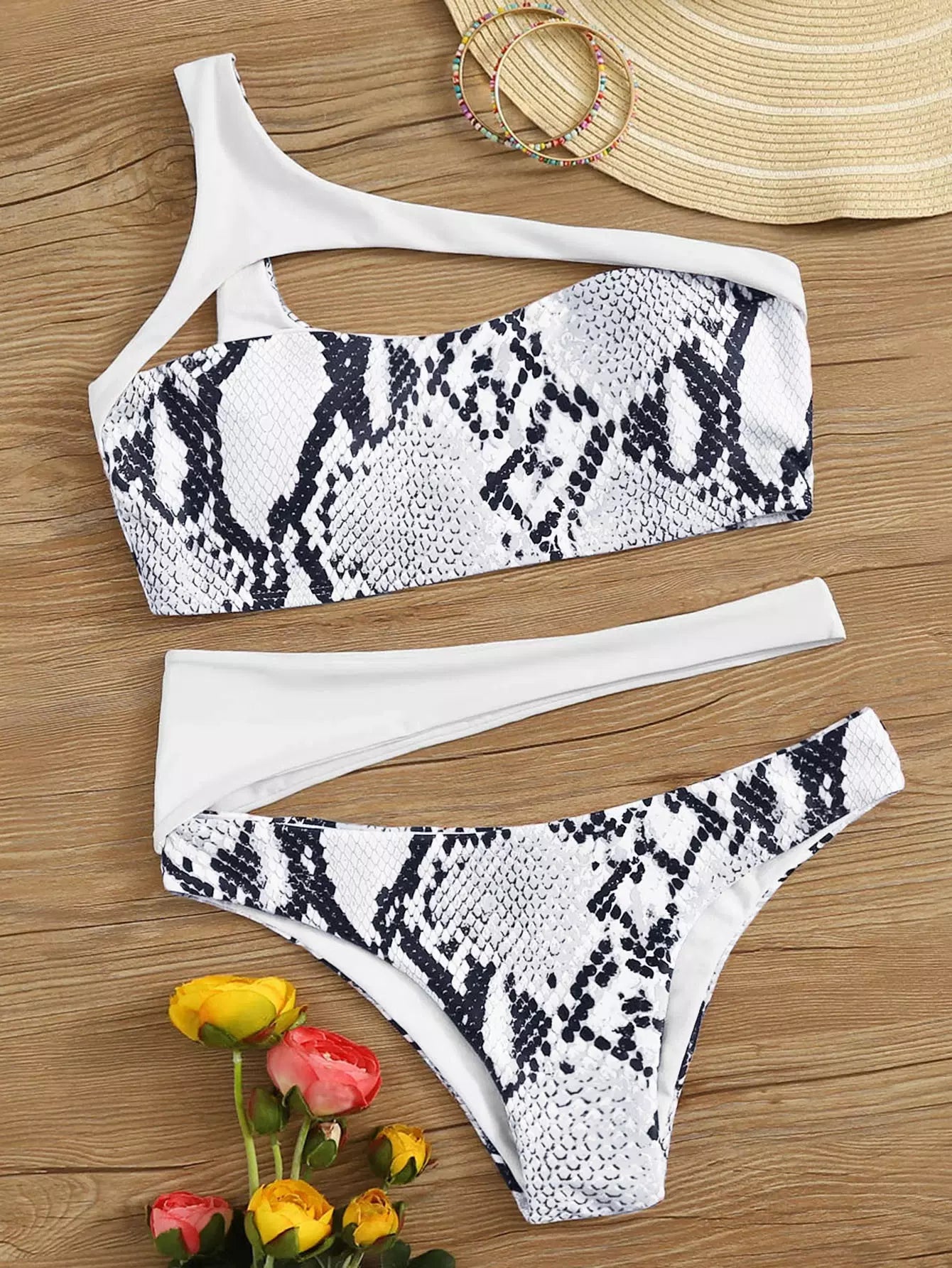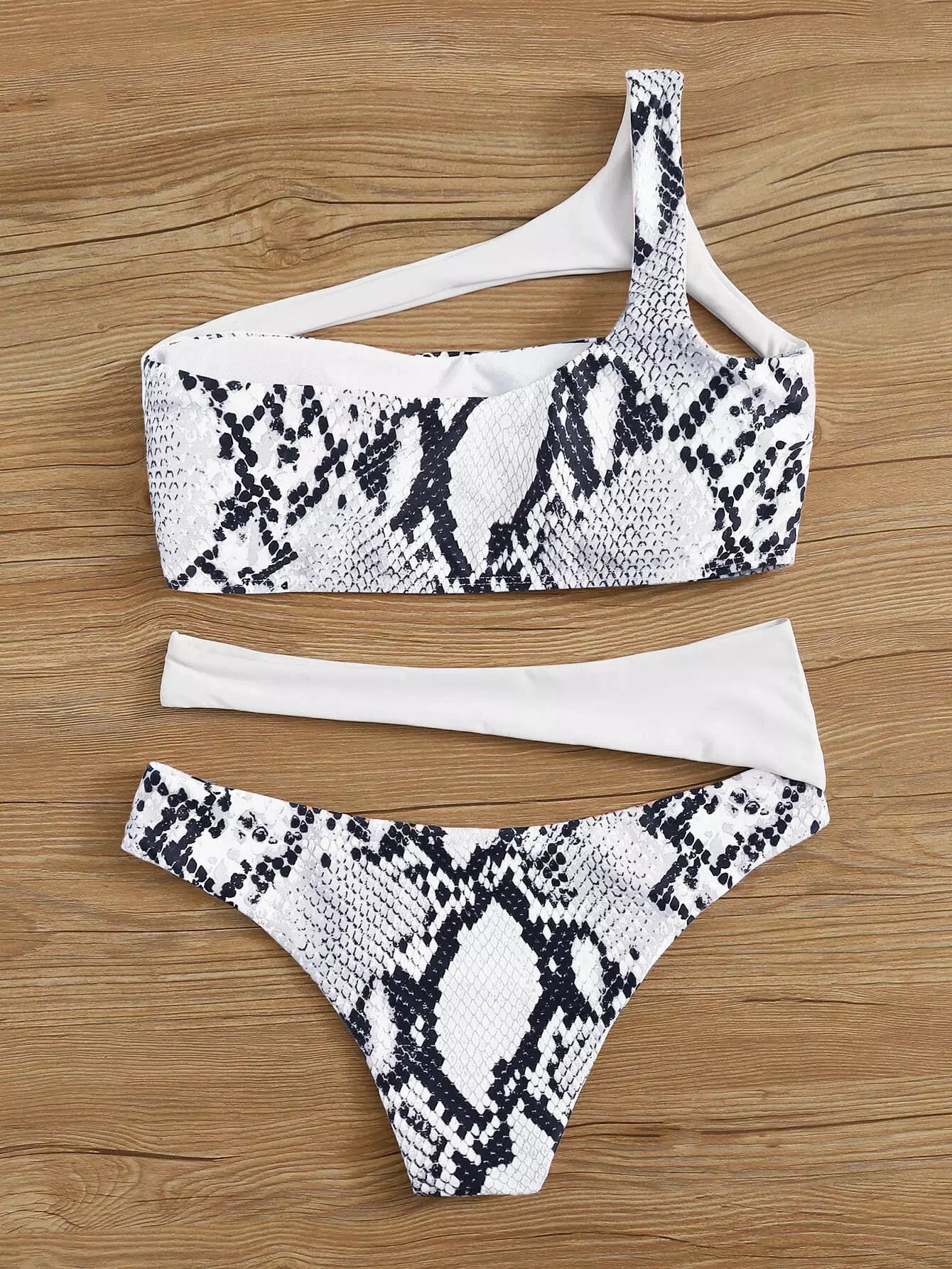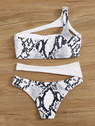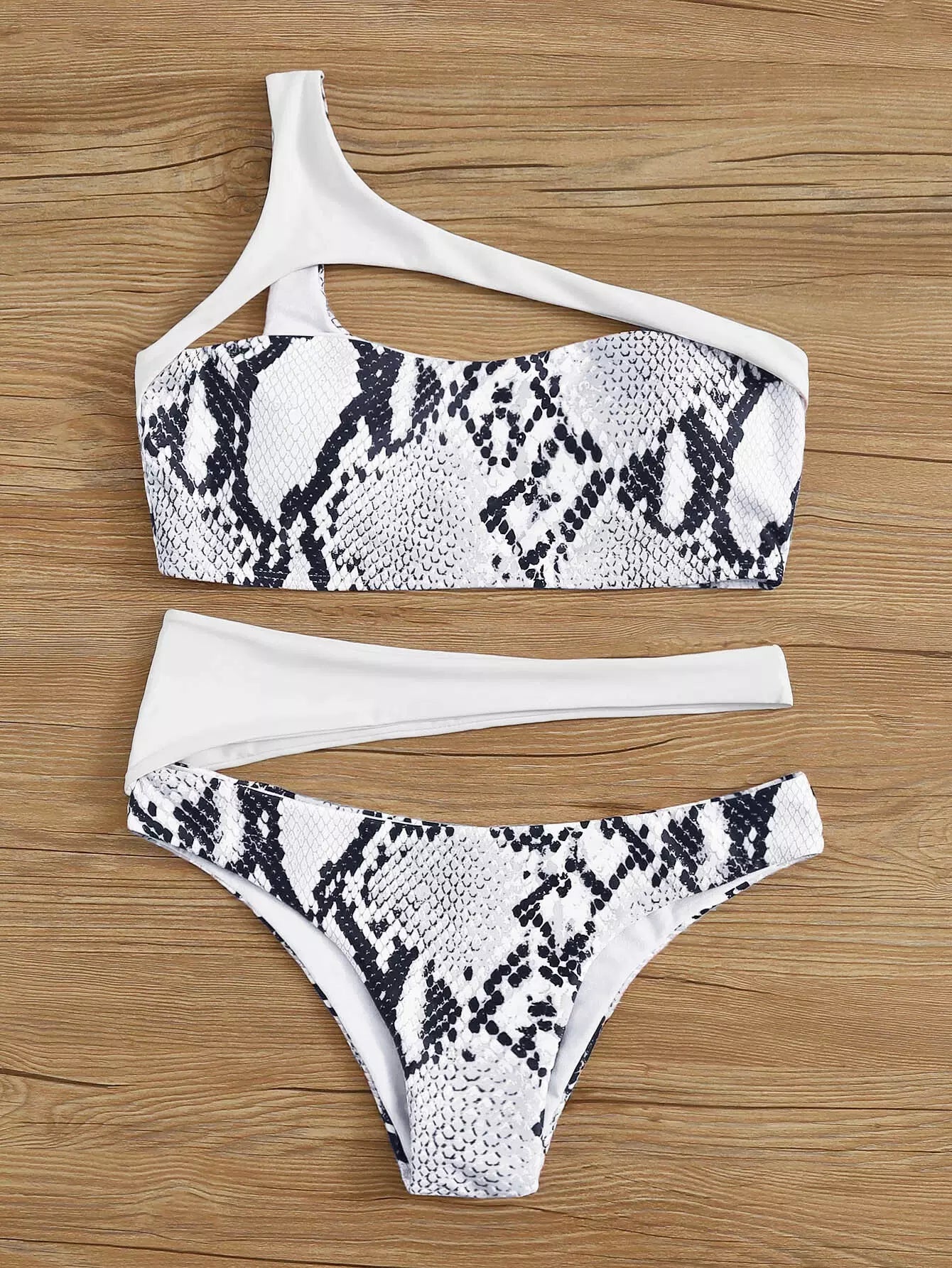 Snakeskin Cut-out One Shoulder Bikini Swimsuit
