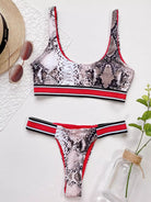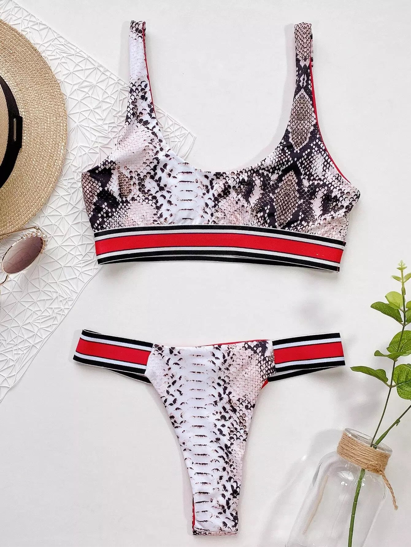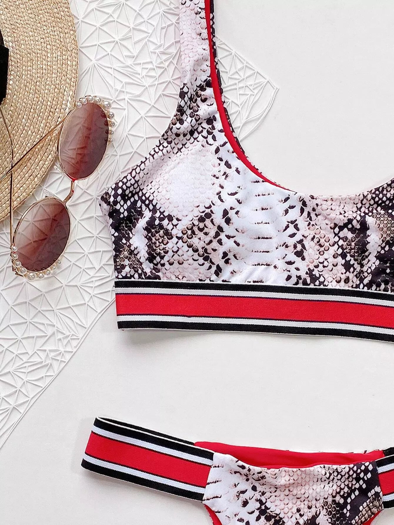 Snakeskin Print Contrast Binding Bikini Swimsuit