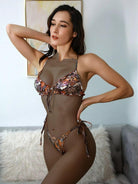 Snakeskin Print Lettuce Trim Tie Side Bikini Swimsuit