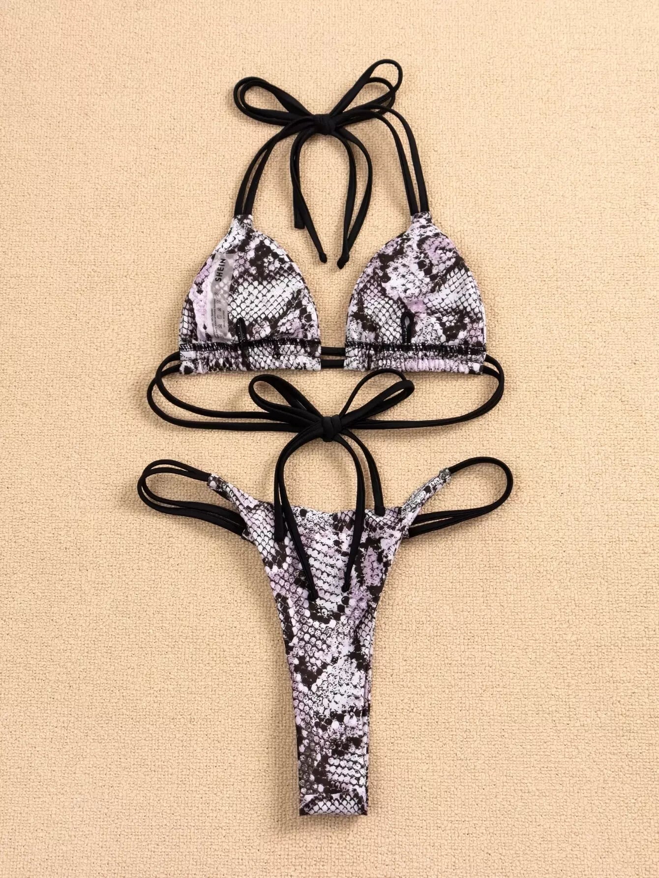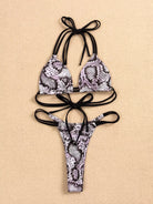 Snakeskin Print Triangle Thong Bikini Swimsuit