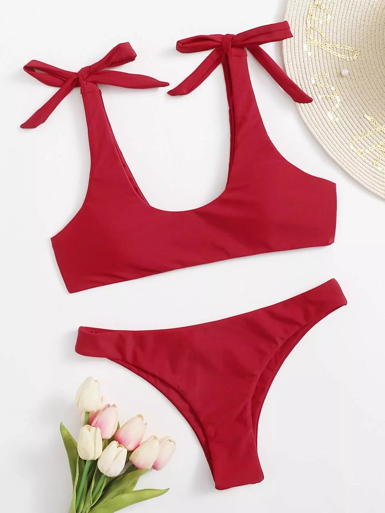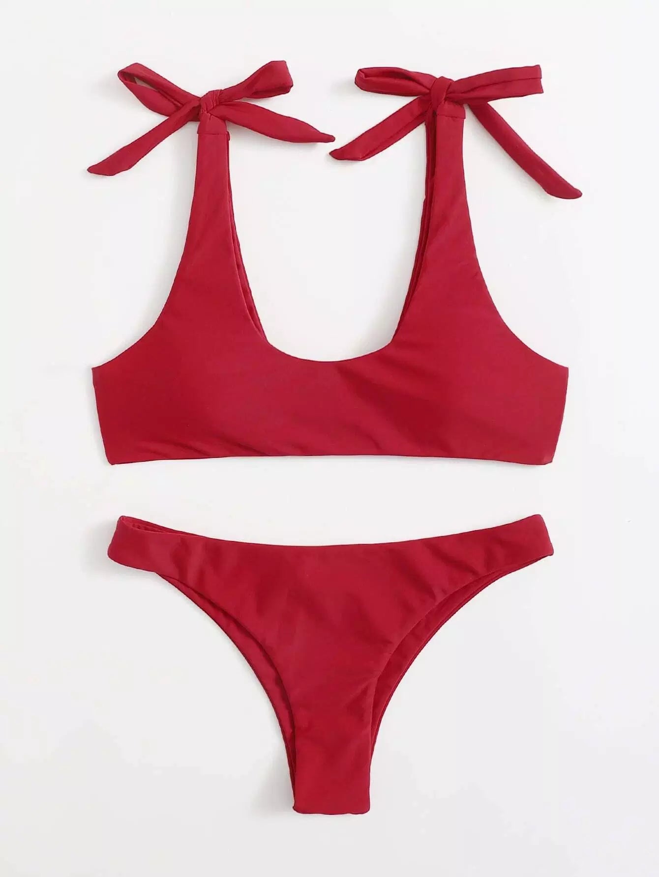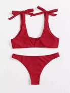 Solid Tie Shoulder Bikini Swimsuit