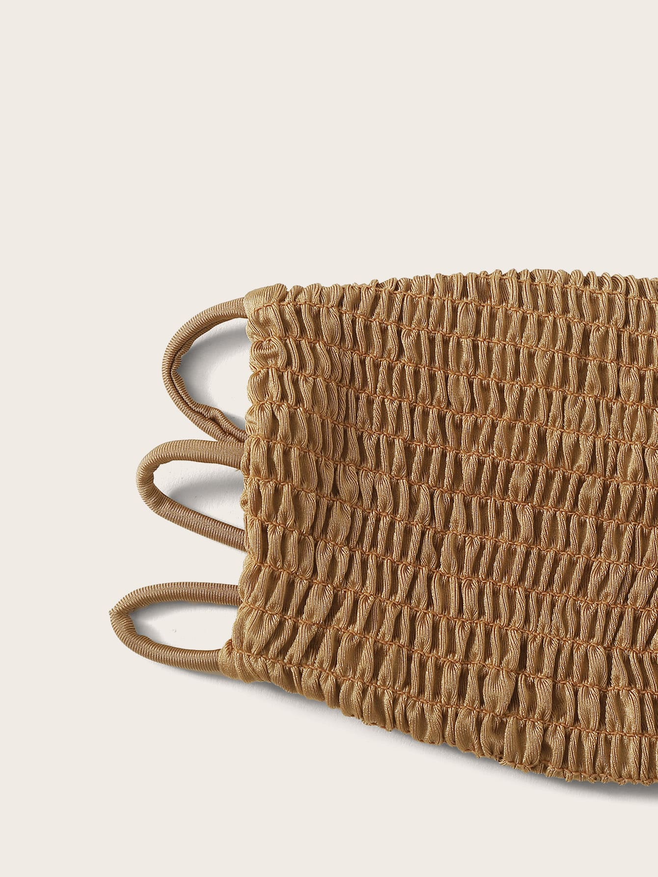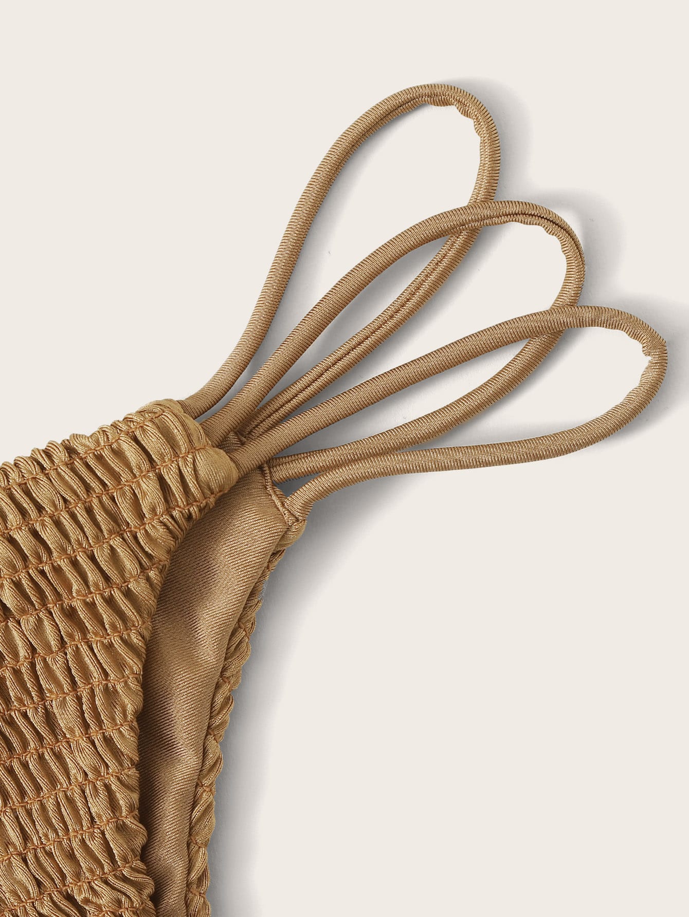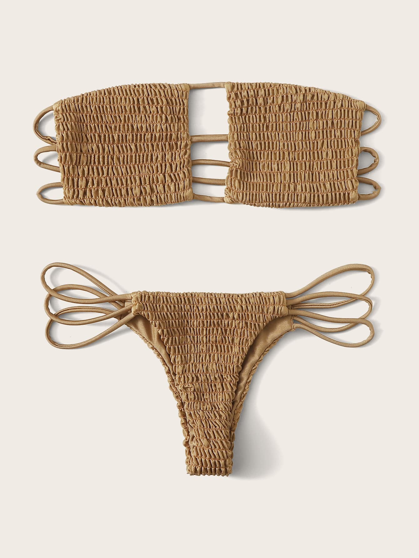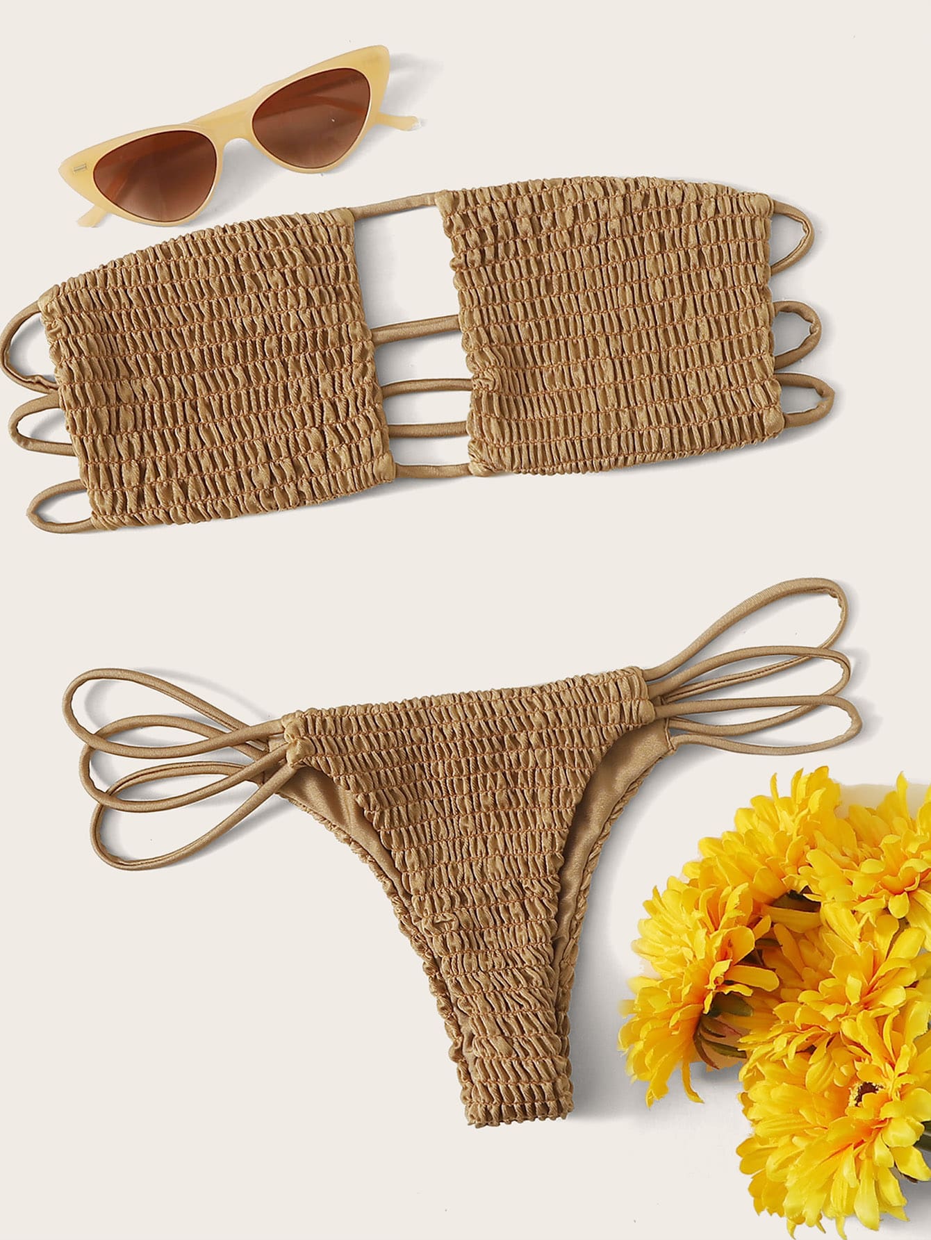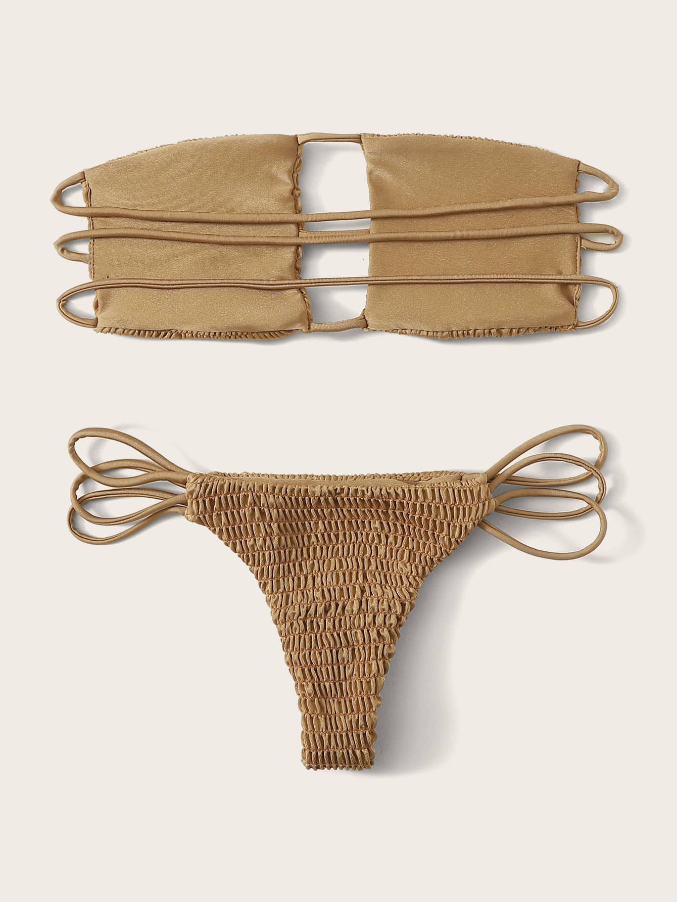Smocked Bandeau Ladder Cutout Bikini Swimsuit