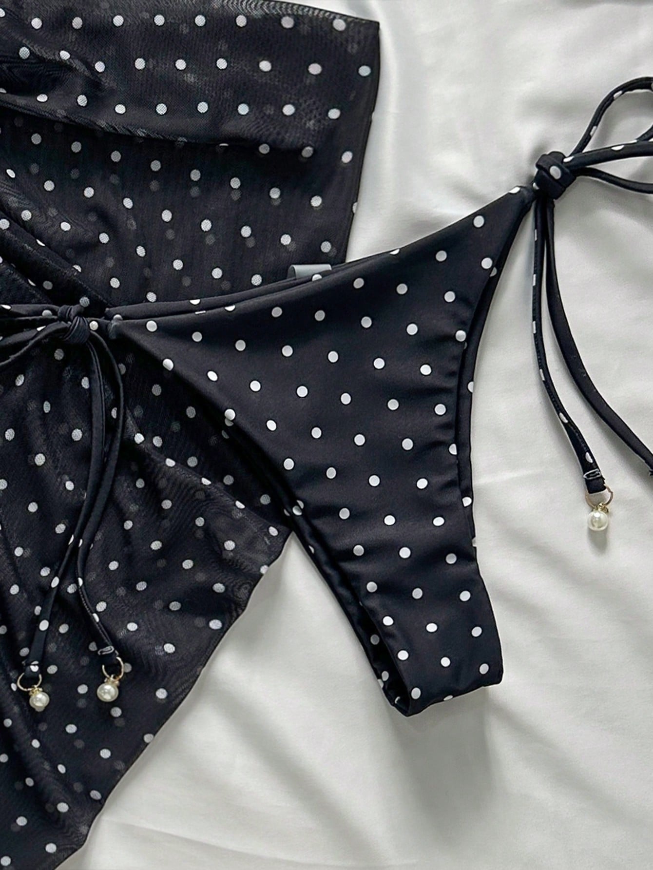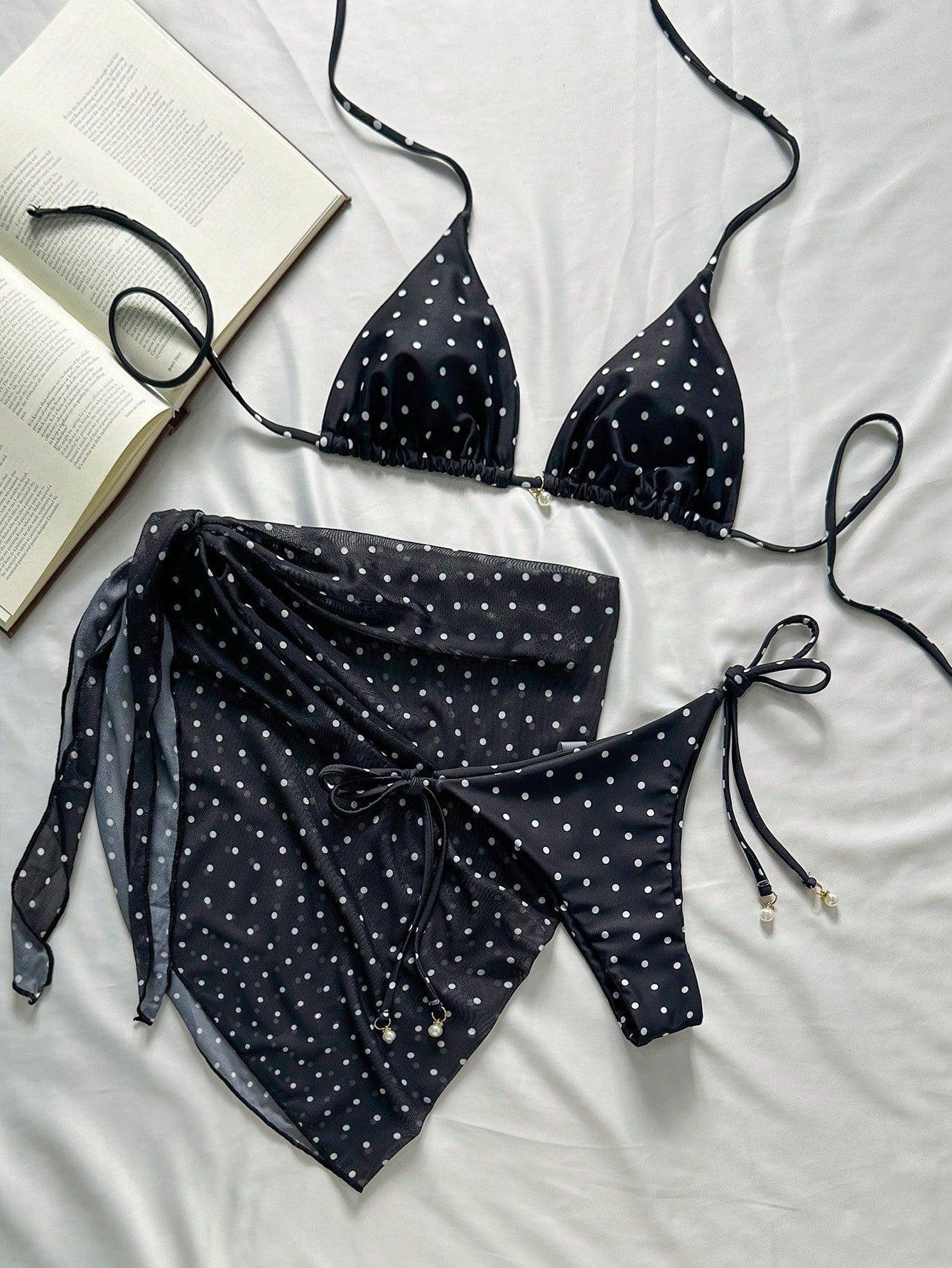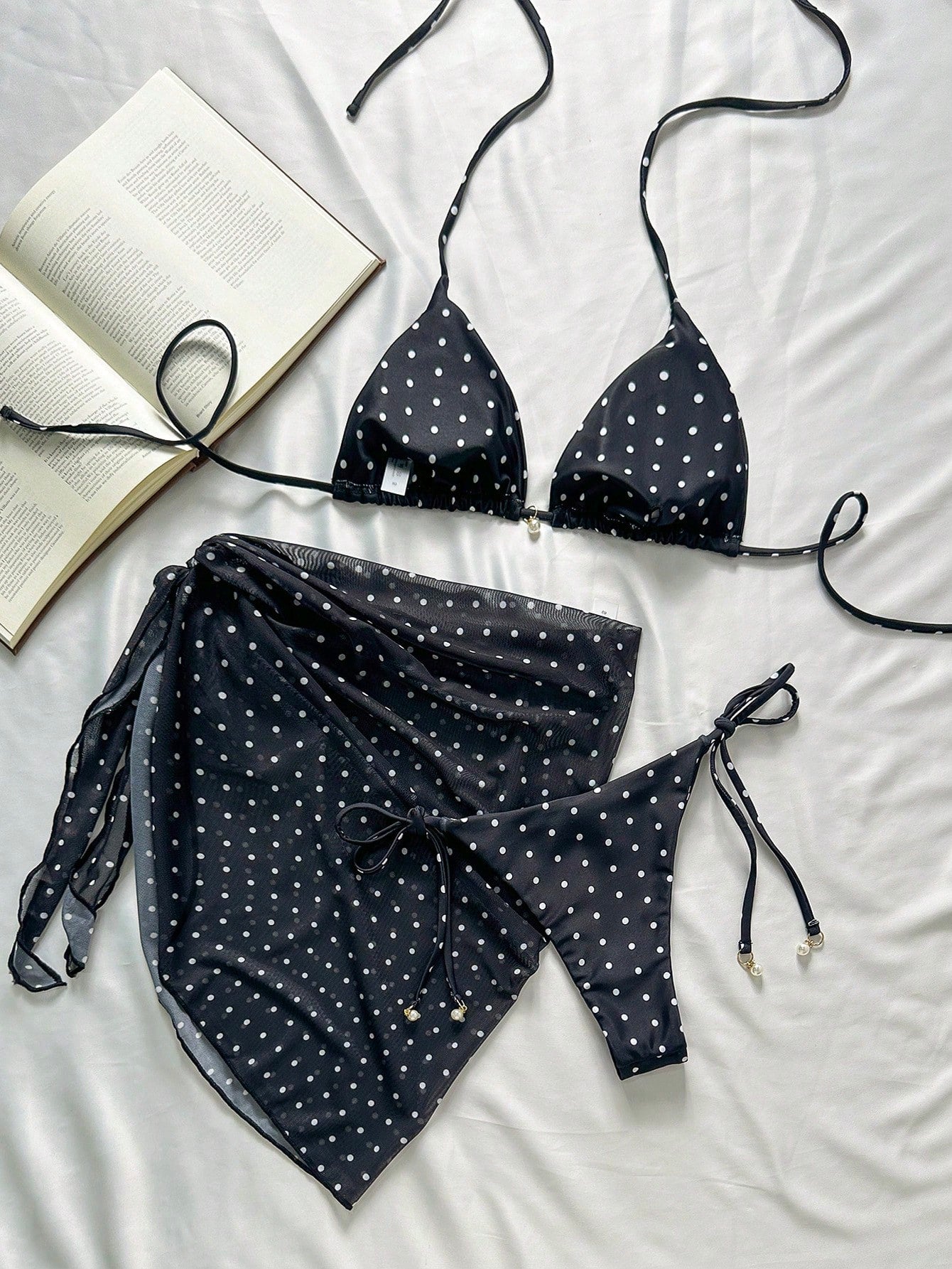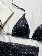 Swim Mod 3pcs Beach Summer Outfits For Women: Black & White Polka Dot Print Spaghetti Strap