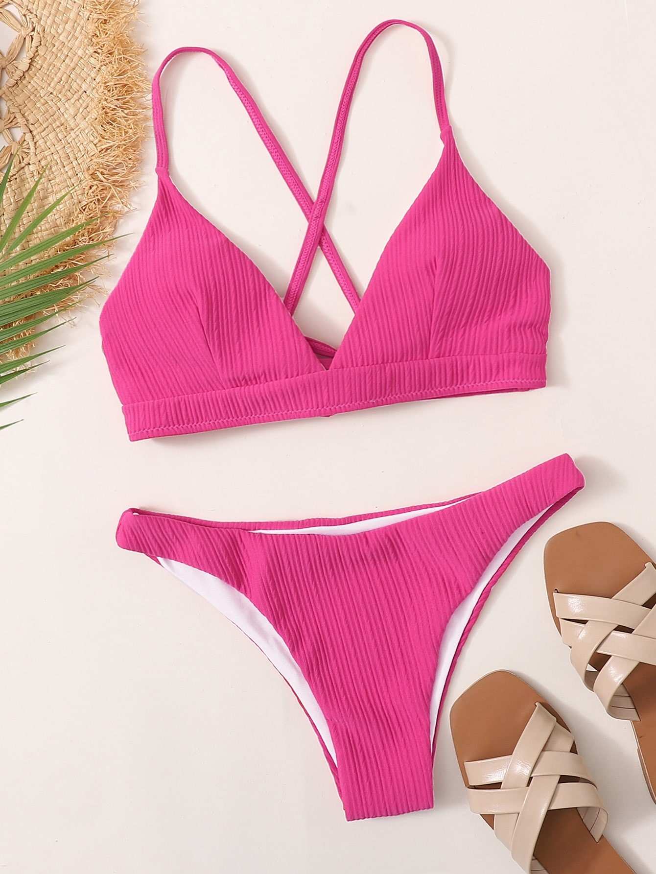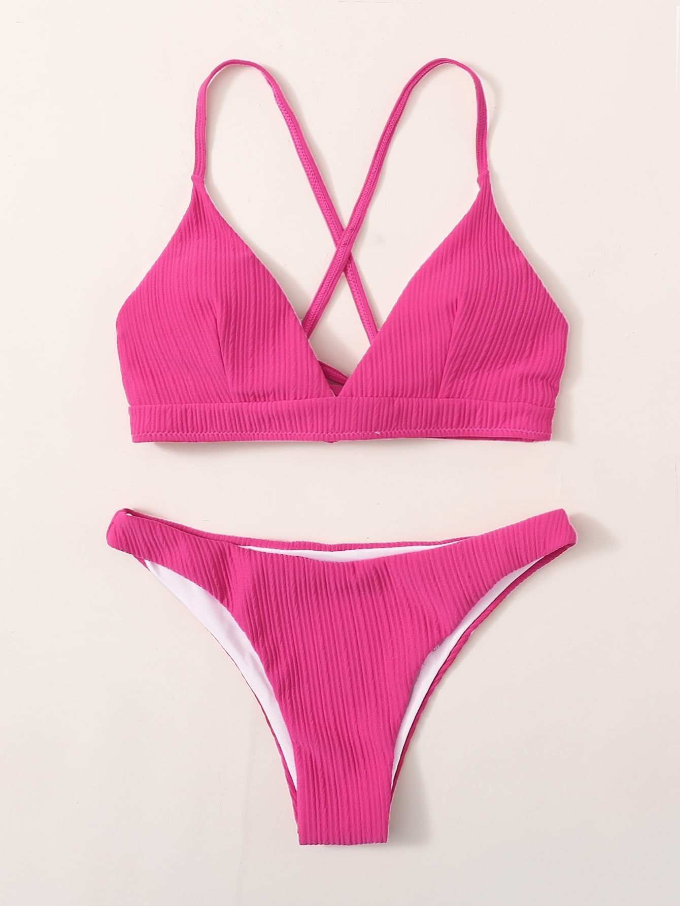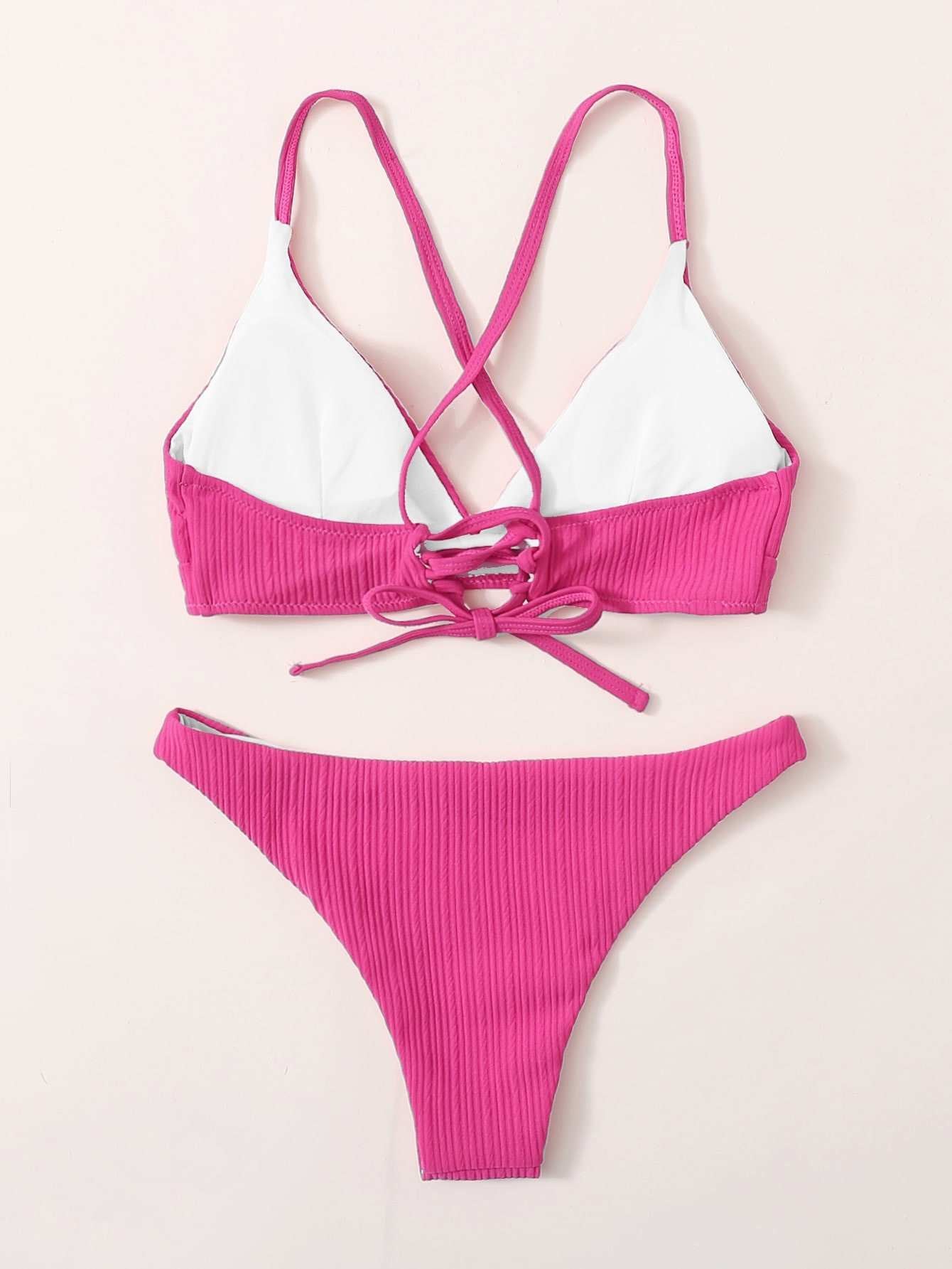 Textured Crisscross Tie Back Bikini Swimsuit