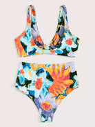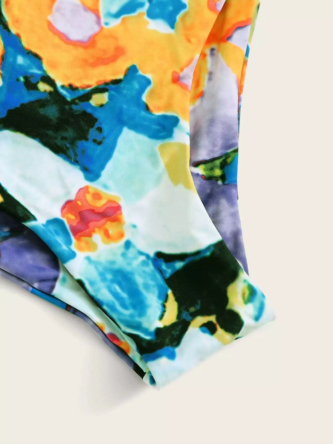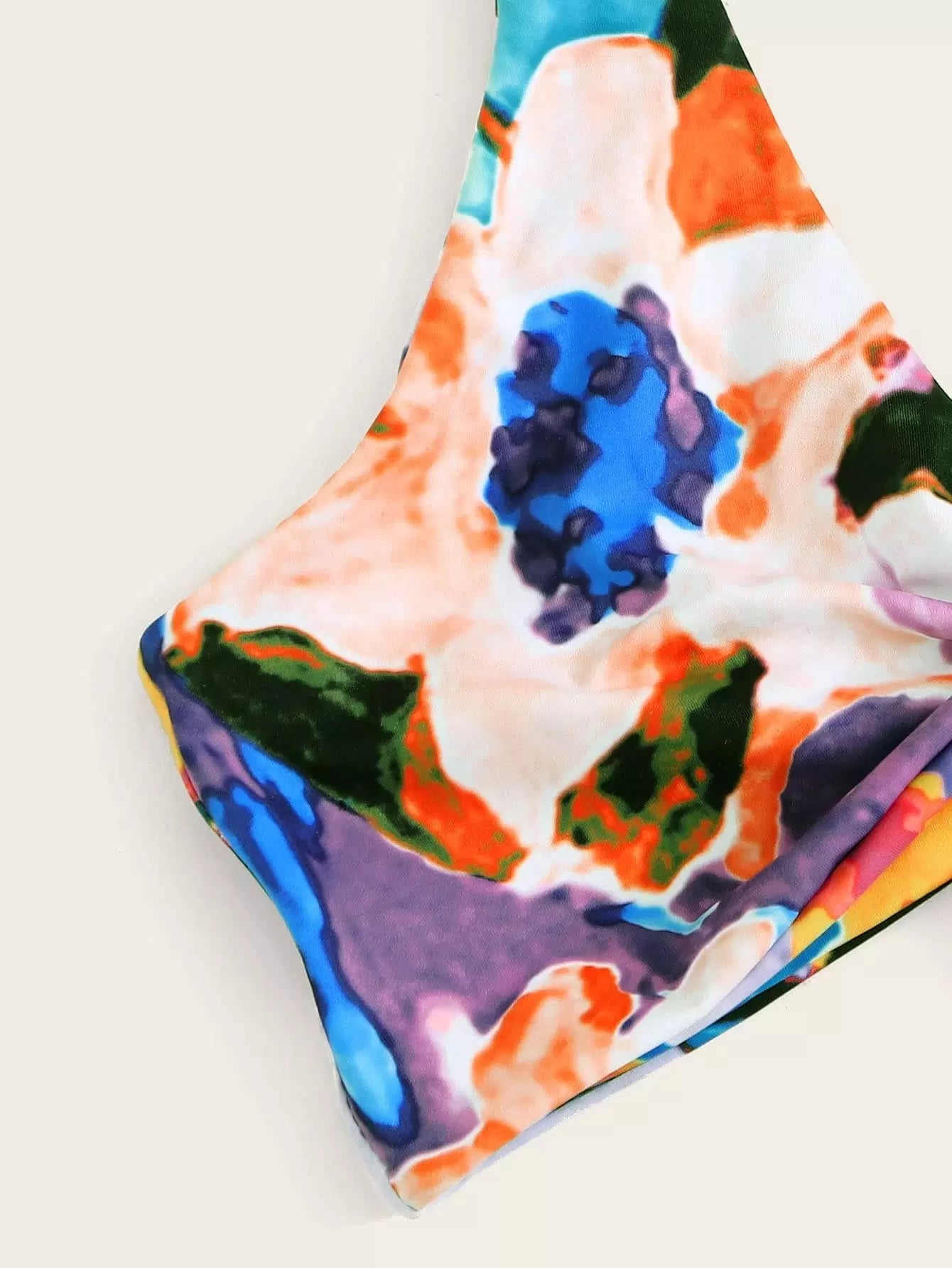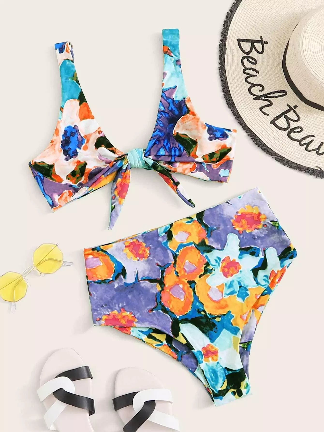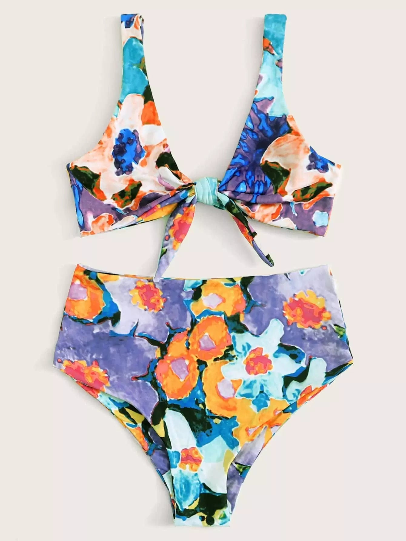 Tie Dye Knot Front High Waisted Bikini Swimsuit