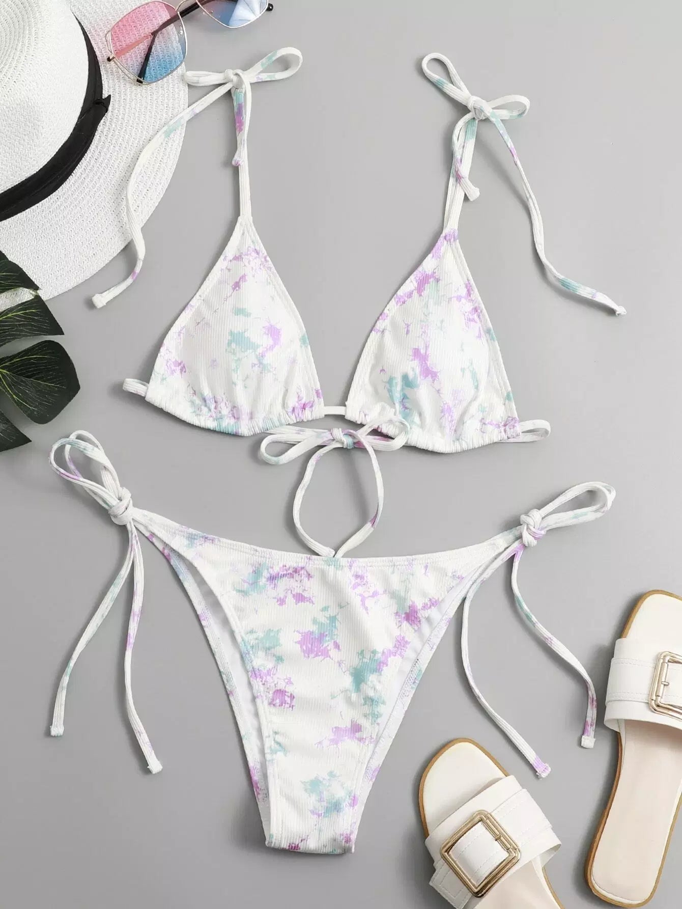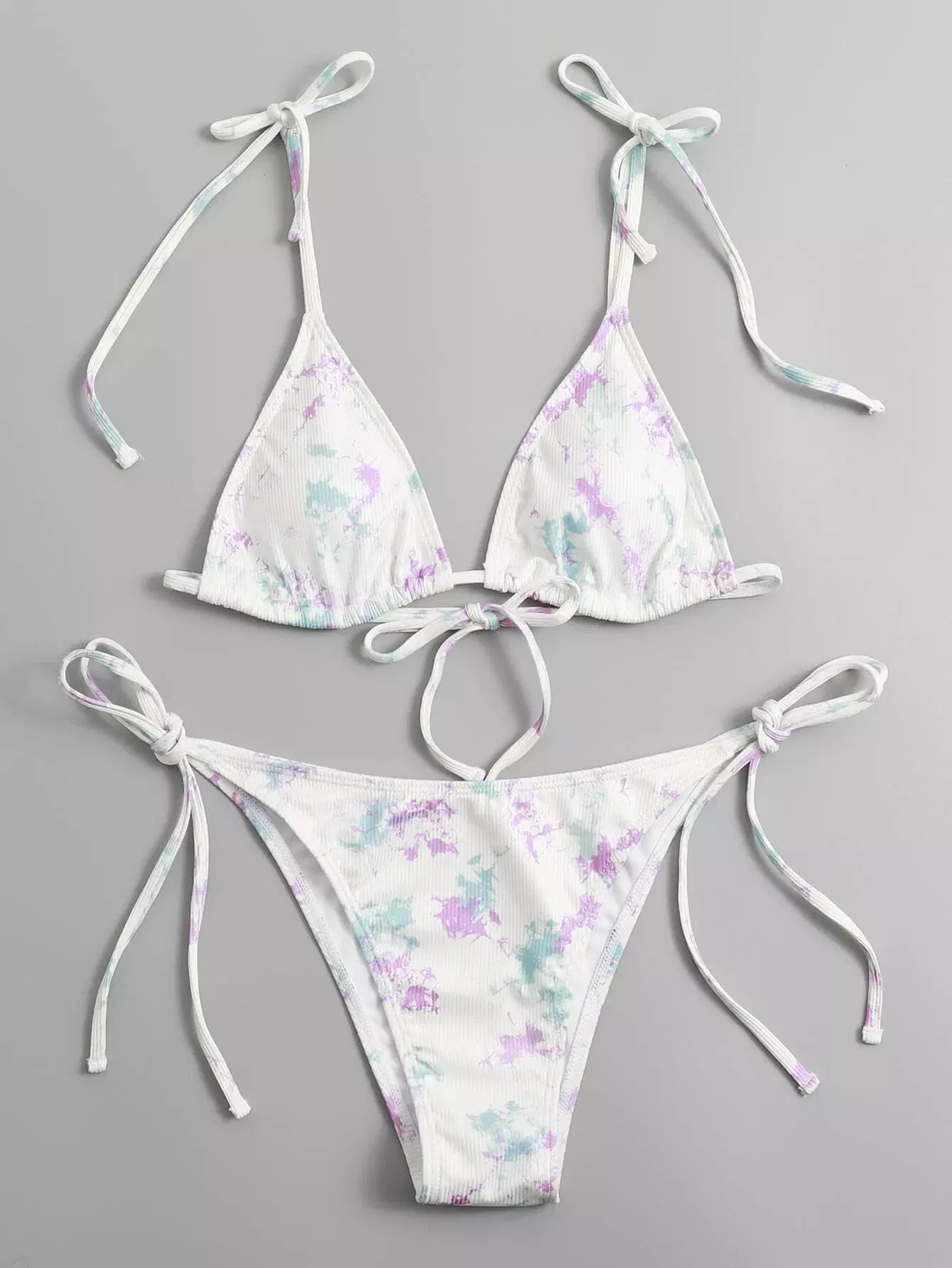 Tie Dye Rib Triangle Bikini Swimsuit