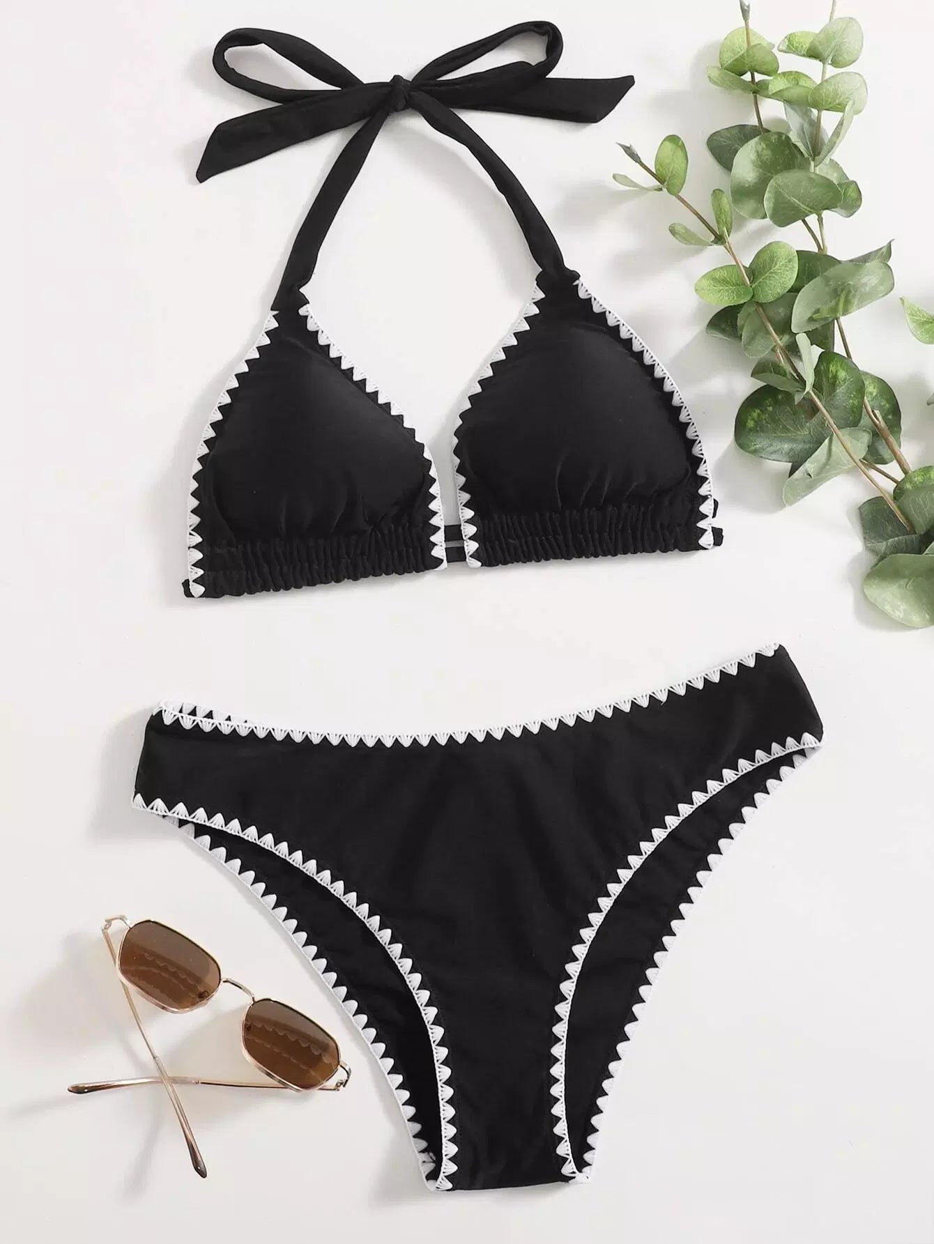 Whip Stitch Halter Bikini Swimsuit