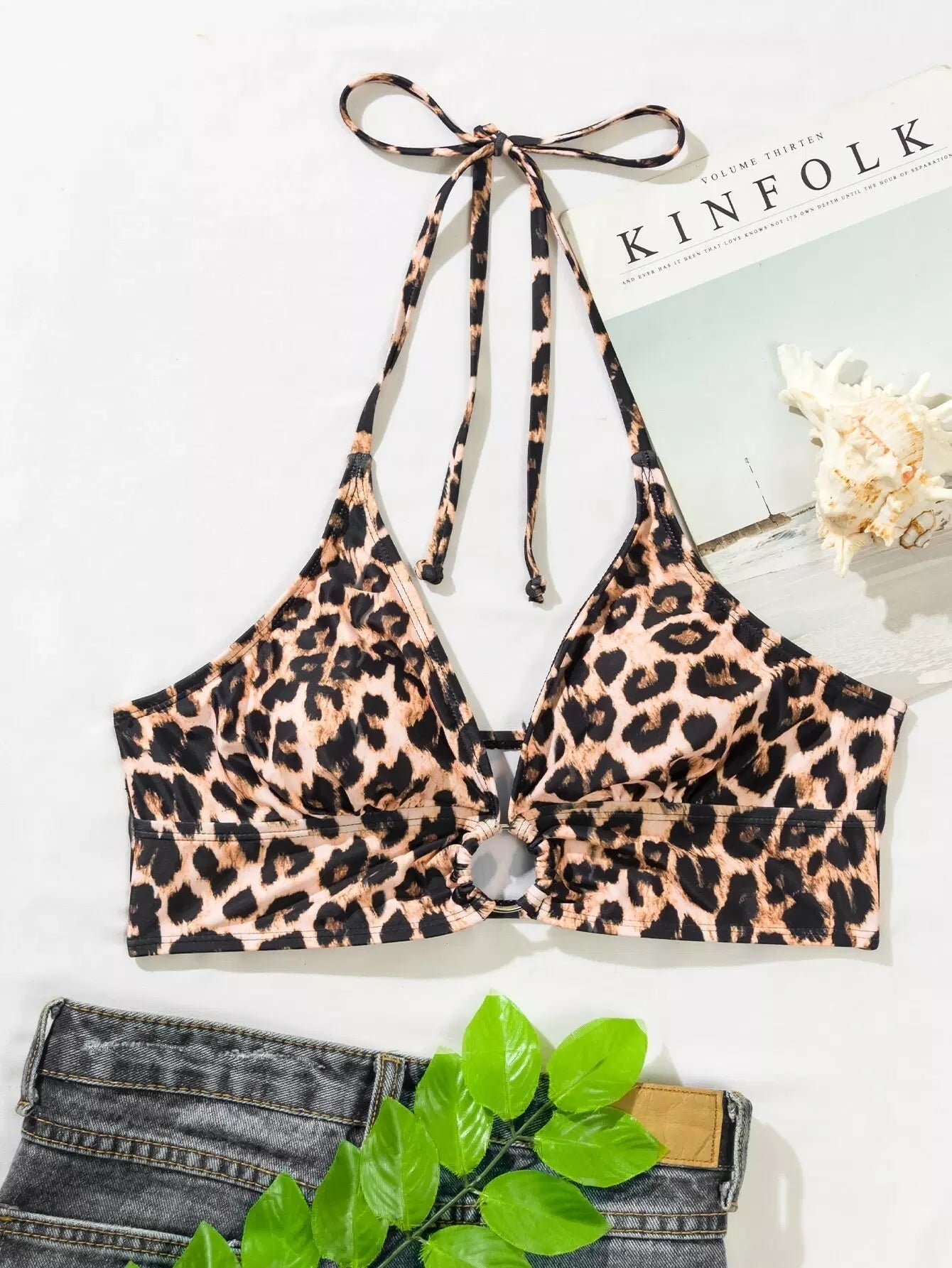 Leopard Print Halter Bikini Top