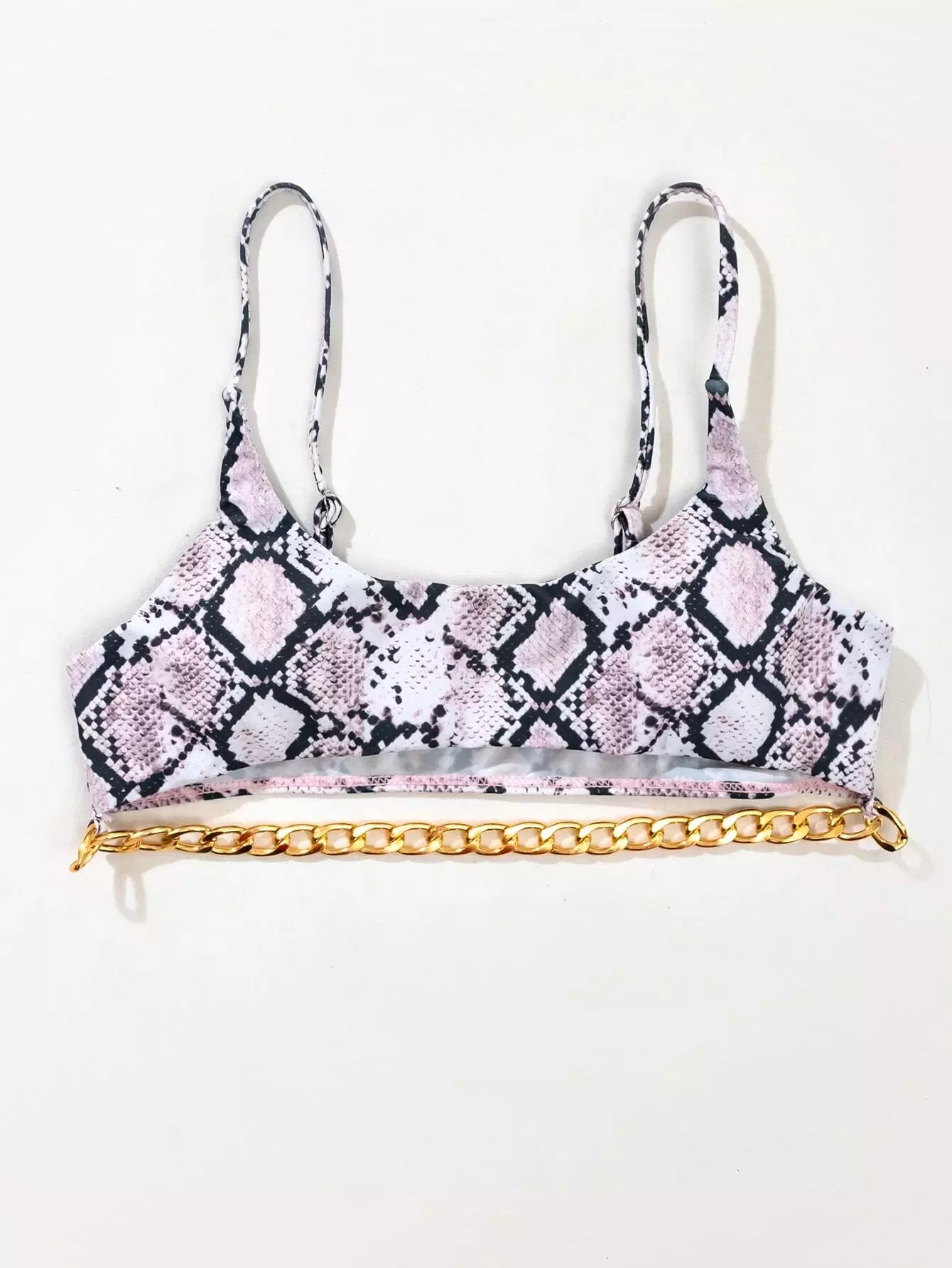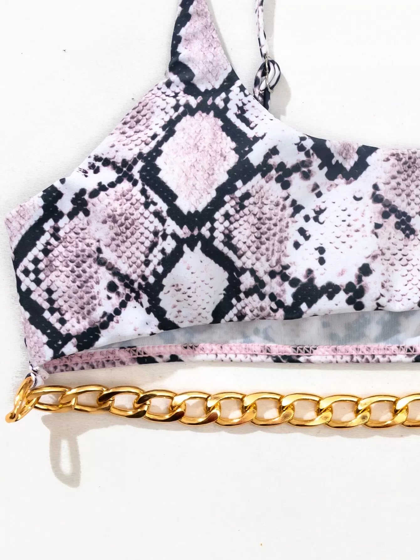 Snakeskin Print Chain Linked Bikini Top