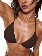 Swim Basics Summer Beach Drawstring Halter Triangle Bikini Top