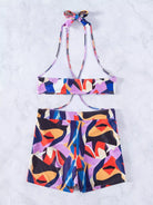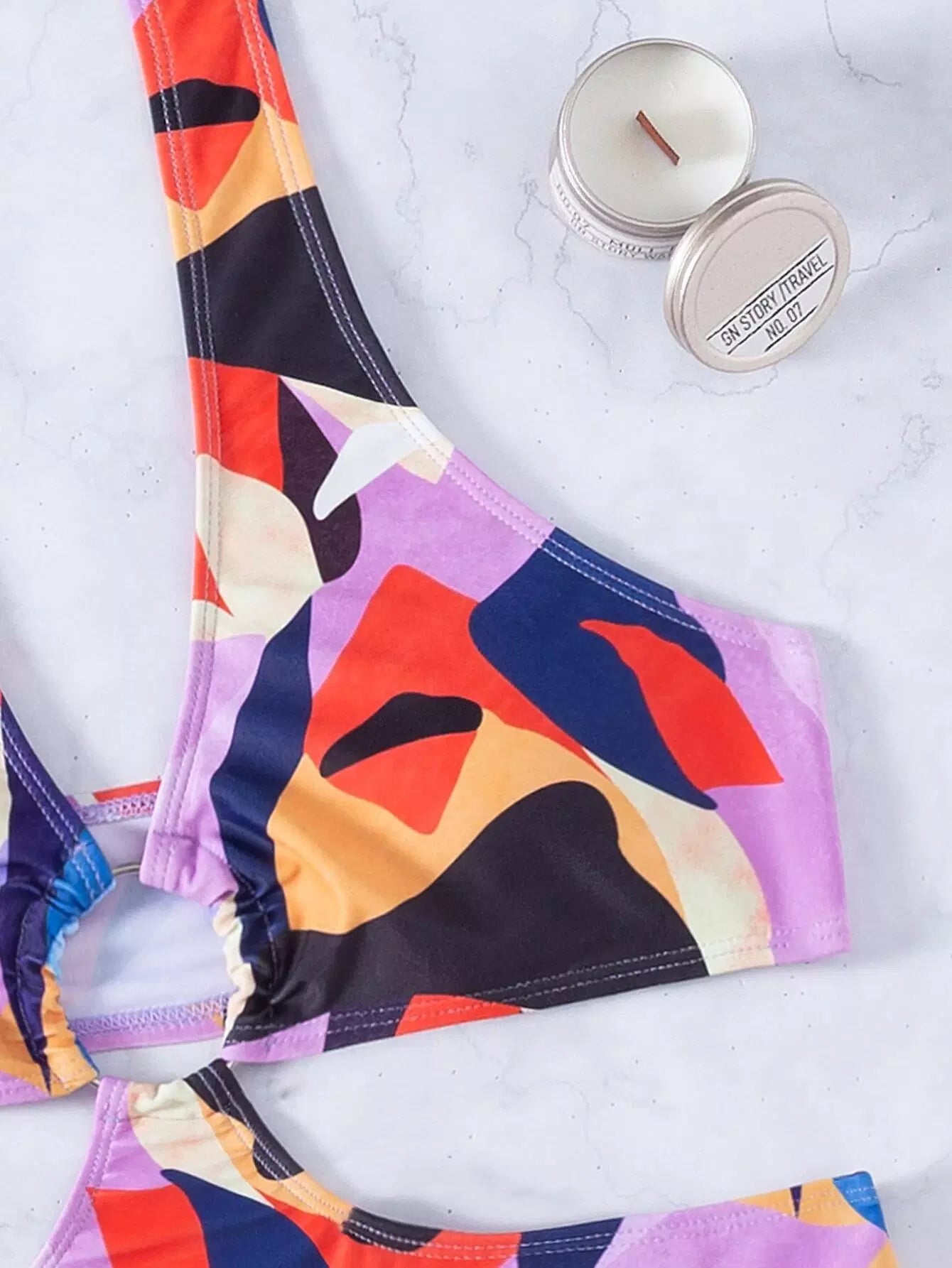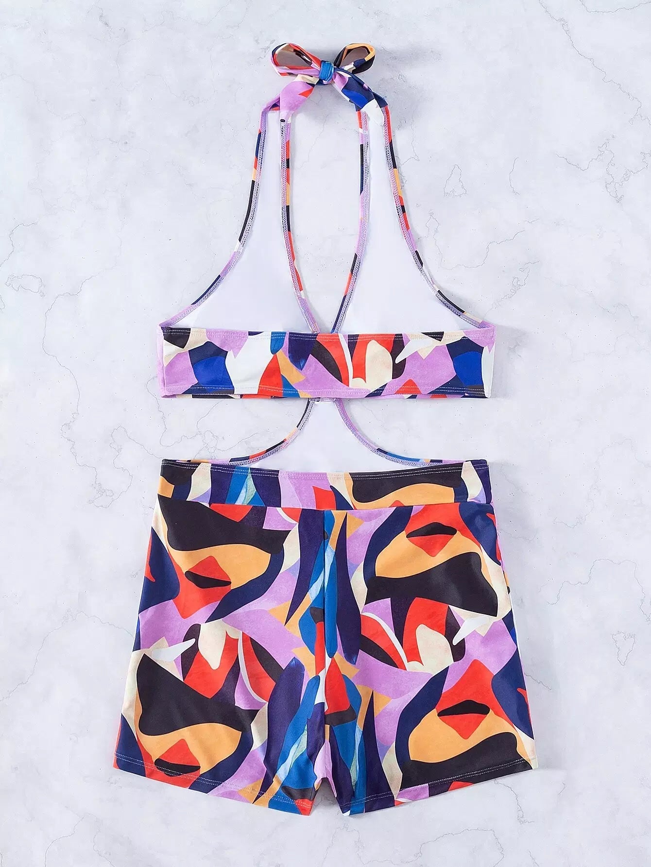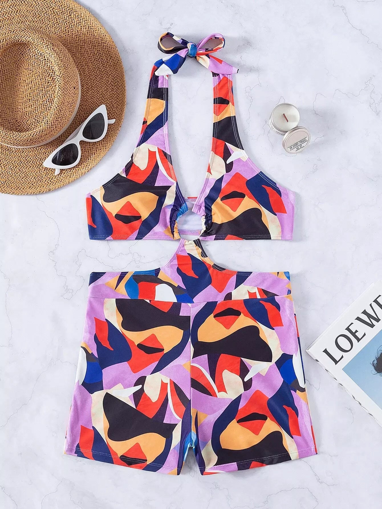 Allover Print Ring Linked Halter One Piece Swimsuit