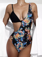 Chinese Dragon Cut-out One Piece Swimsuit