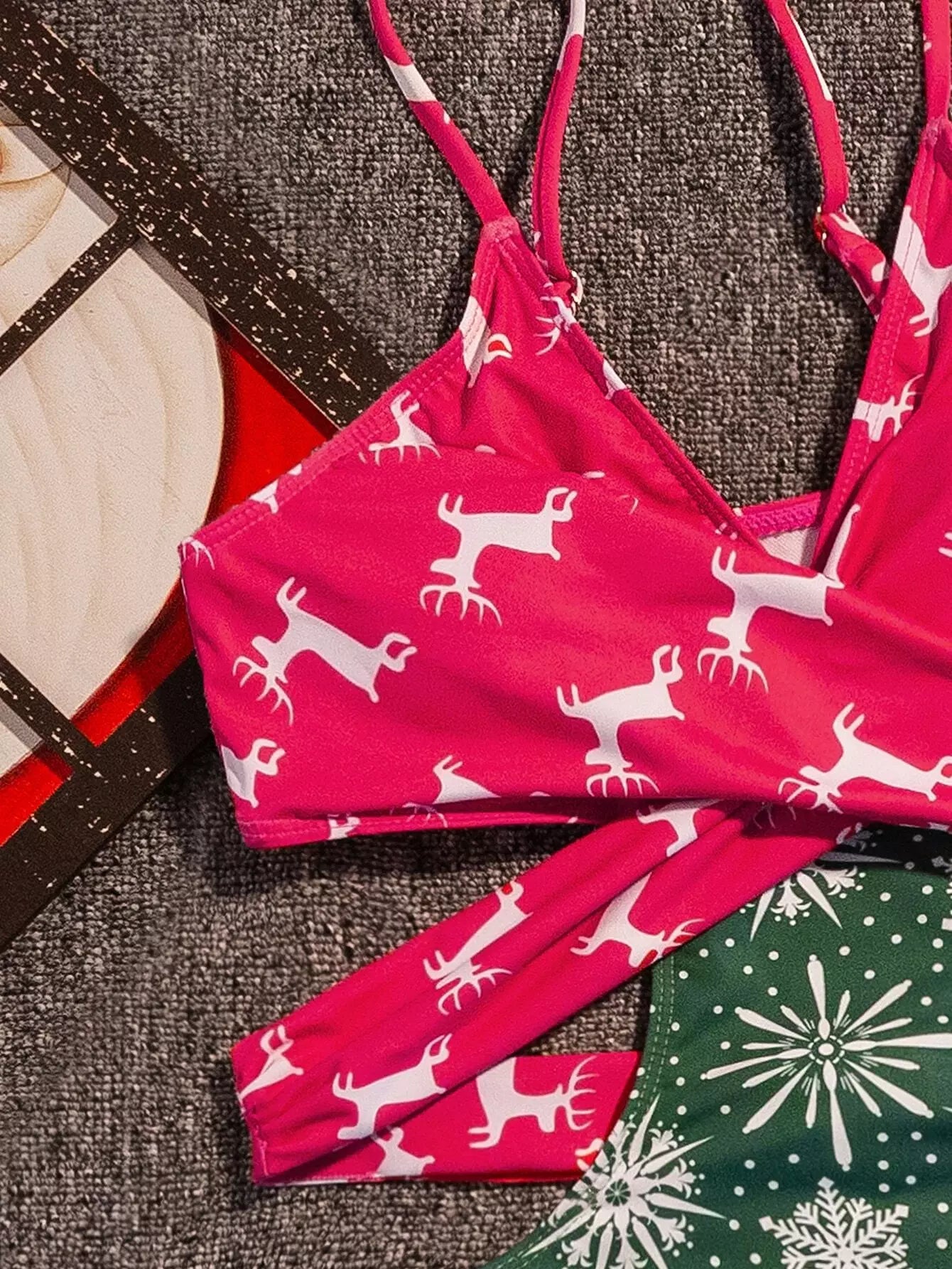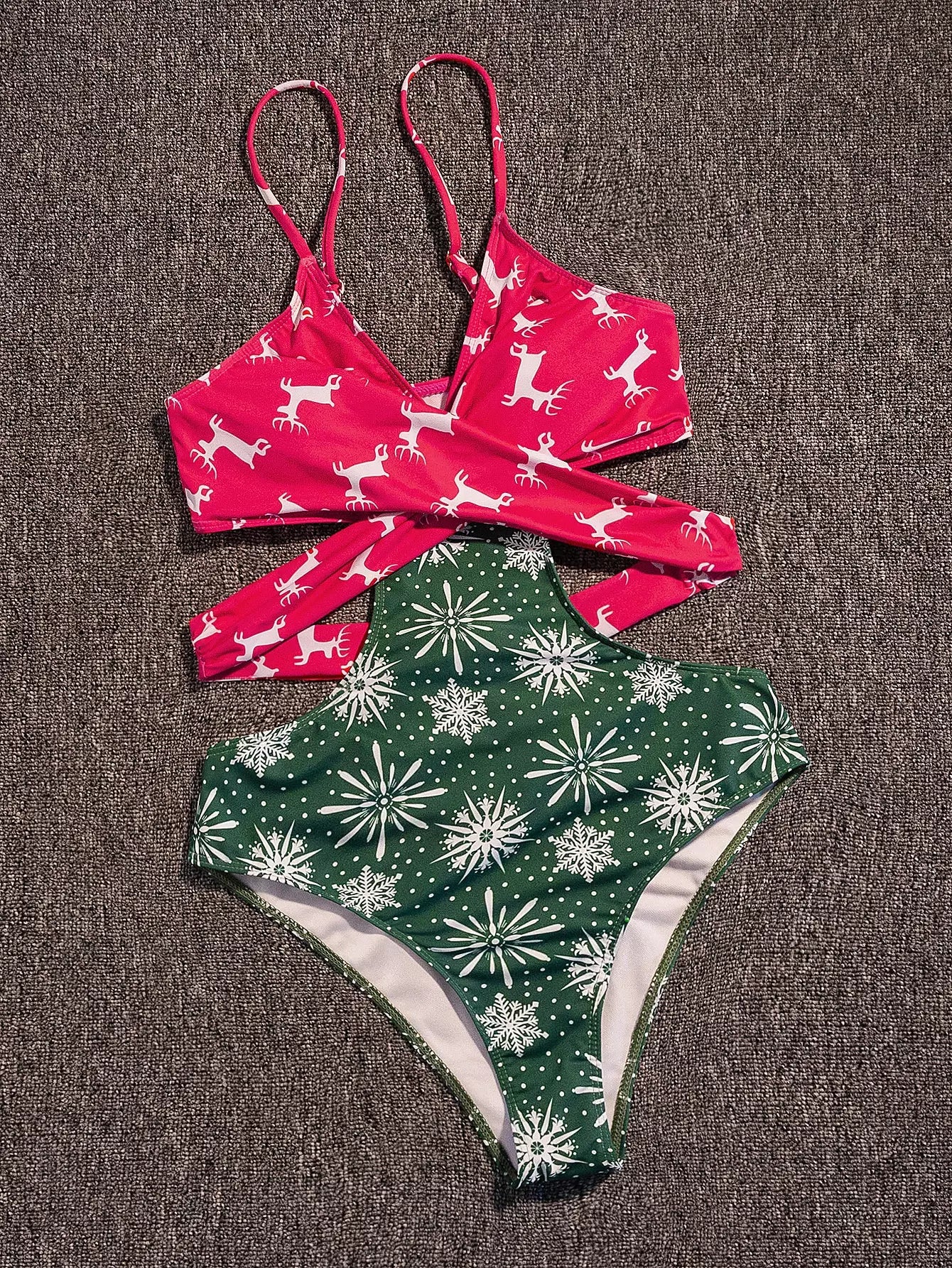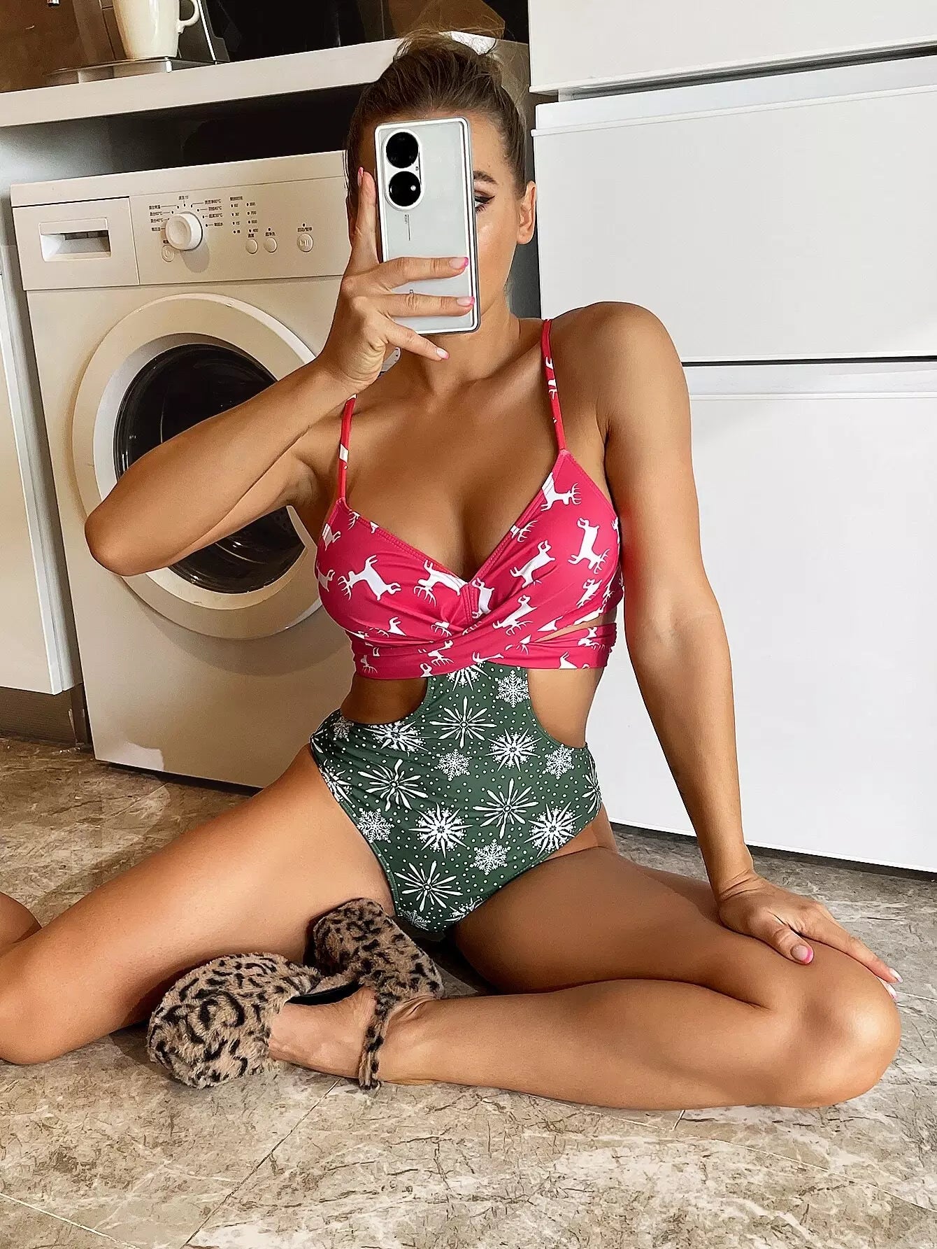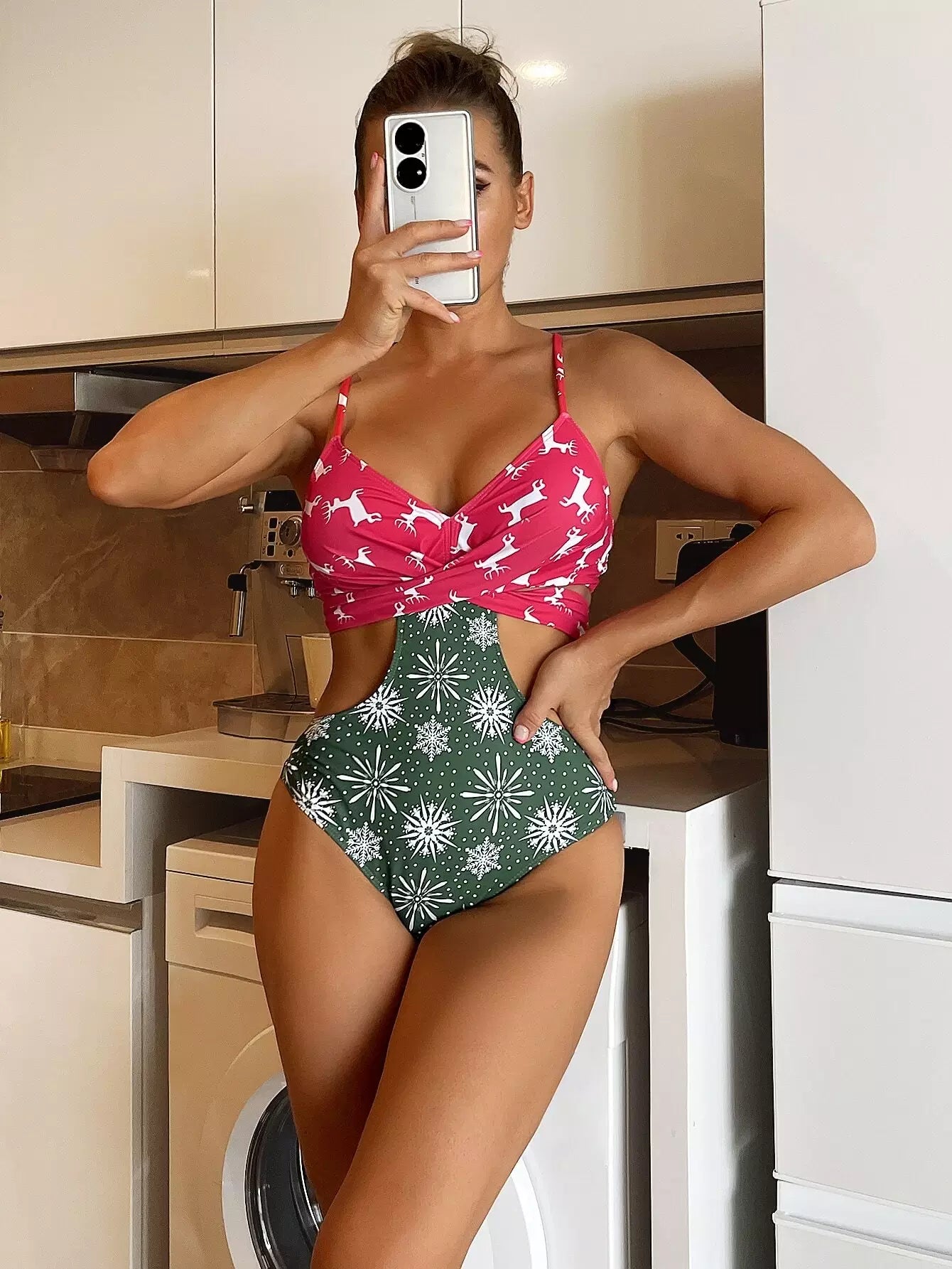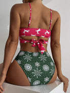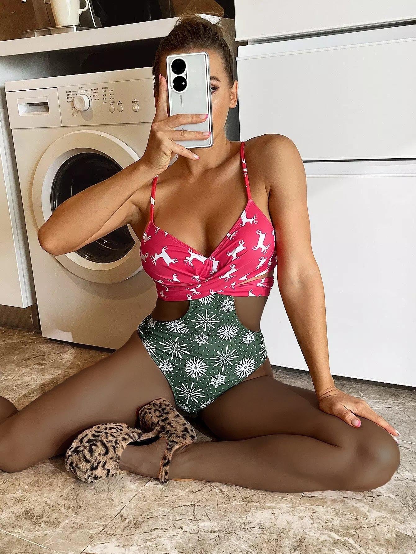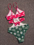 Christmas Print Wrap Cut-out One Piece Swimsuit