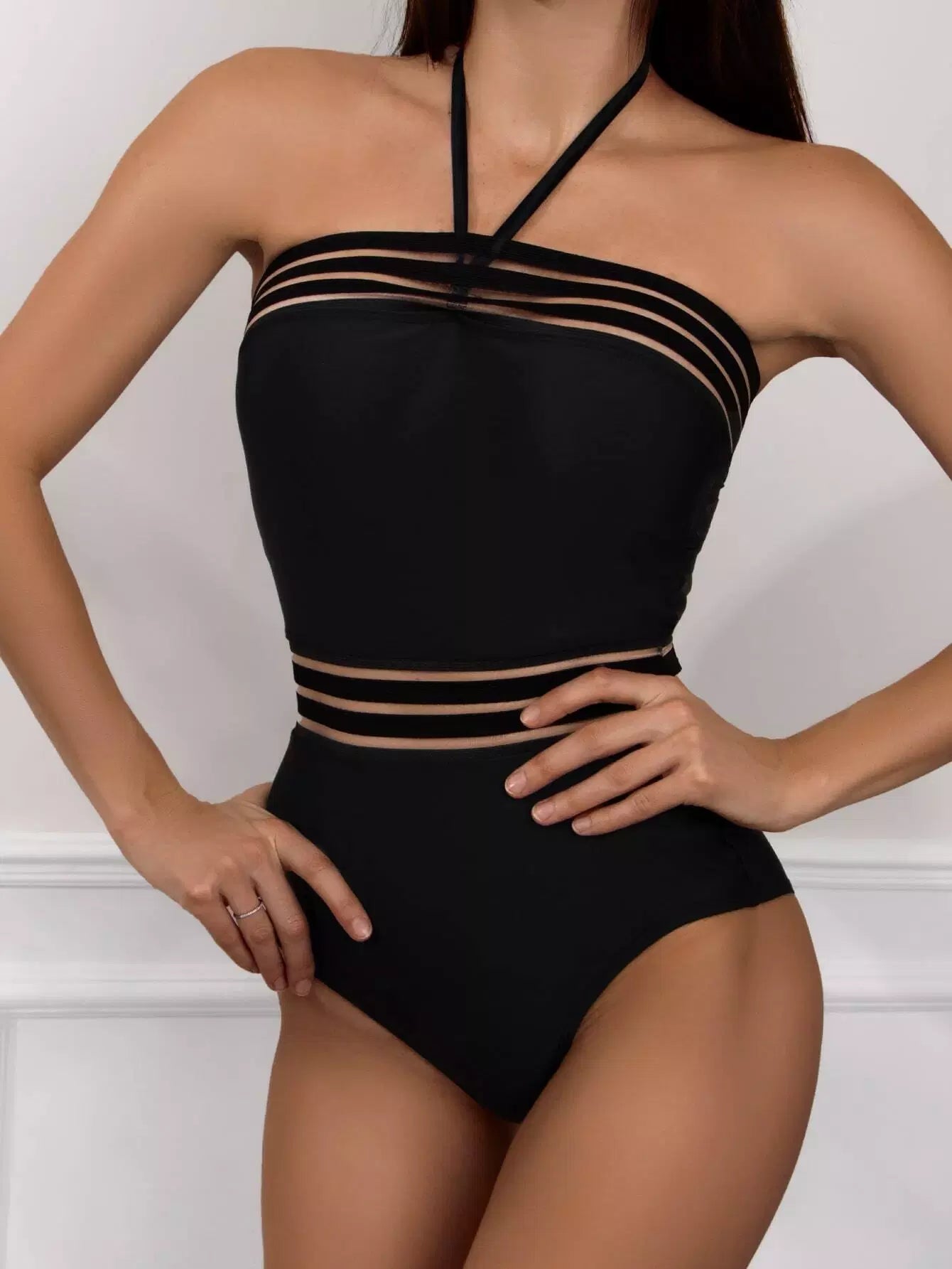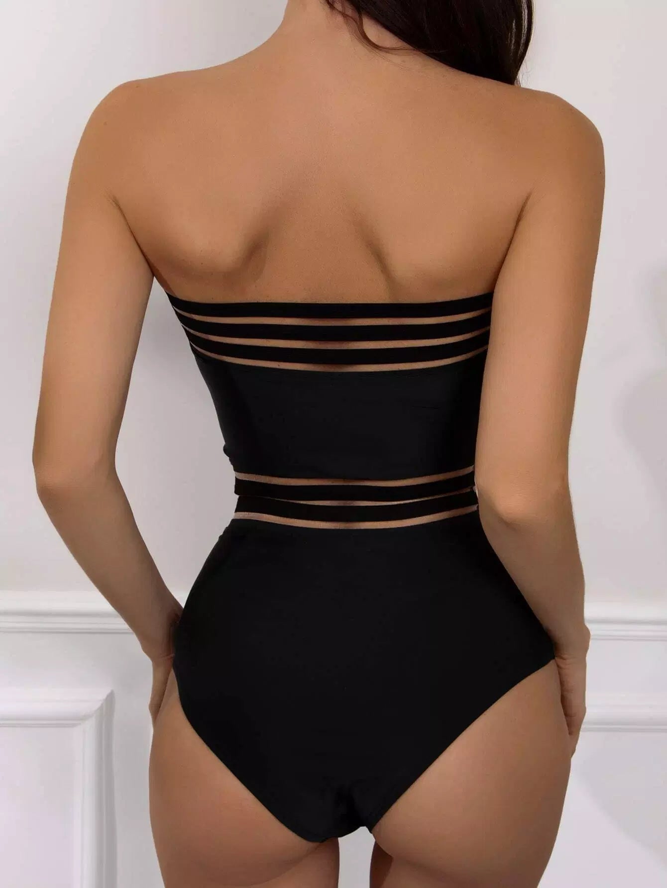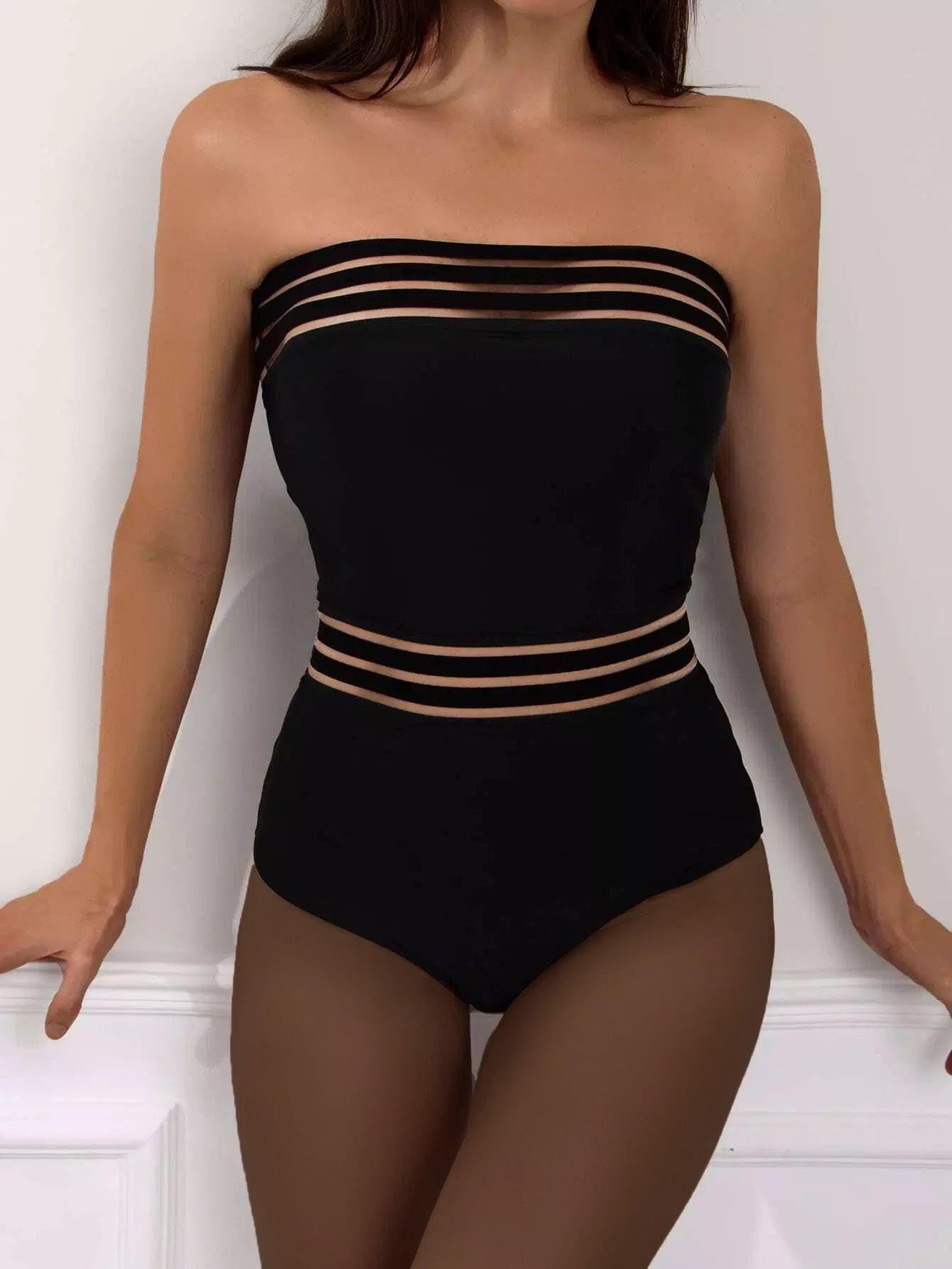 Women - Contrast Mesh Bandeau One Piece Swimsuit