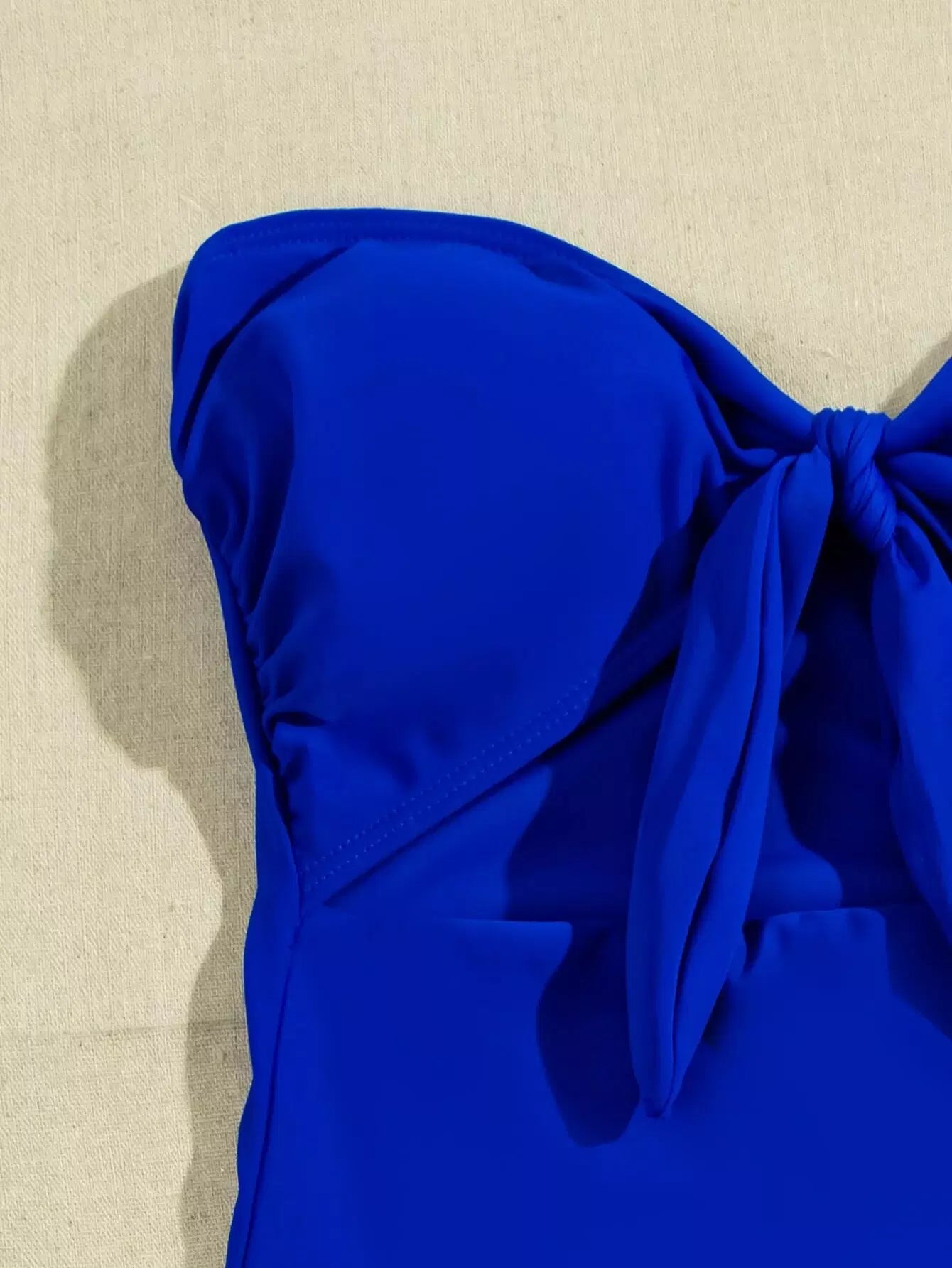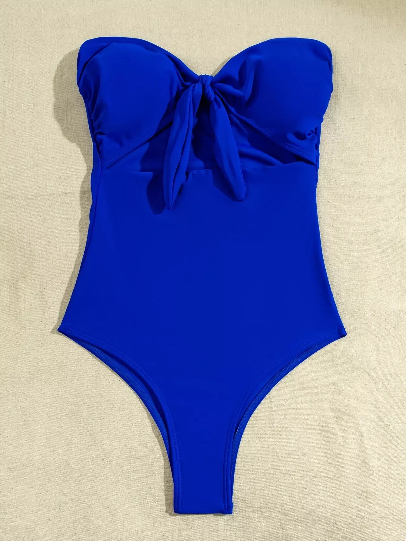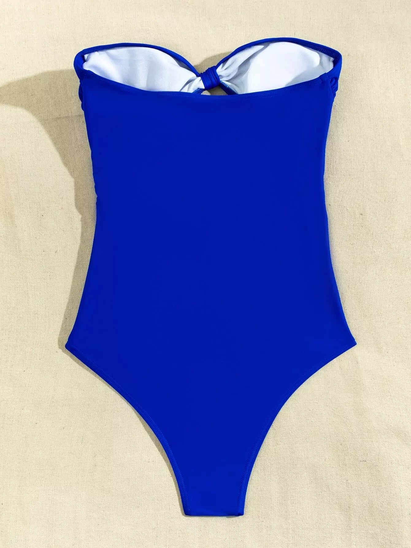 Cut-out Knot Front Bandeau One Piece Swimsuit