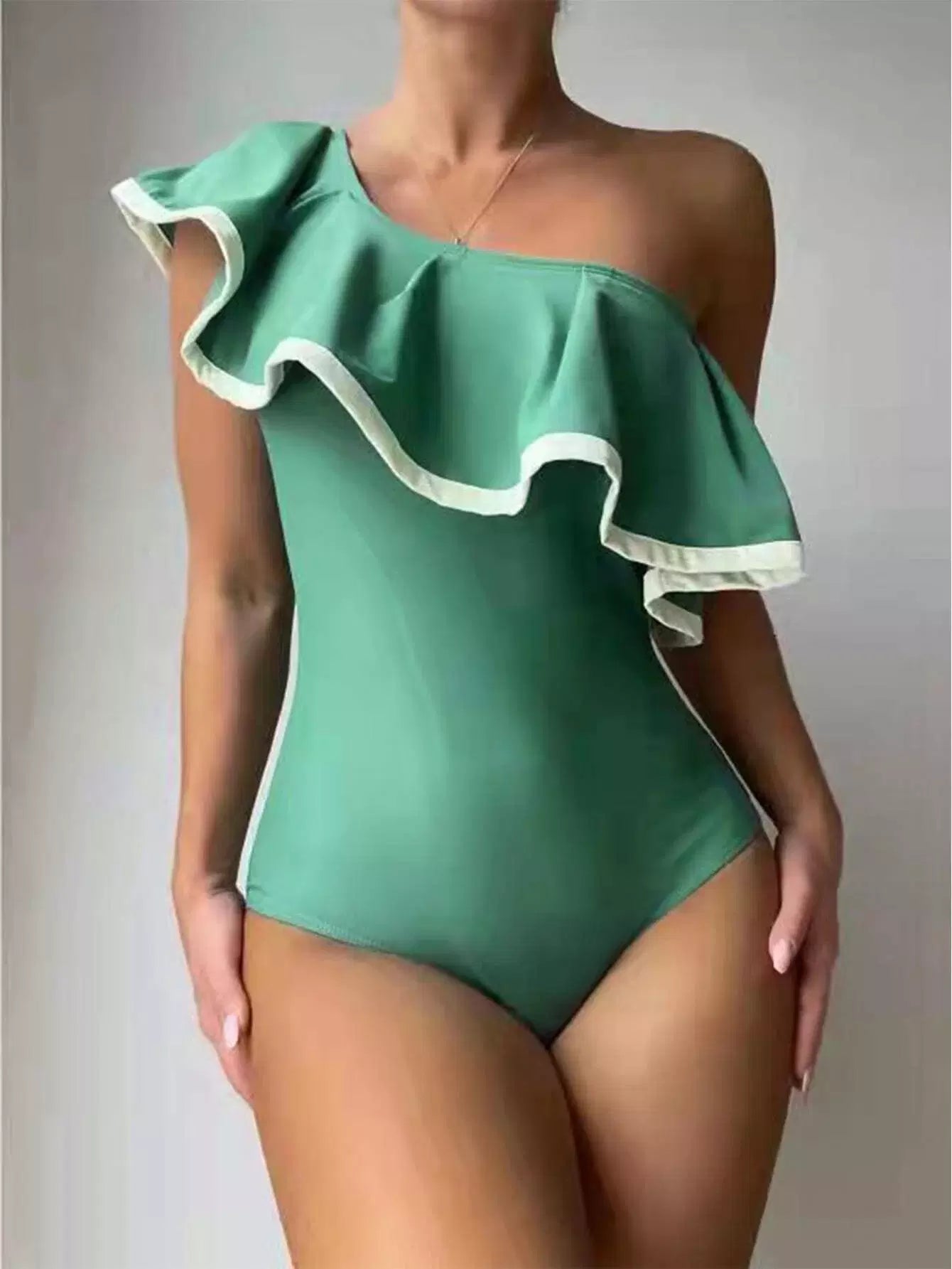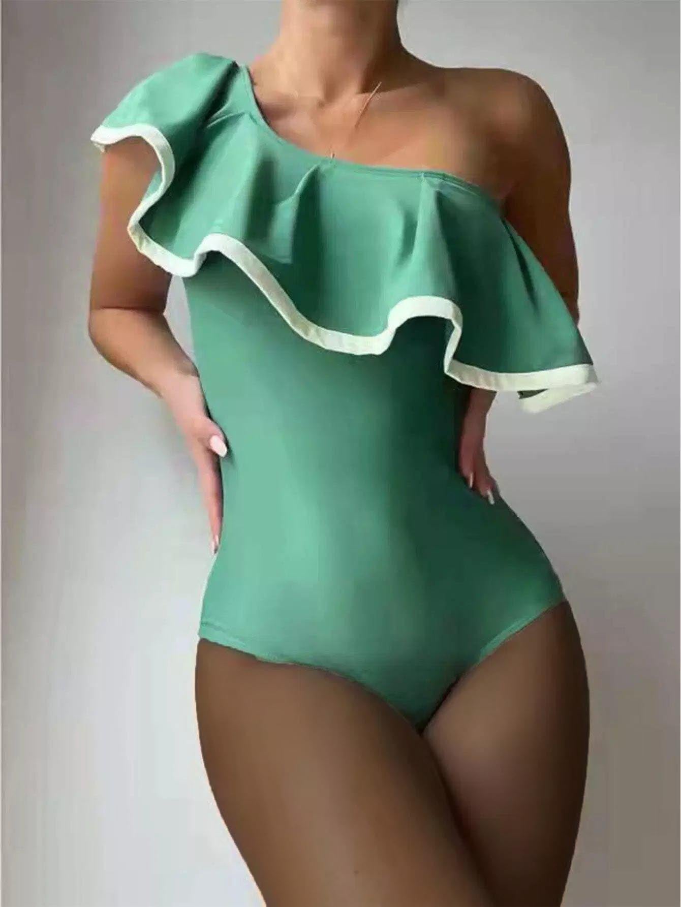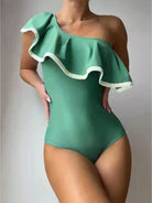Flounce Trim One Shoulder One Piece Swimsuit