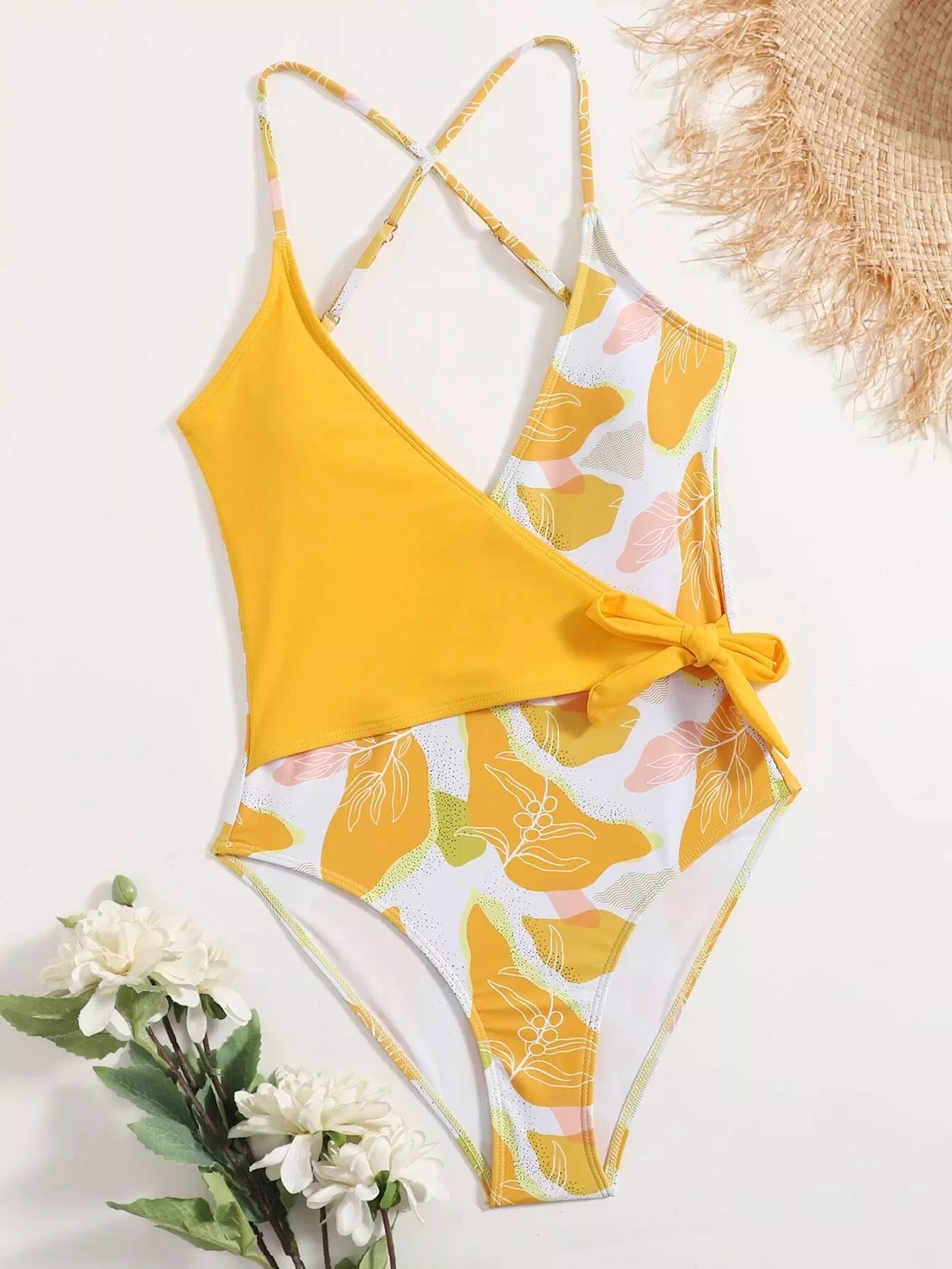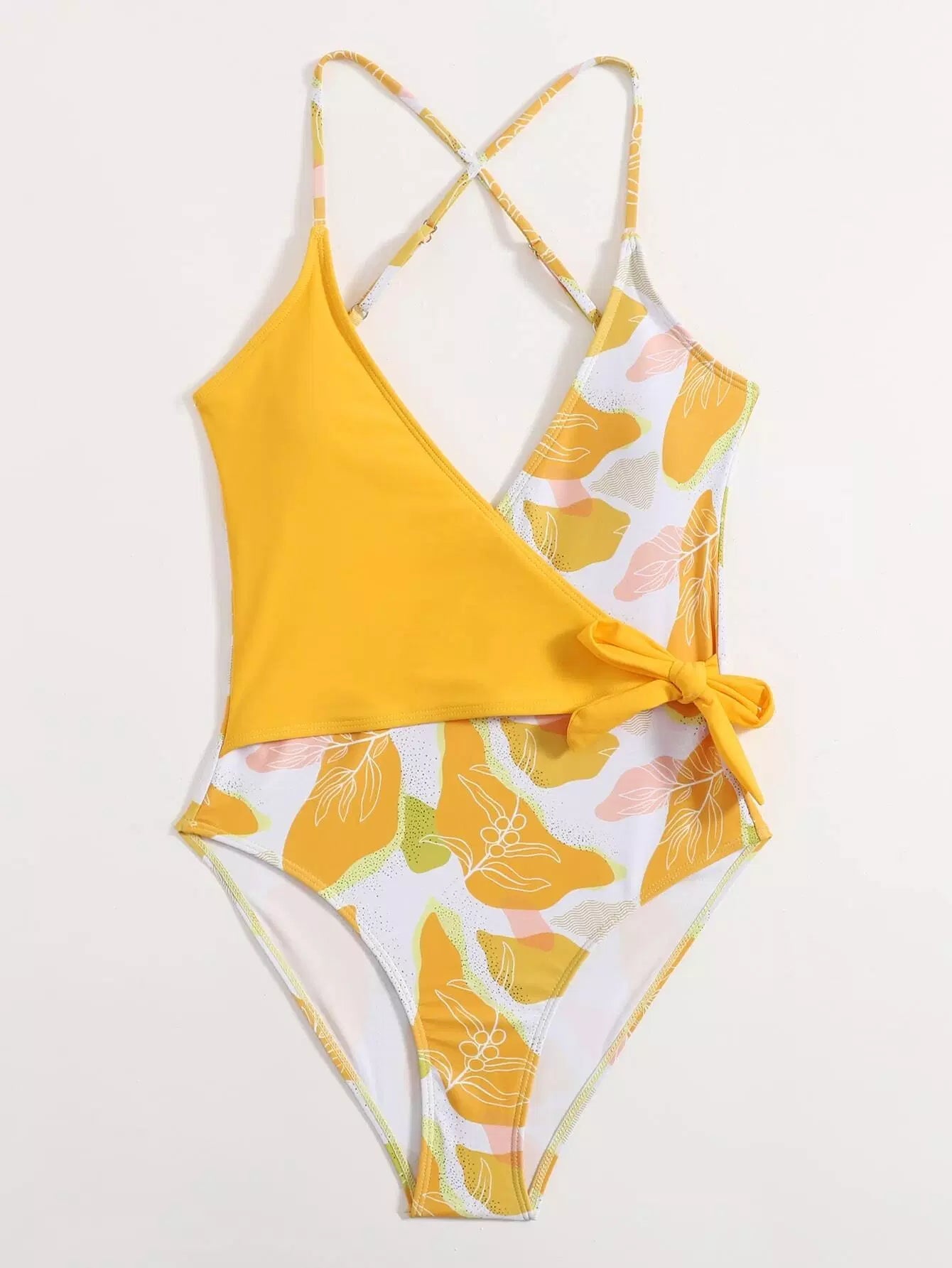 Graphic Wrap Knot One Piece Swimsuit