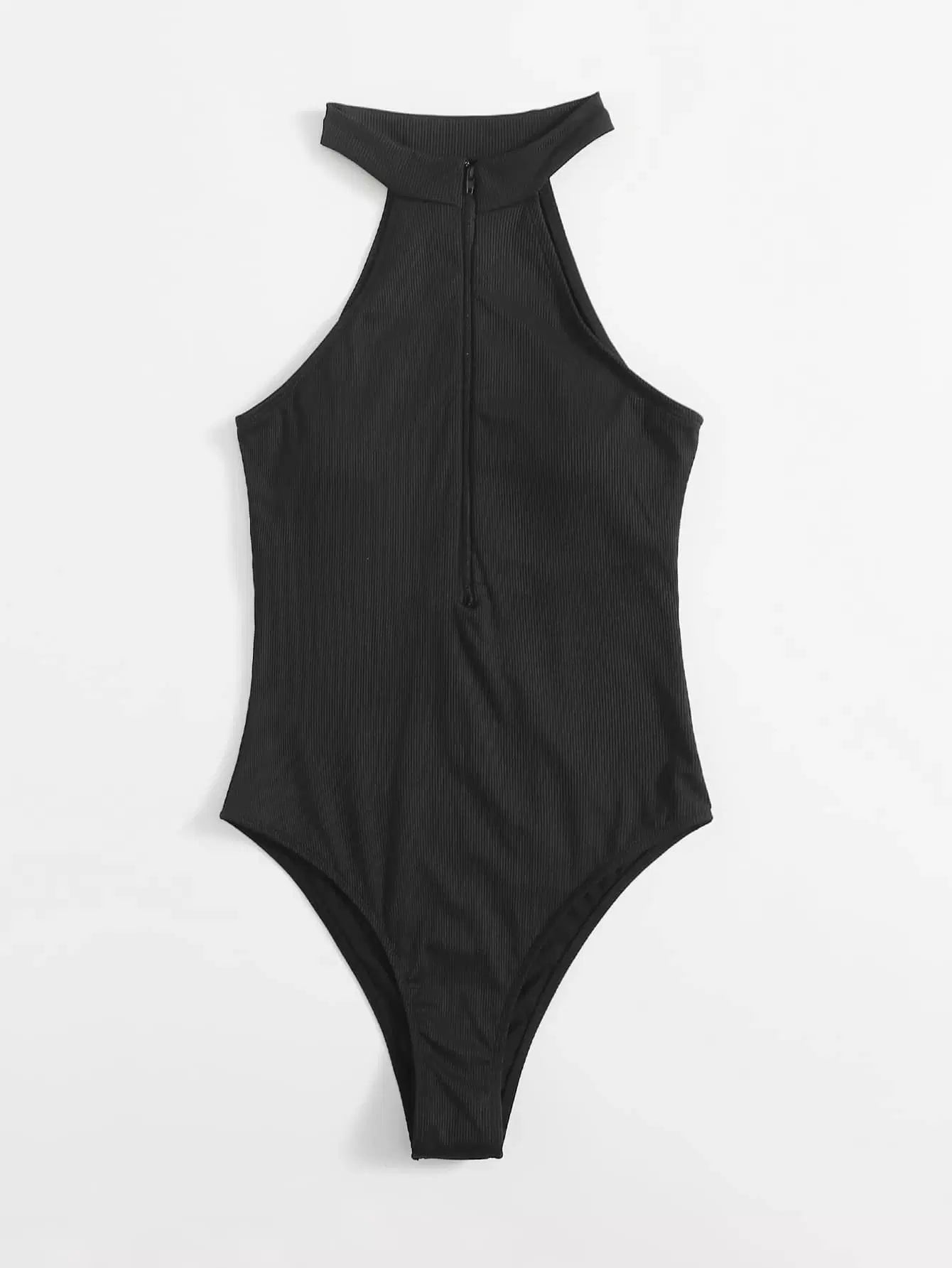 Rib Zip-up One Piece Swimsuit