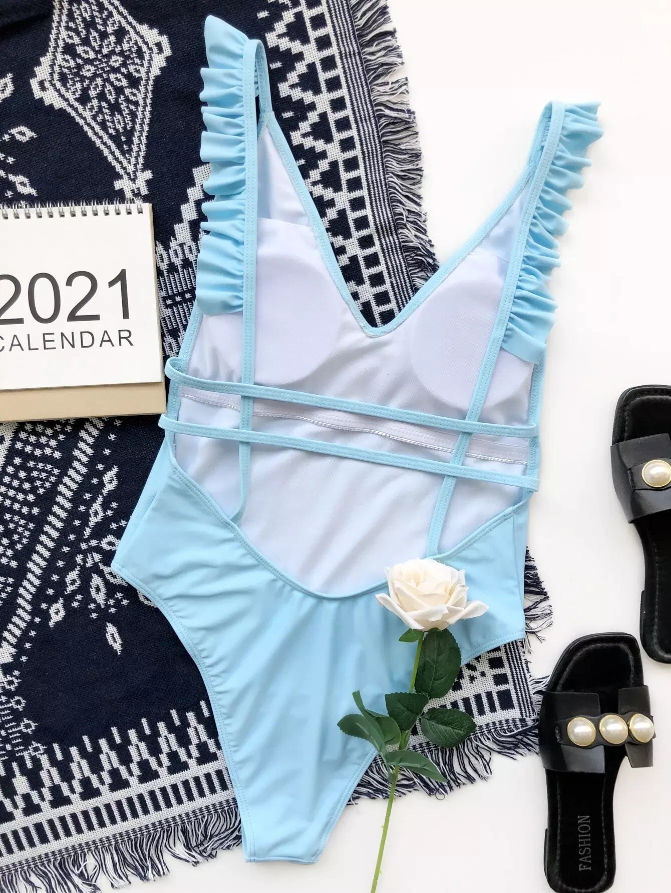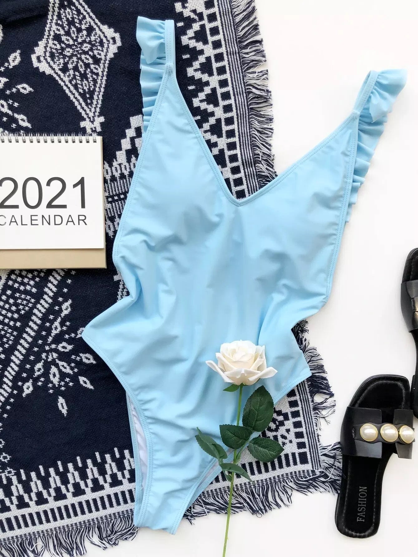 Ruffle Trim One Piece Swimsuit
