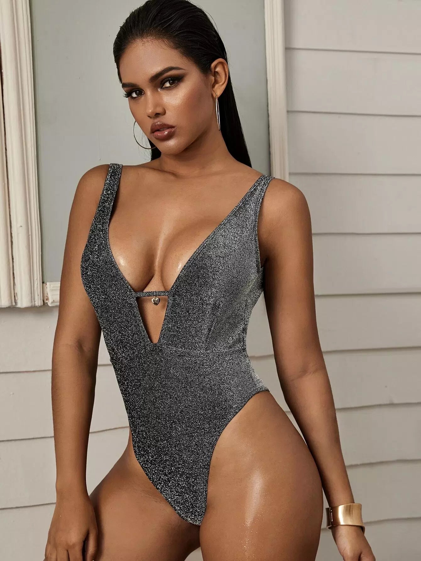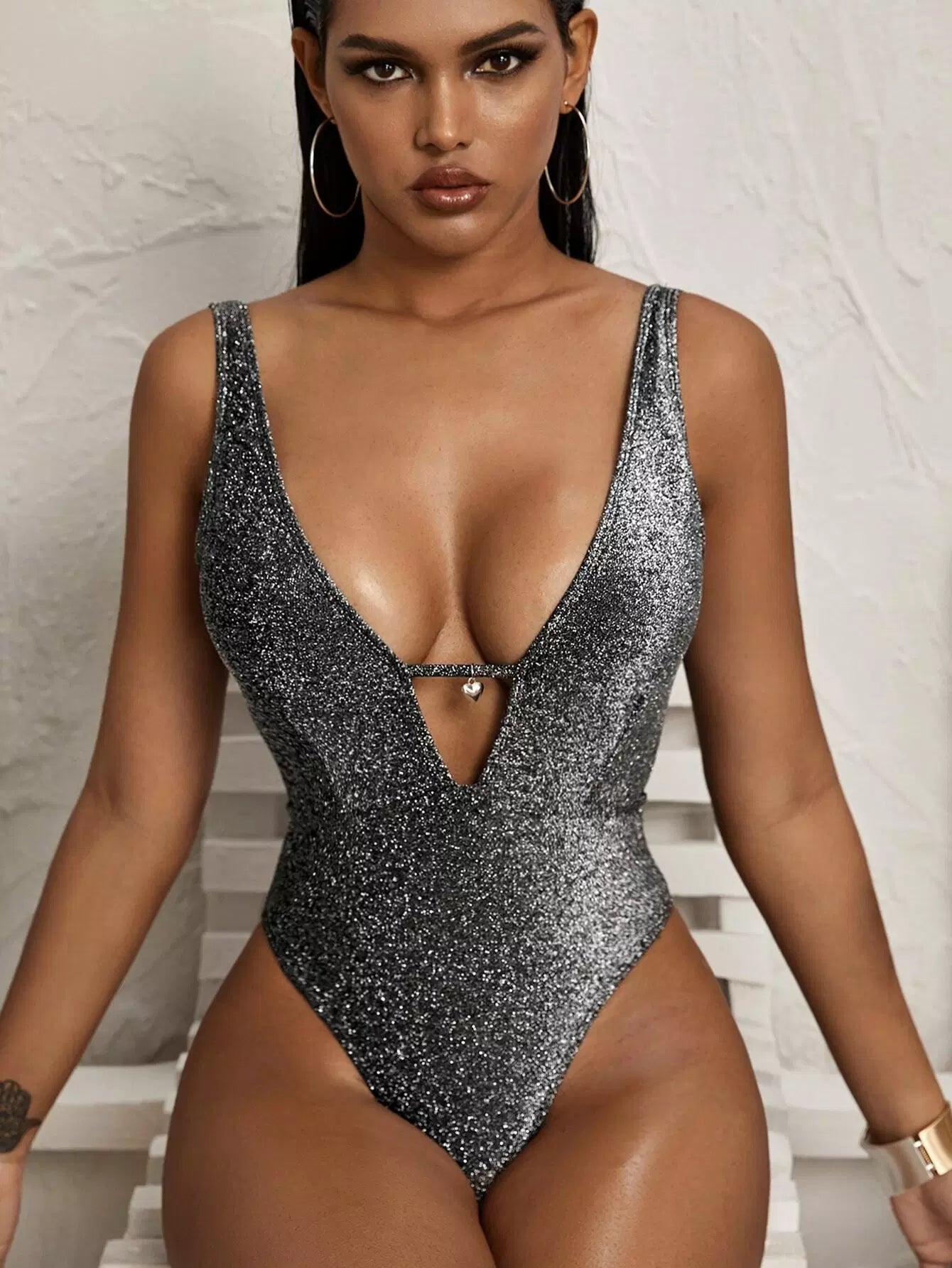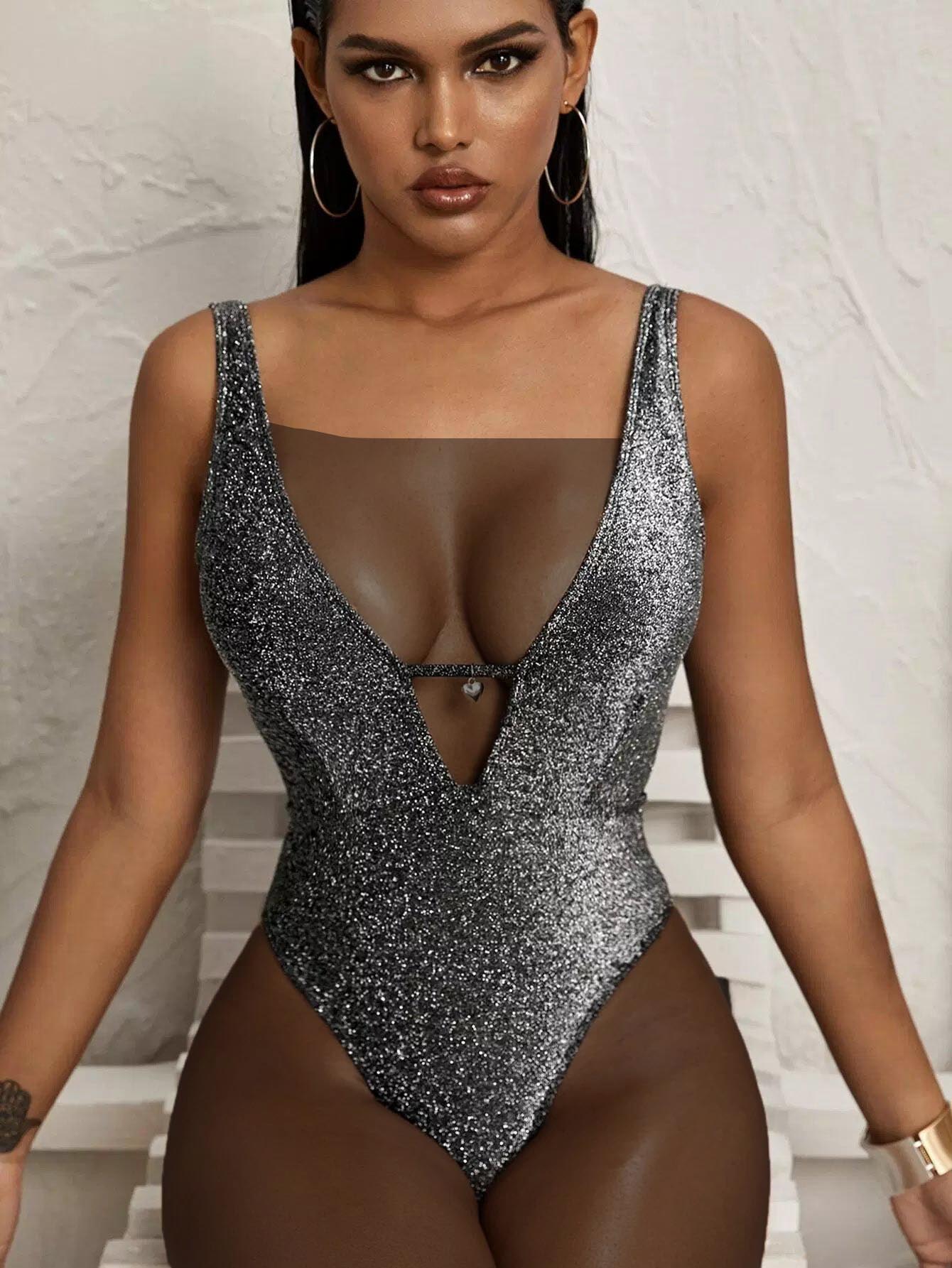 Sparkly Glitter Open Back One Piece Swimsuit