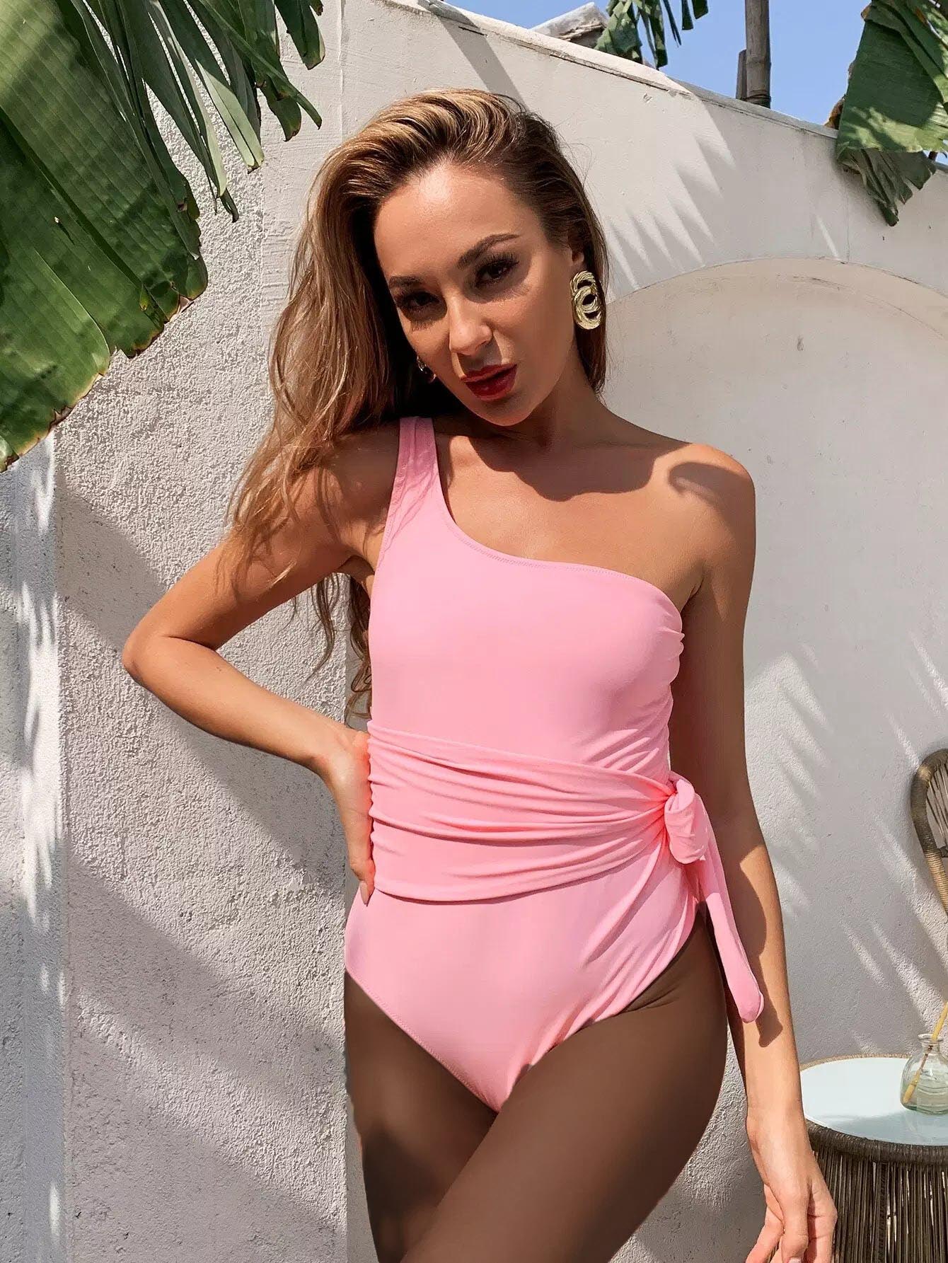 Tie Waist One Shoulder One Piece Swimsuit