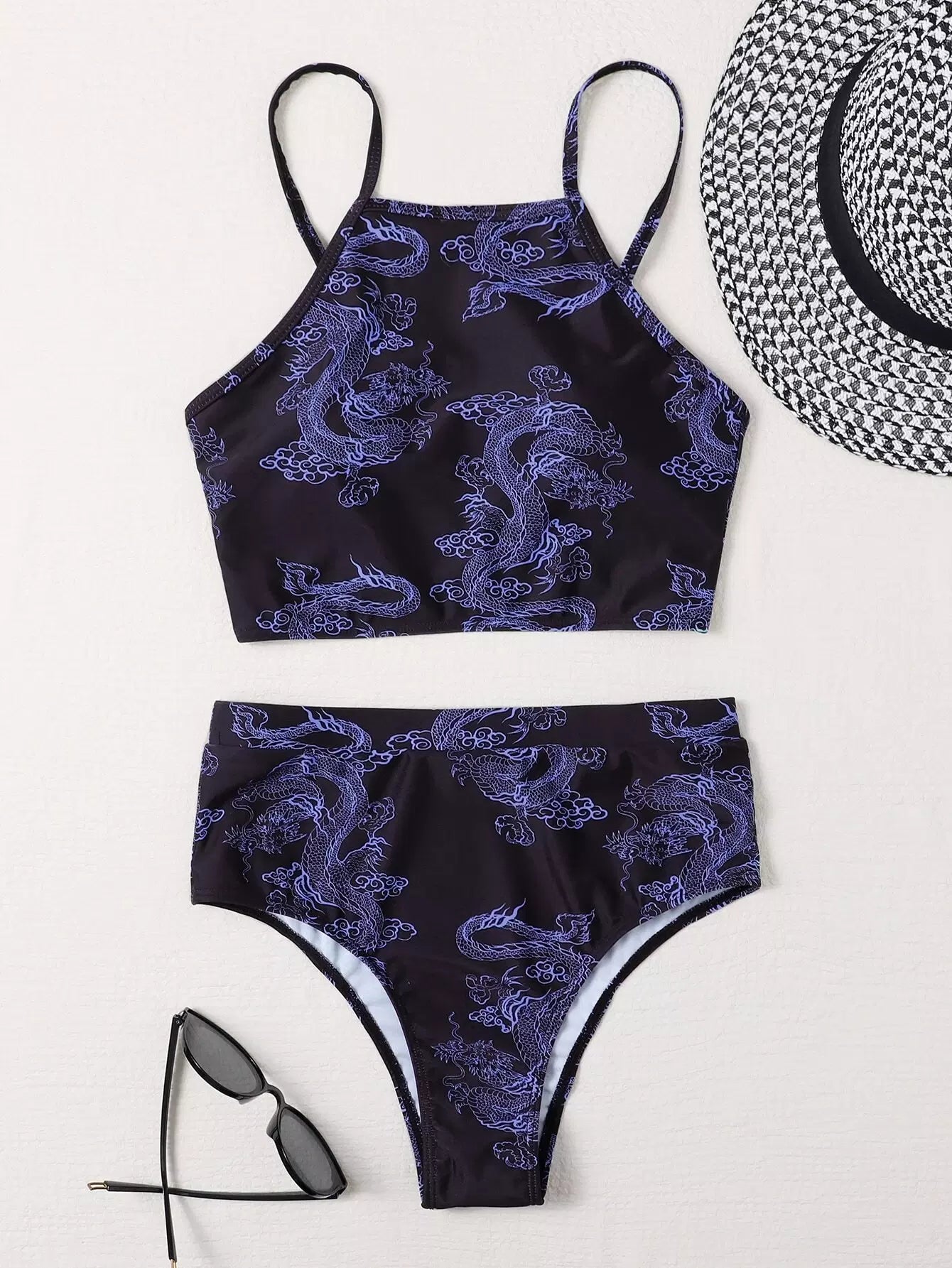 Chinese Dragon Print Bikini Swimsuit