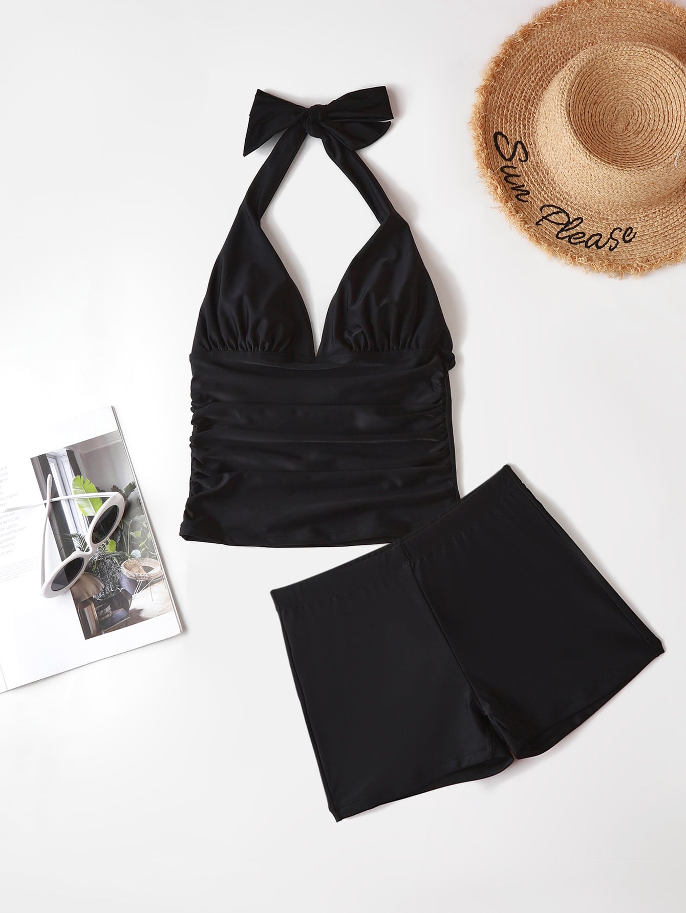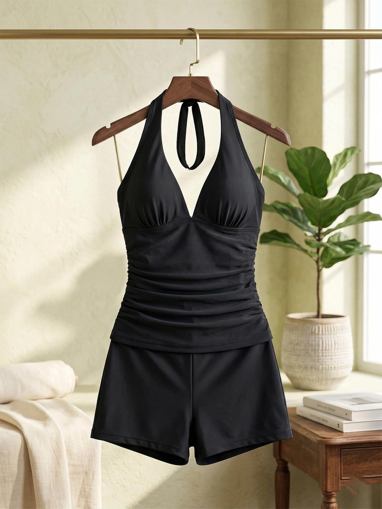 Shapewave Summer Beach Plain Tummy Control Halter Shorts Tankini