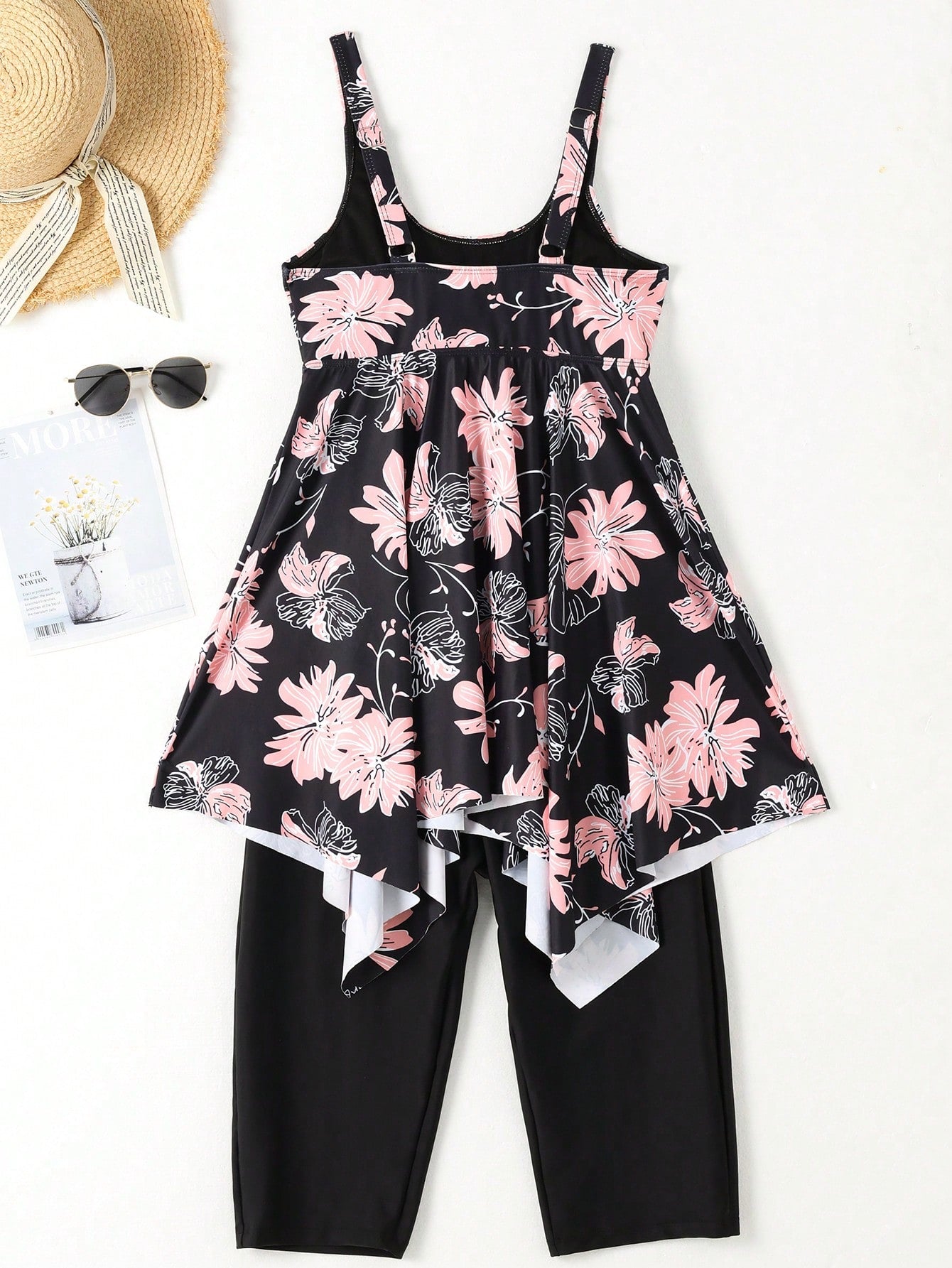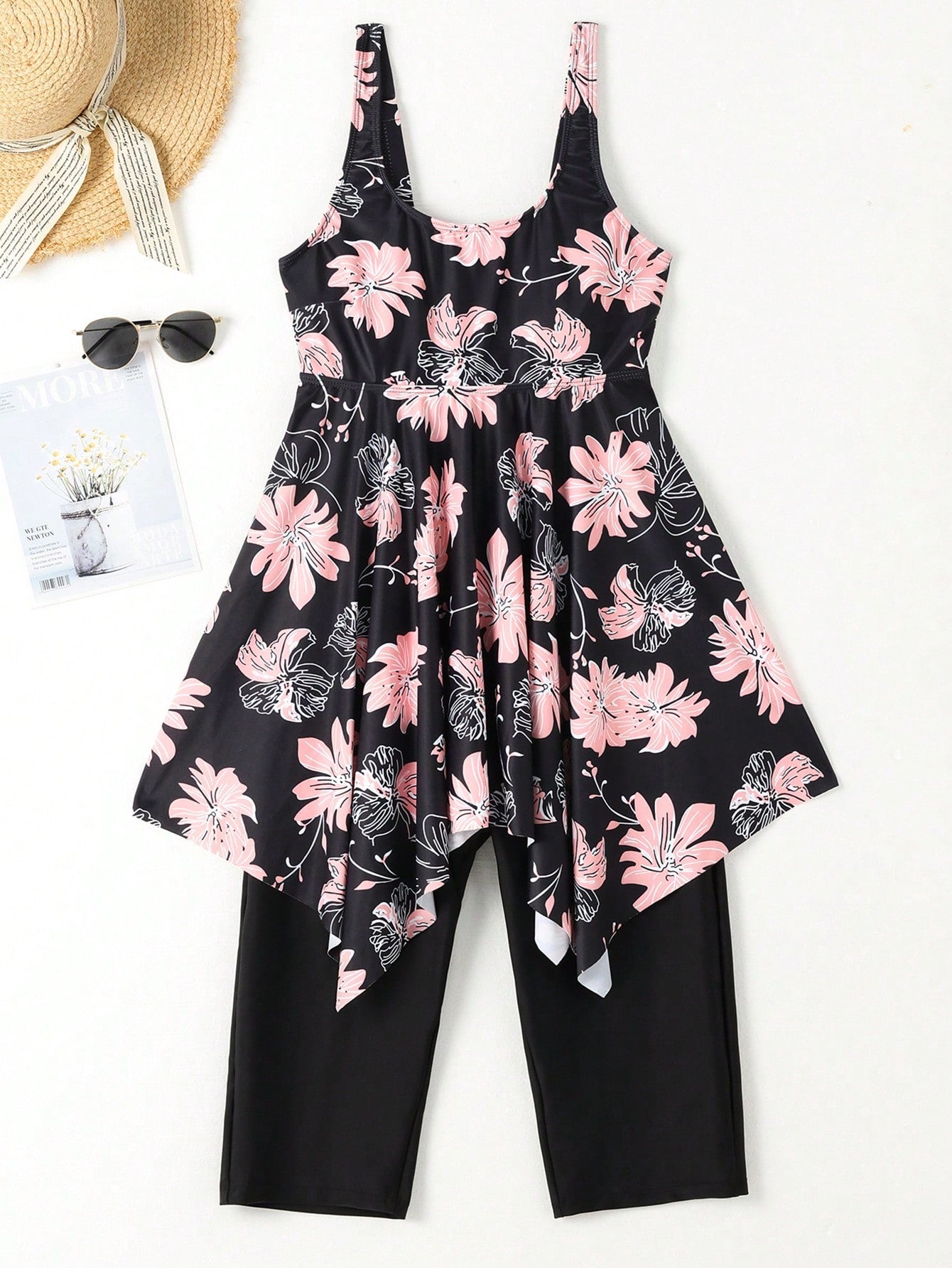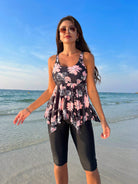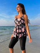Swim Lushoire Summer Beach Floral Print Round Neck Tankini Set With Ruffled Hem
