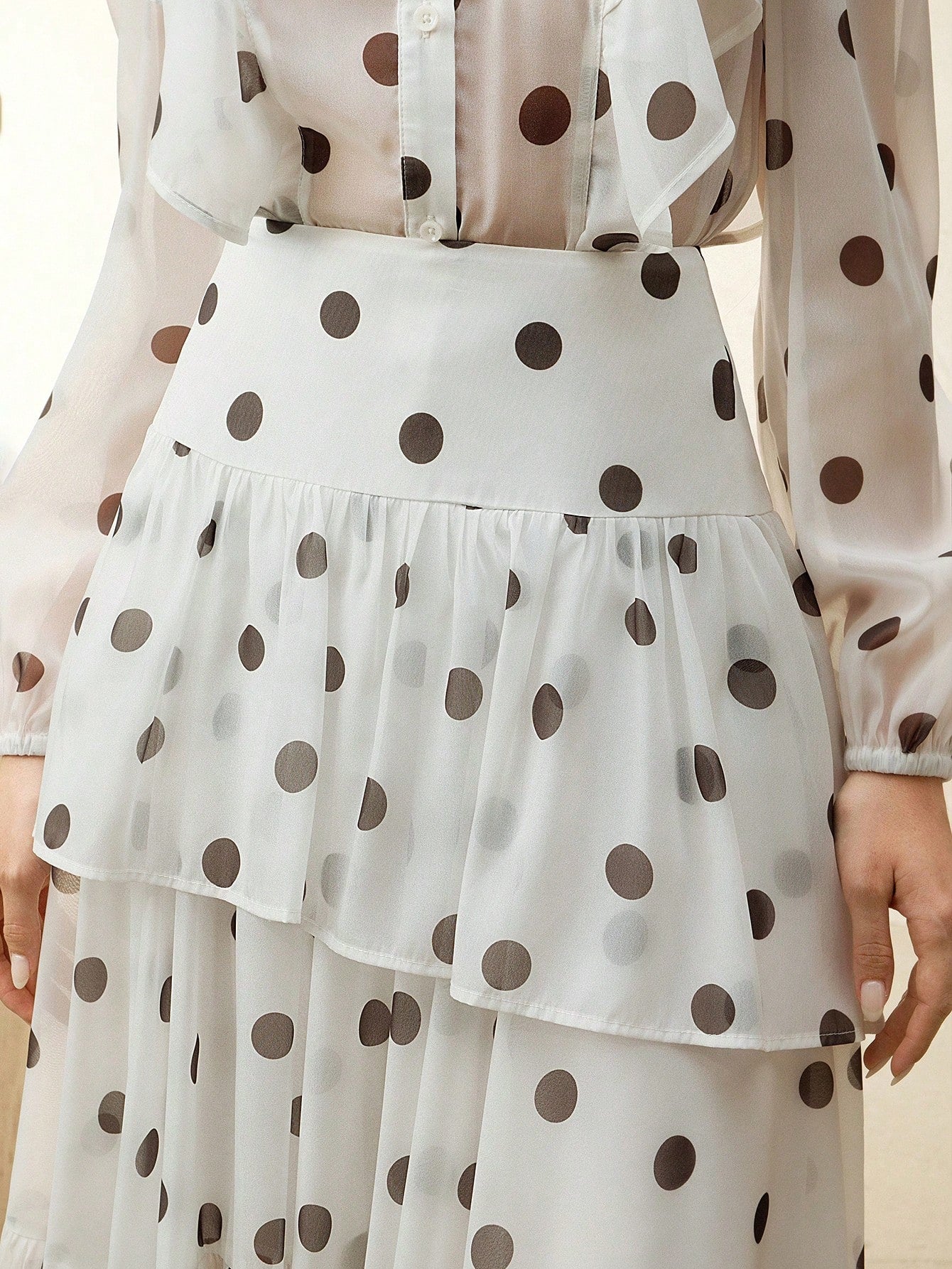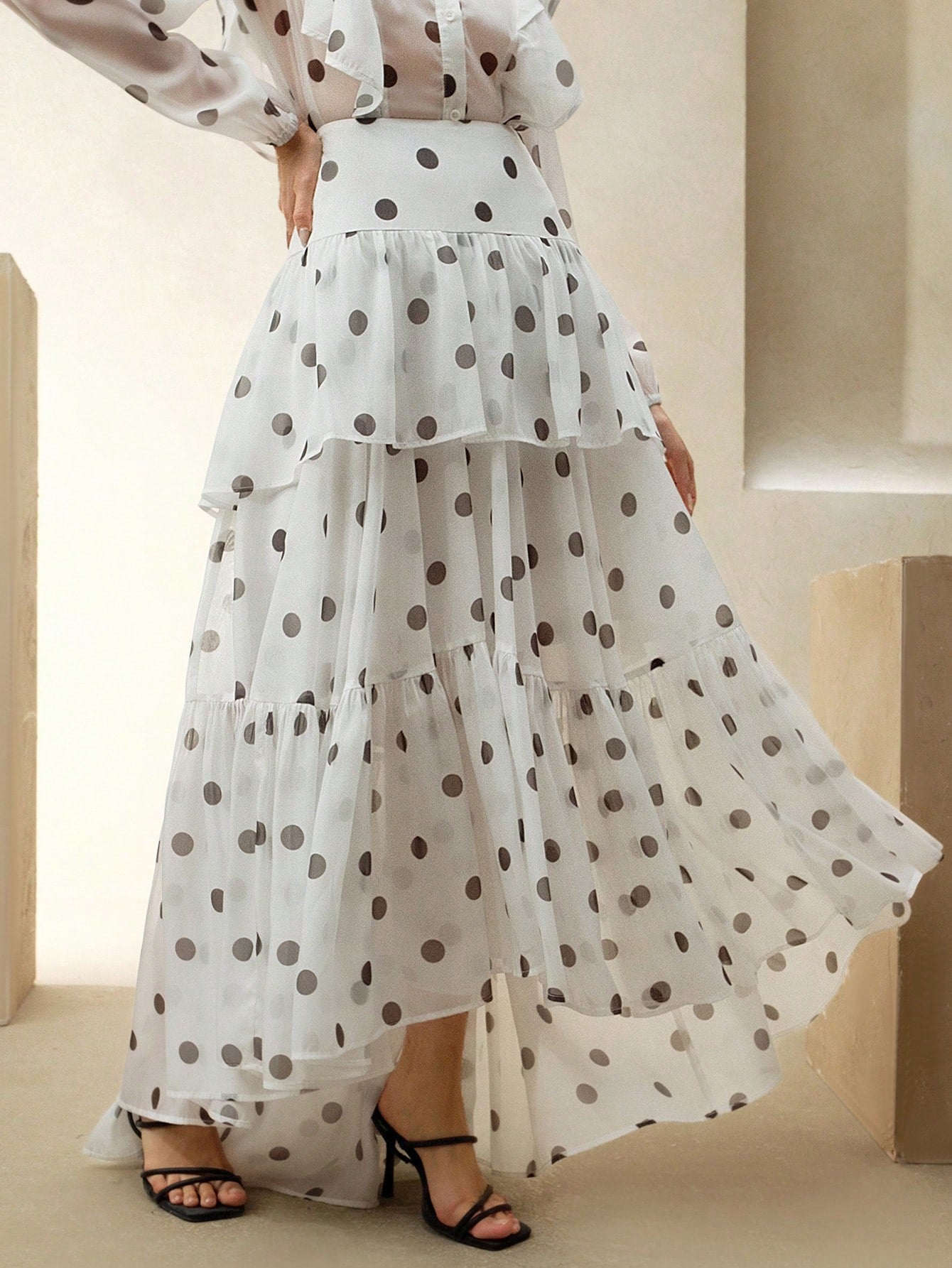 Anewsta Ruffle Polka Dot Half-Skirt, Flounce Hem Cake Skirt, Vacation Style, Spring/Summer