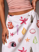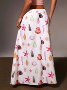 Athal Women's White Woven Fabric Casual Long Semi-Sheer Seashell Print Skirt
