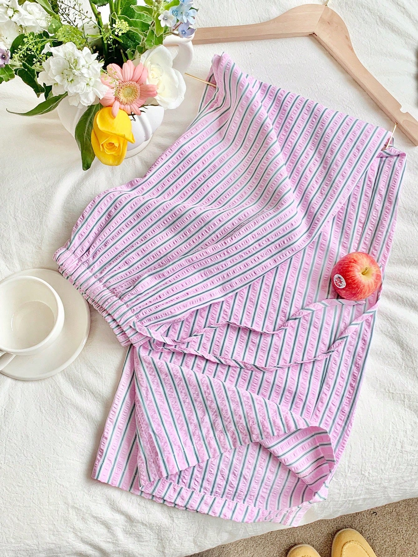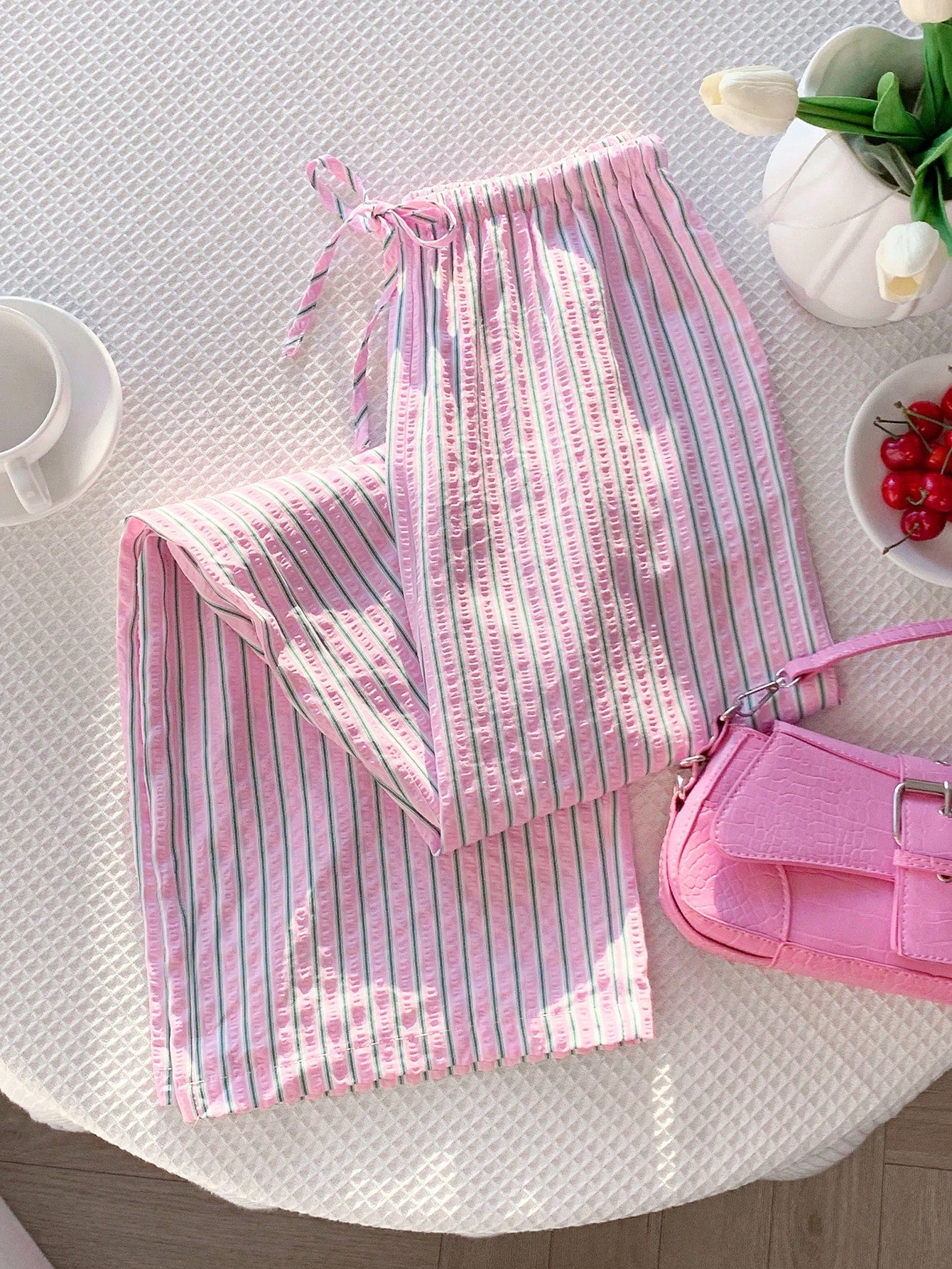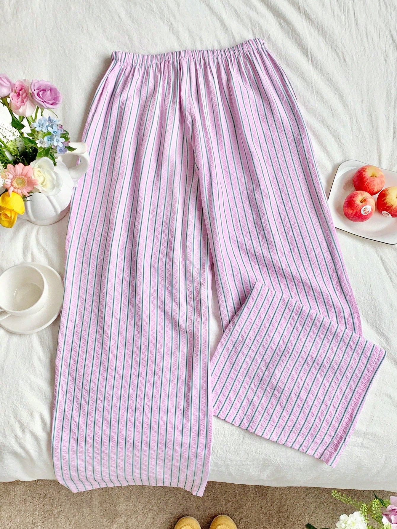 Comfortcana Women's Pink Striped Casual Pants, Suitable For Summer Vacation