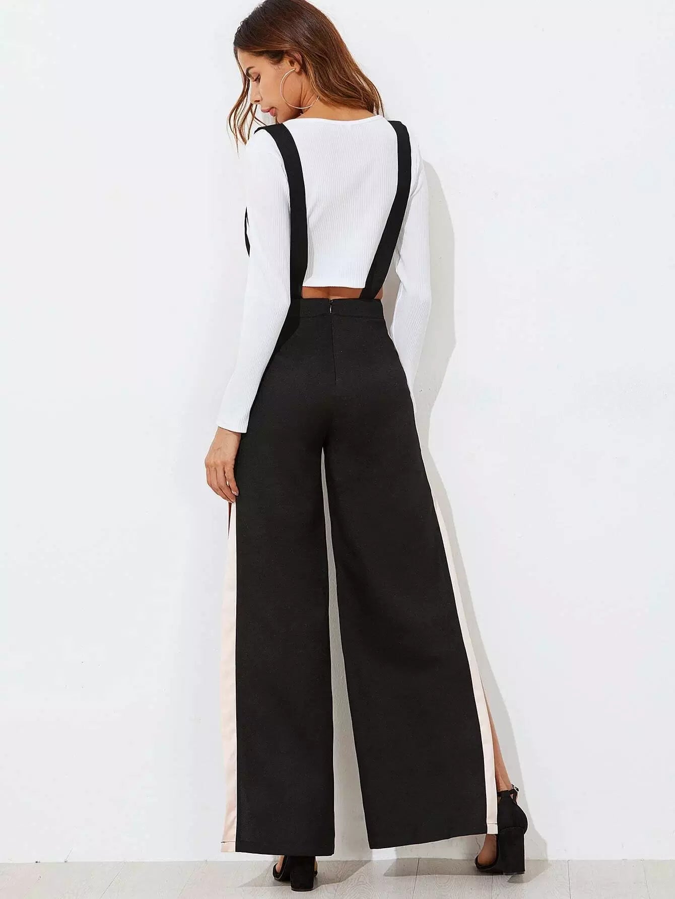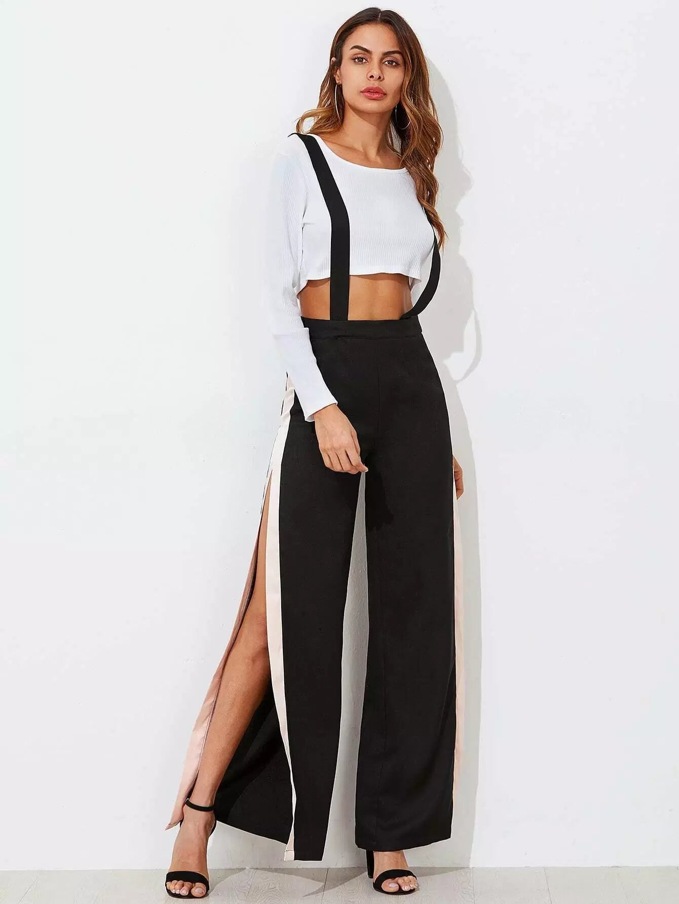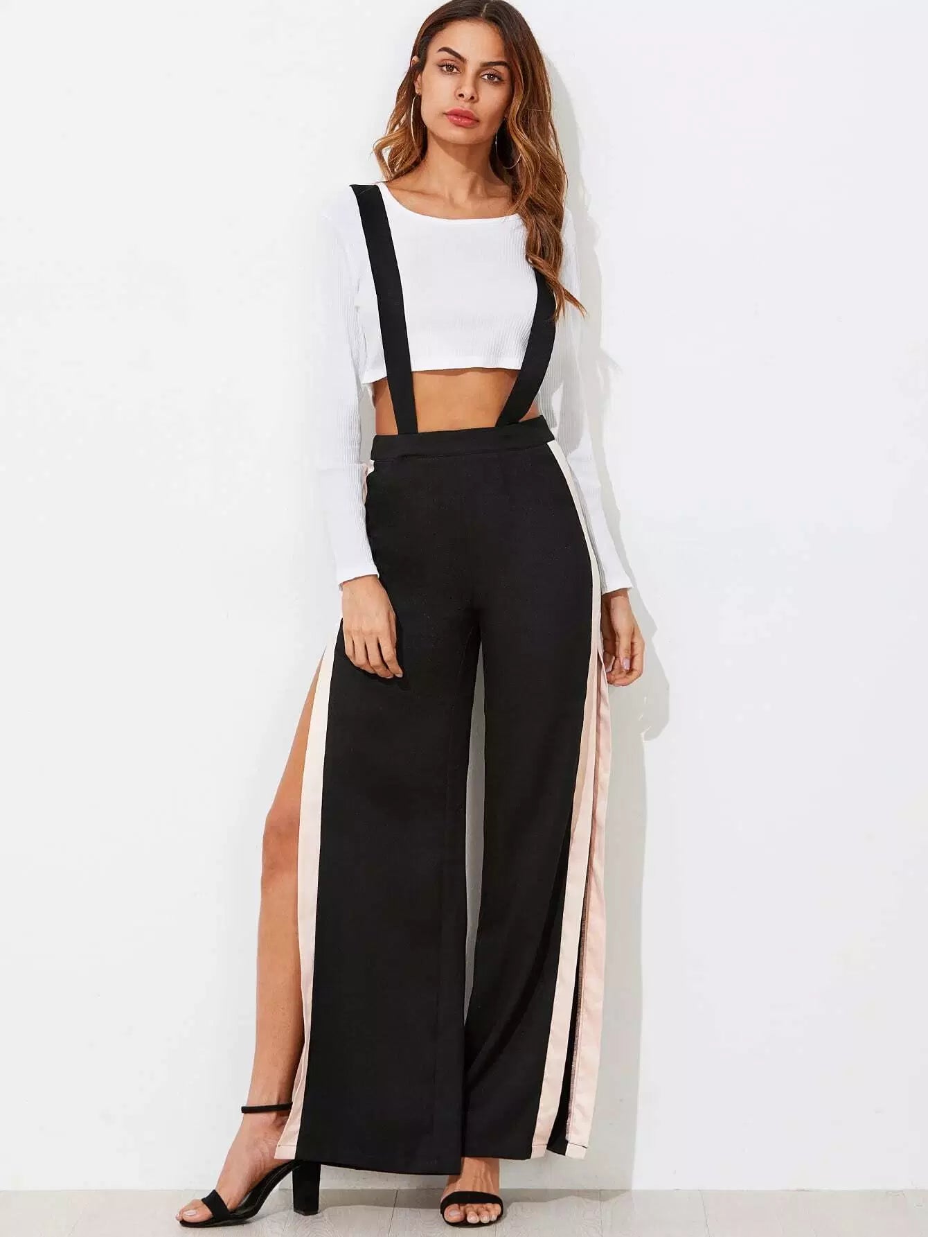 Women - Contrast Slit Side Wide Leg Pants With Strap