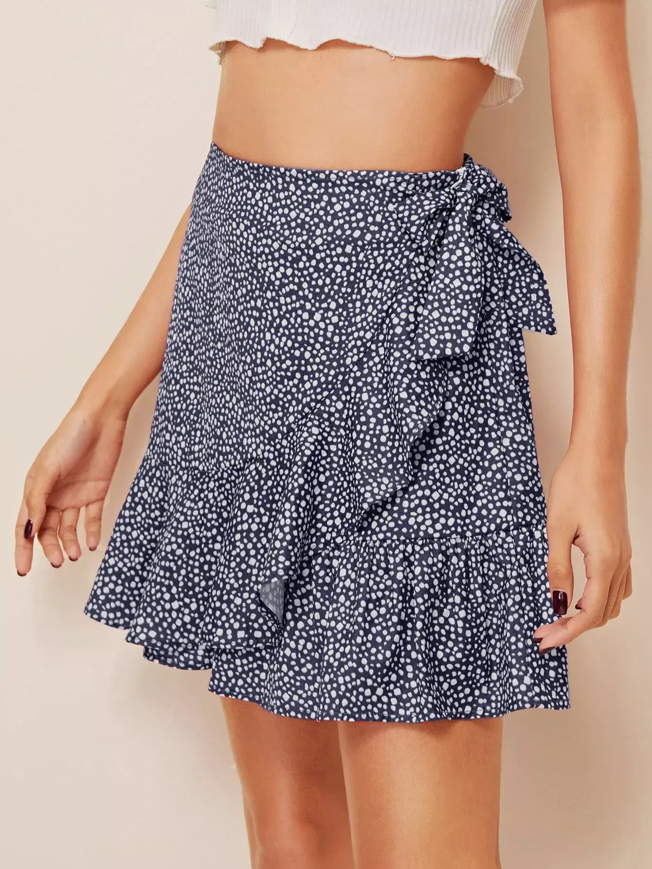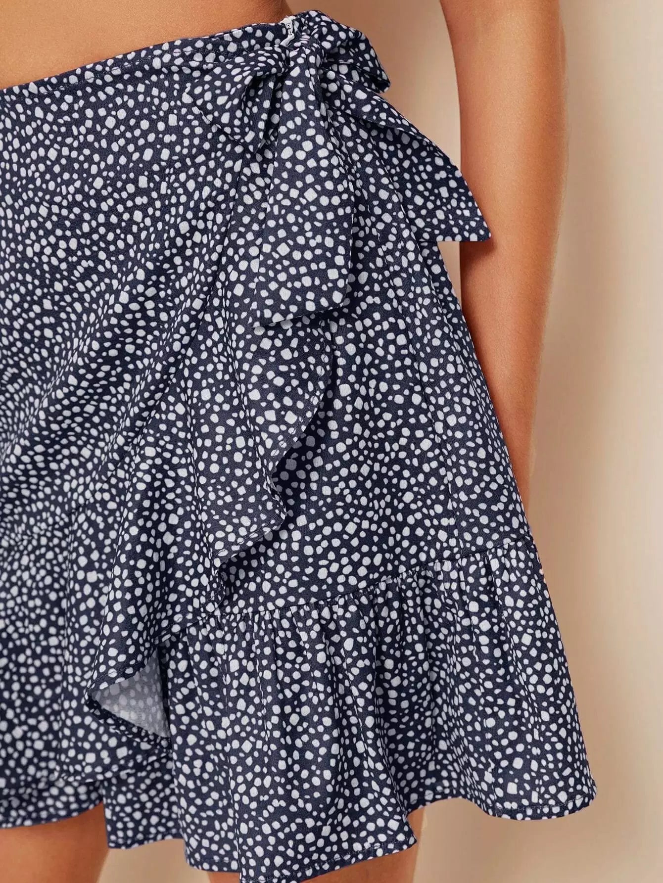 Dalmatian Print Ruffle Trim Tie Side Skirt