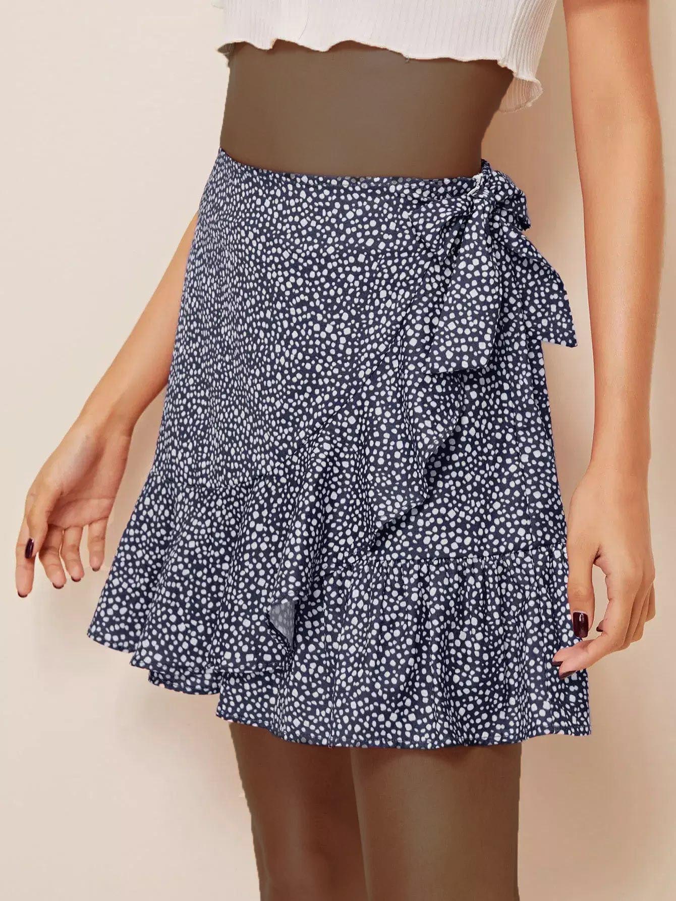 Women - Dalmatian Print Ruffle Trim Tie Side Skirt
