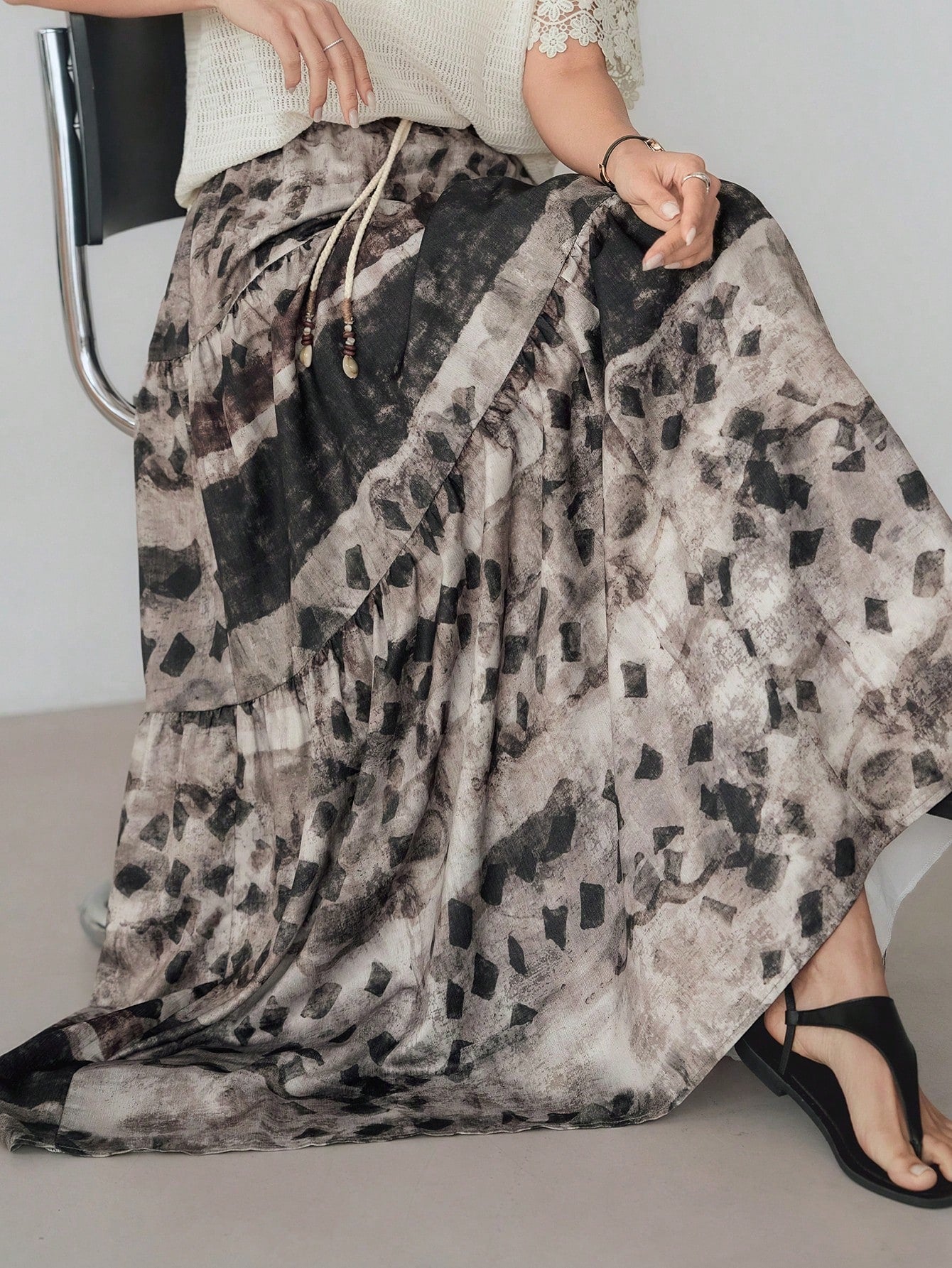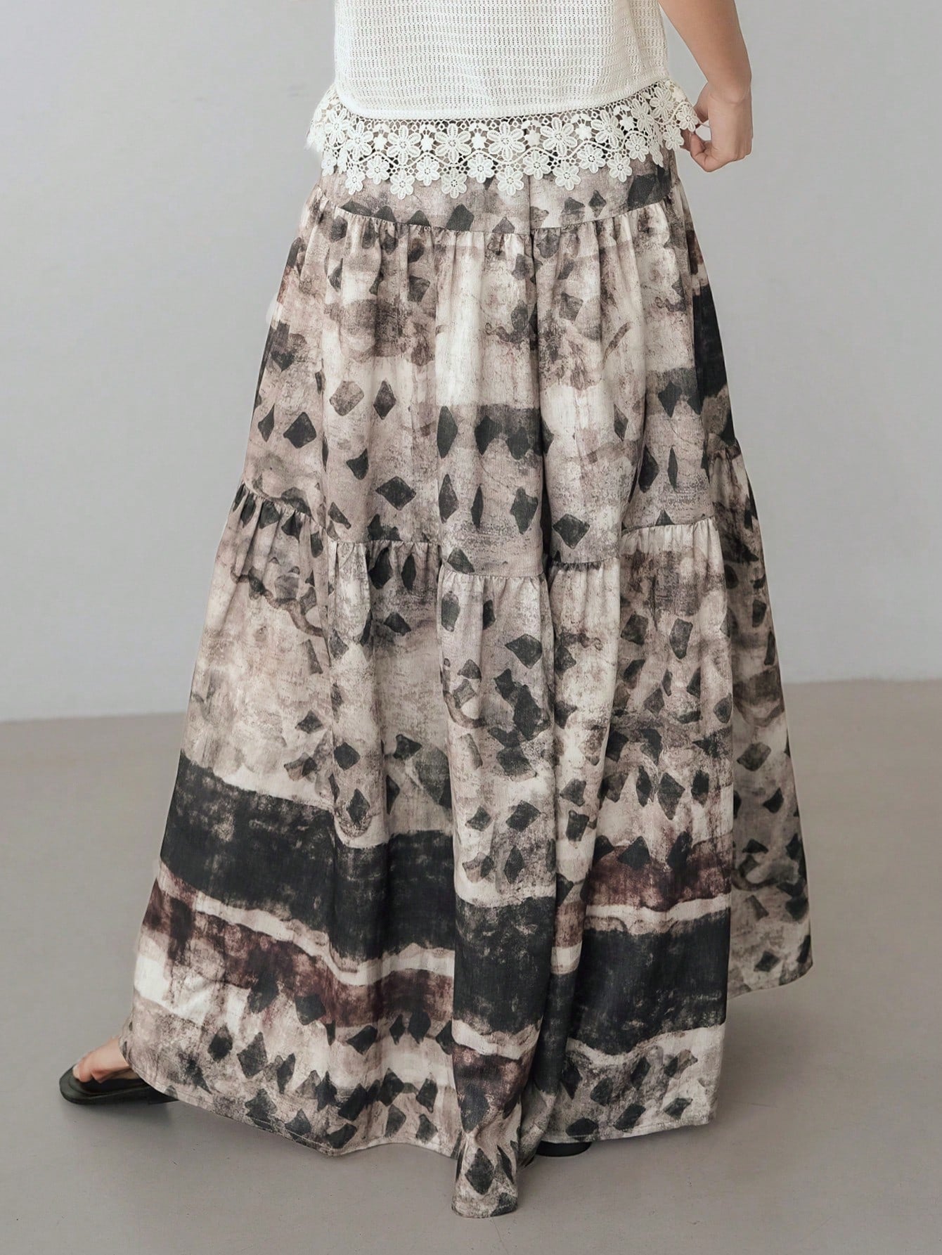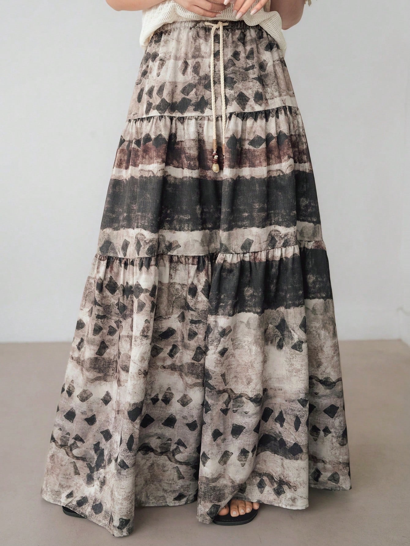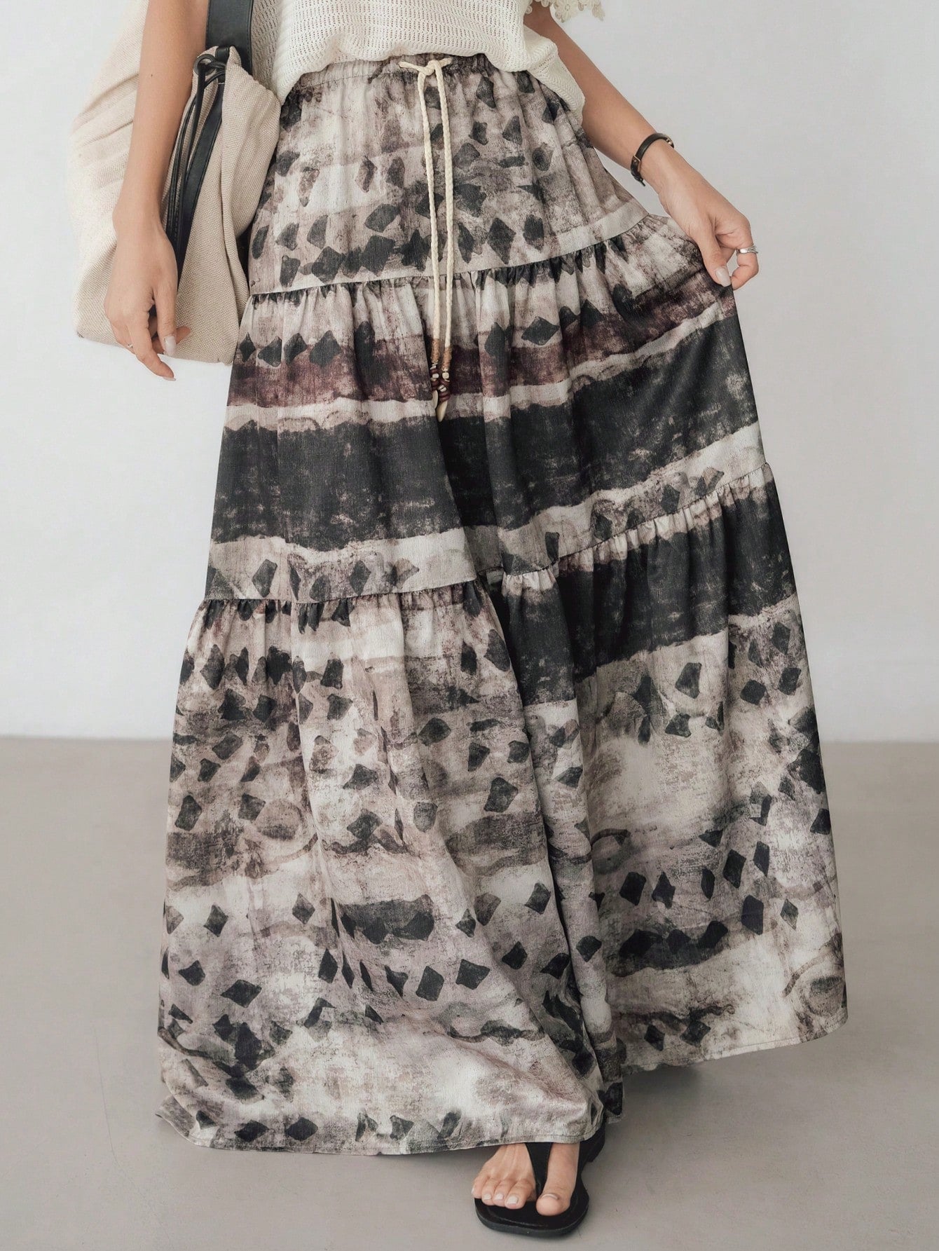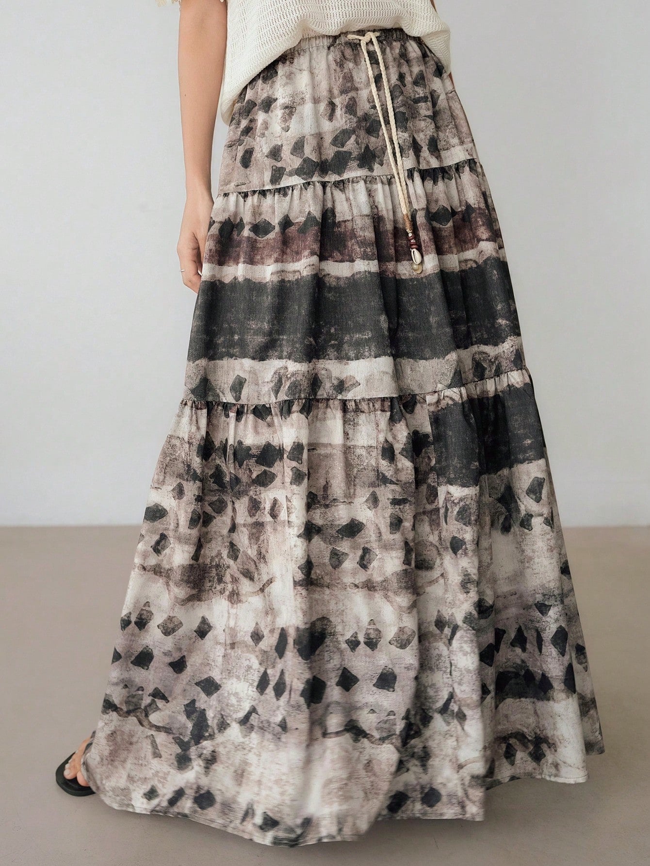 Dazy-Less Summer Loose Casual Vacation Style Tie-Dye Bohemian Print Beach T-Shirt And Skirt Sets For