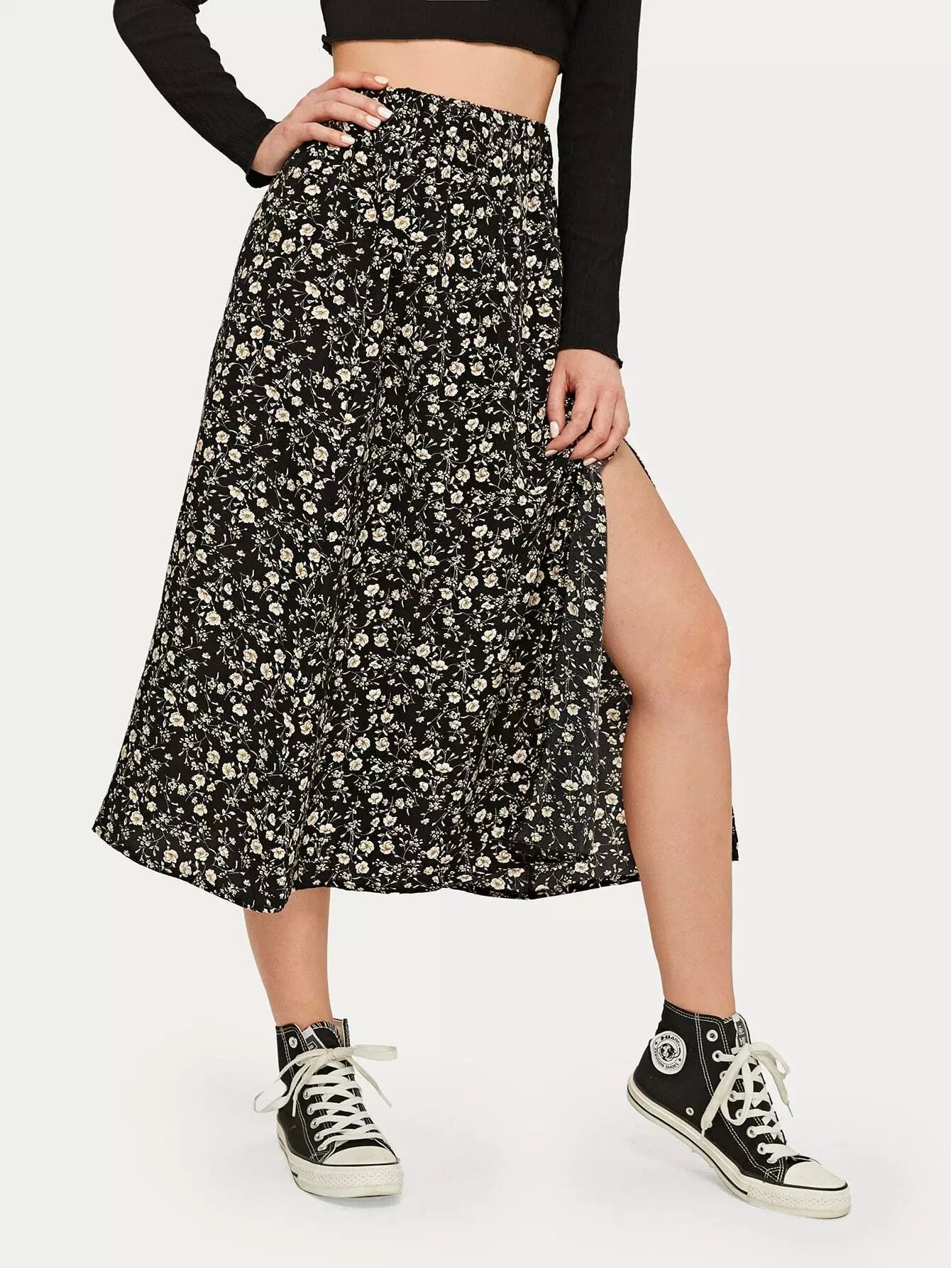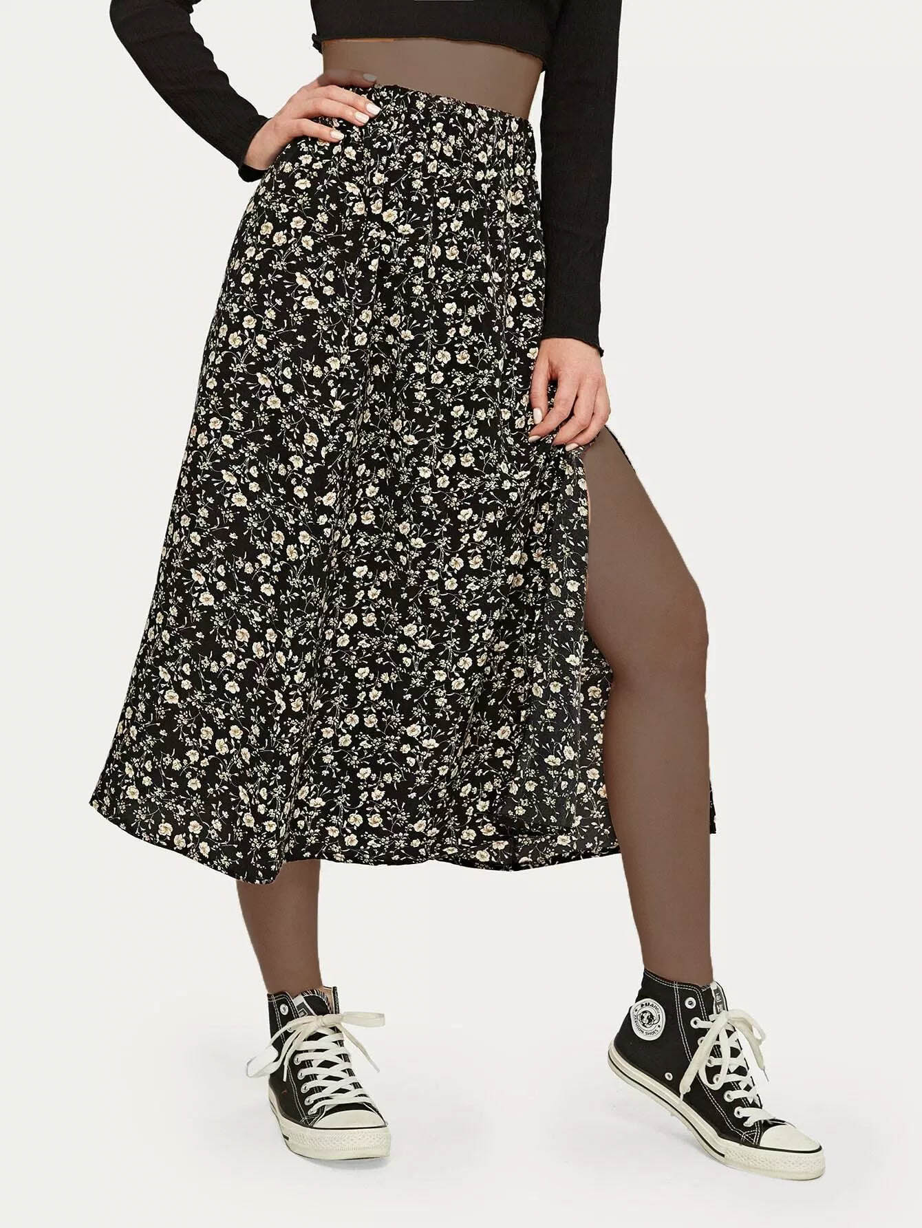 Women - Ditsy Floral Split Thigh Midi Skirt