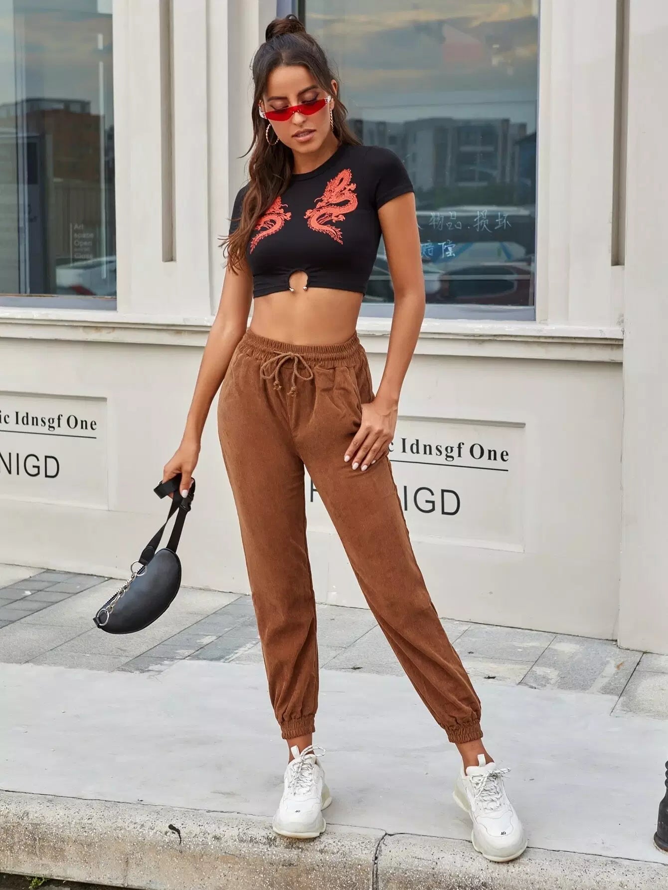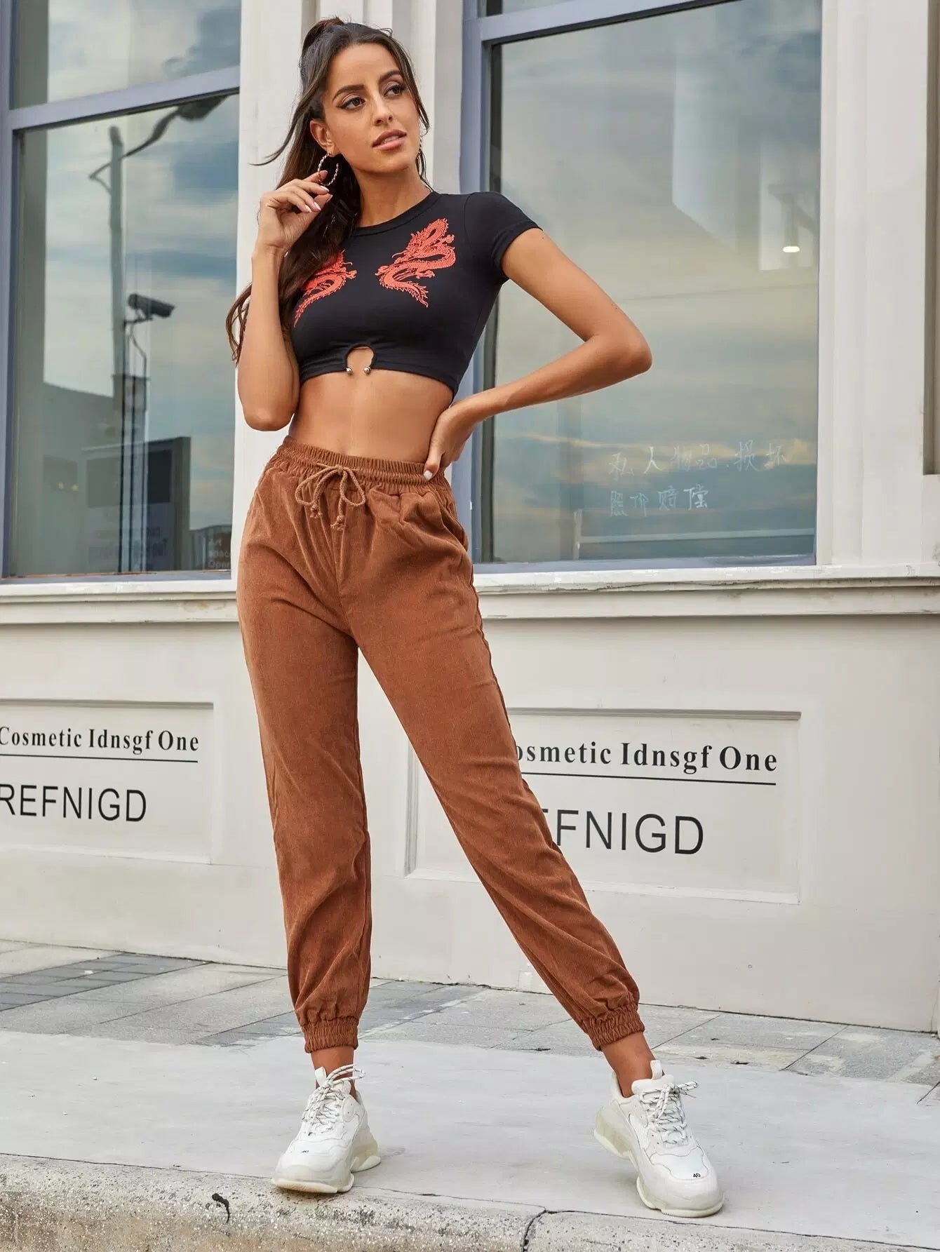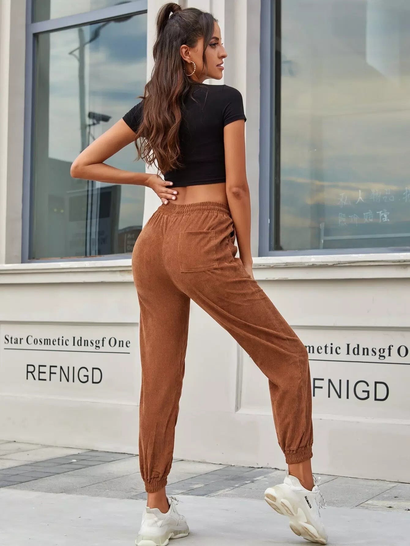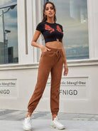 Drawstring Pocket Corduroy Carrot Pants