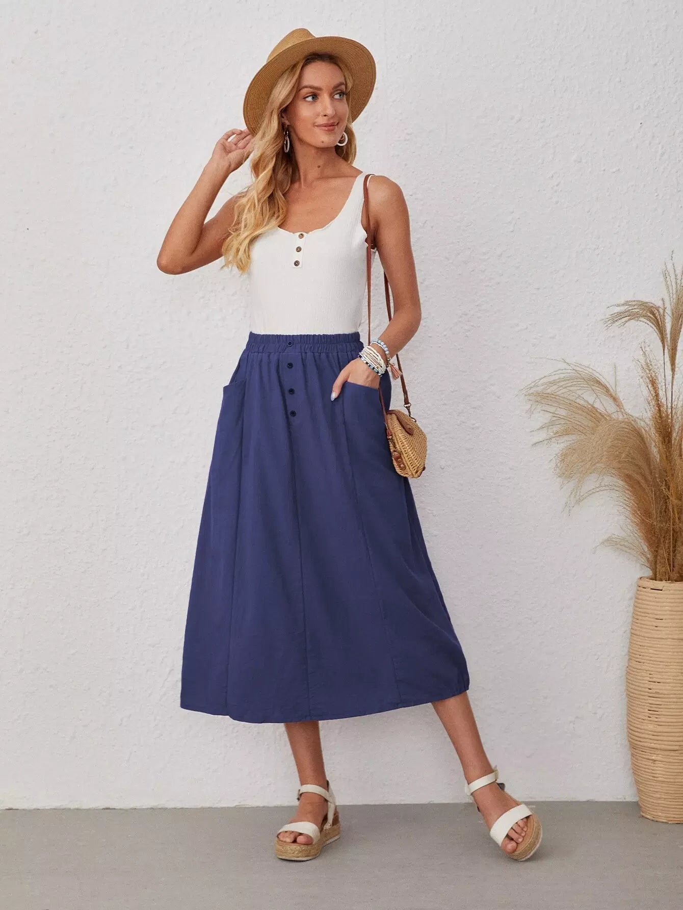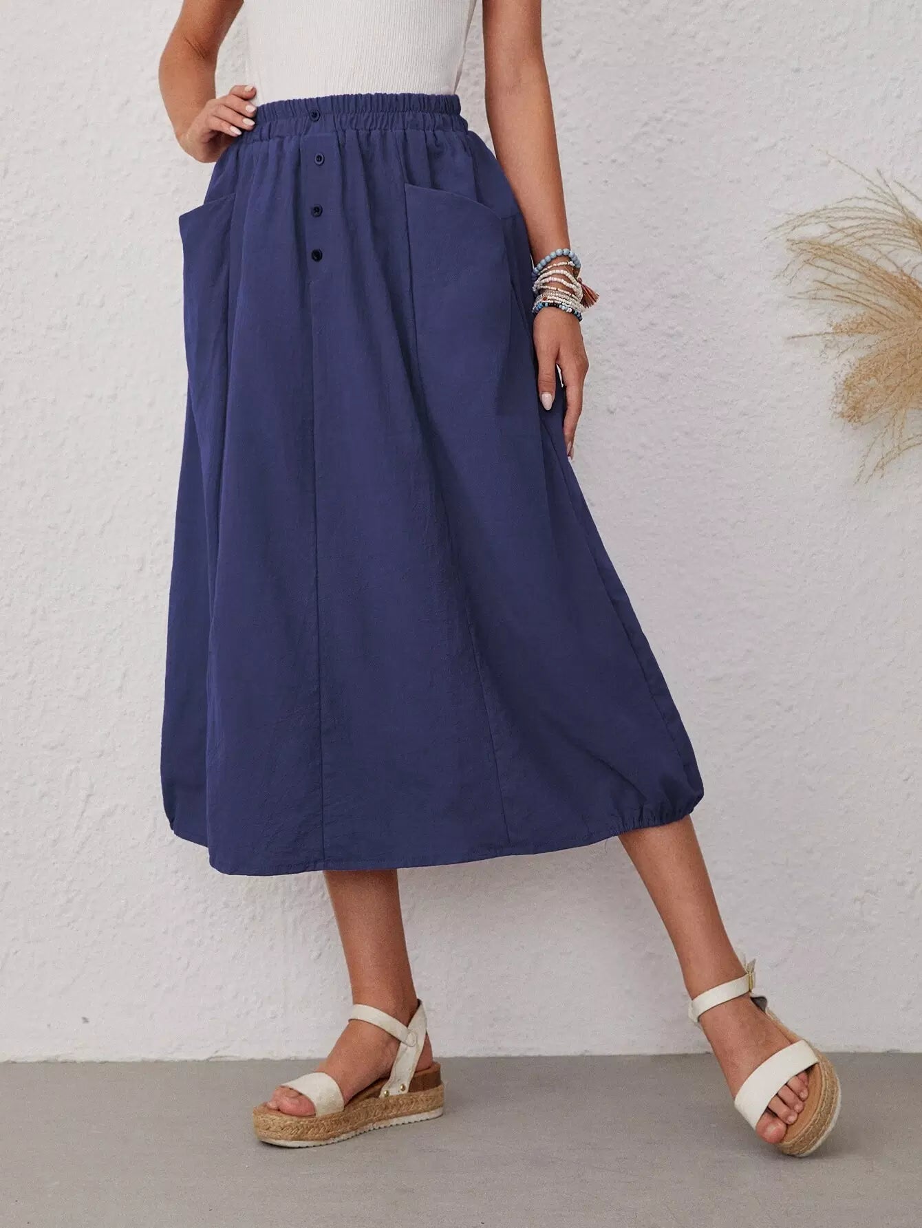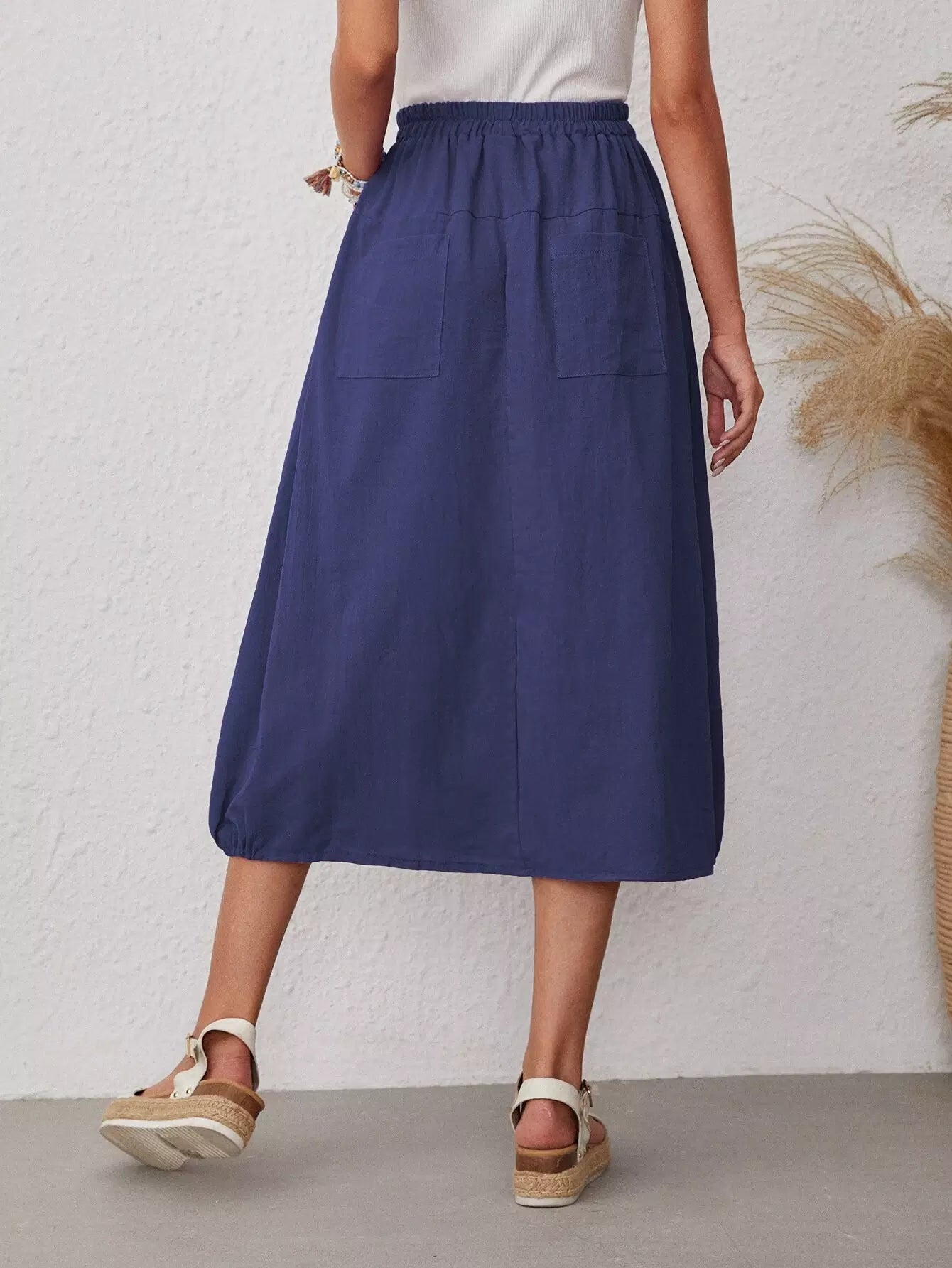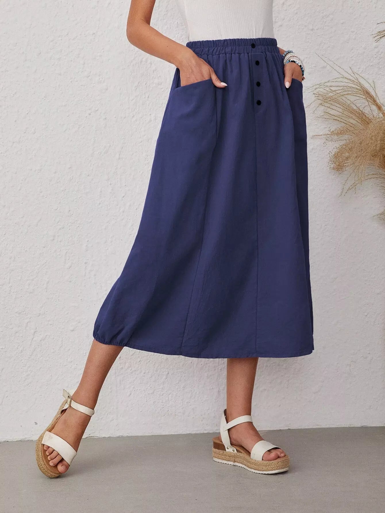 Dual Pocket Button Front Skirt