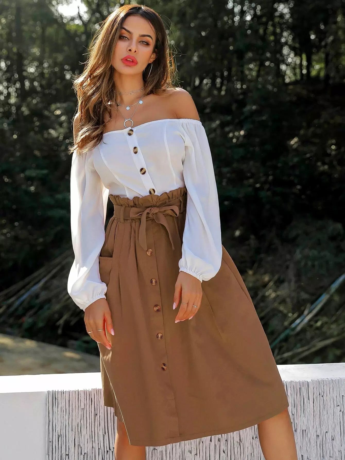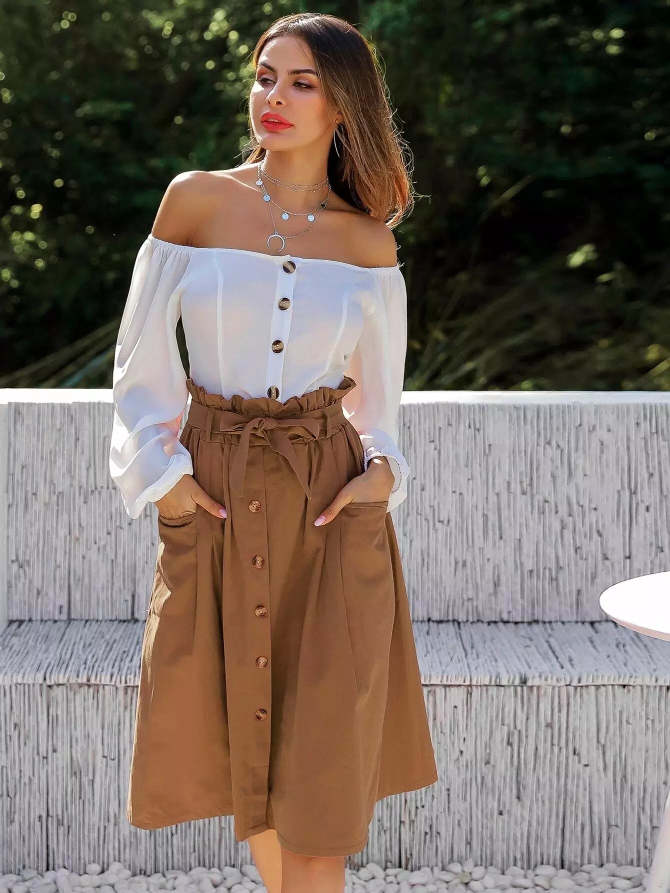 Dual Pocket Button Front Tie Waist Skirt