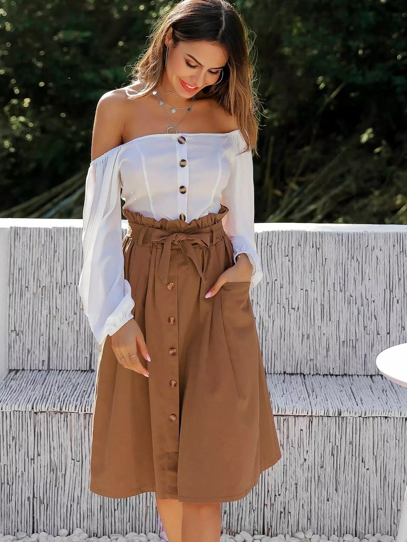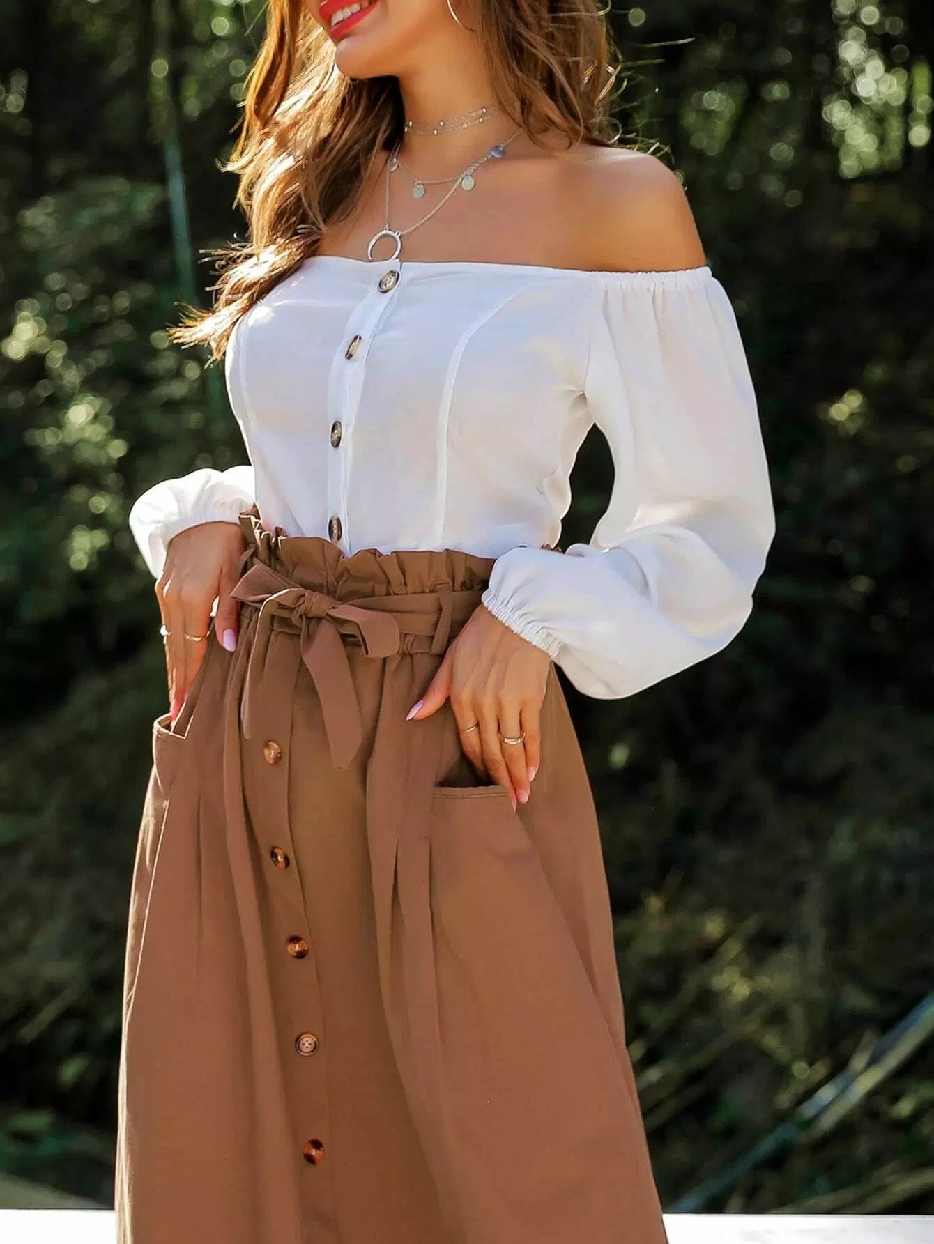 Women - Dual Pocket Button Front Tie Waist Skirt