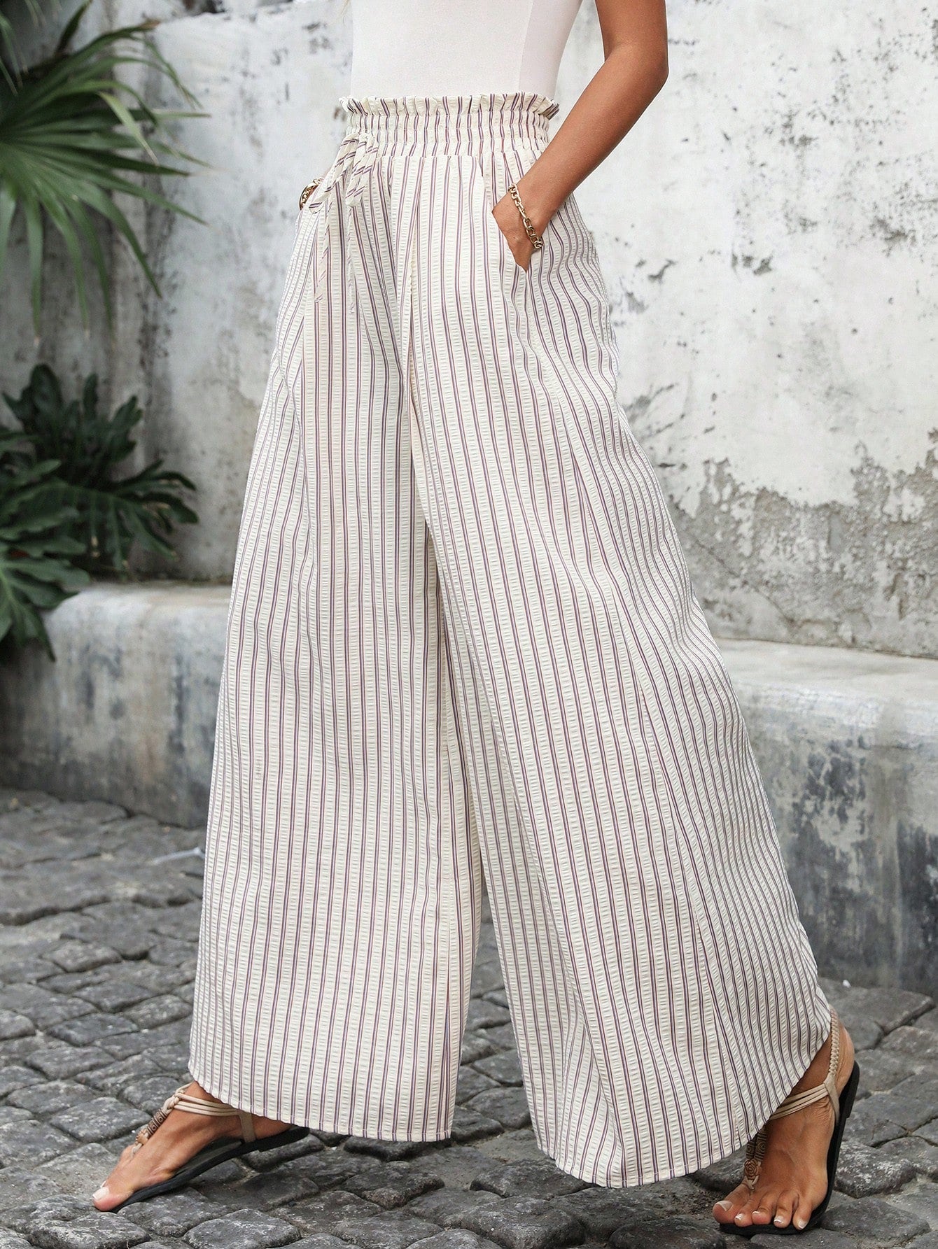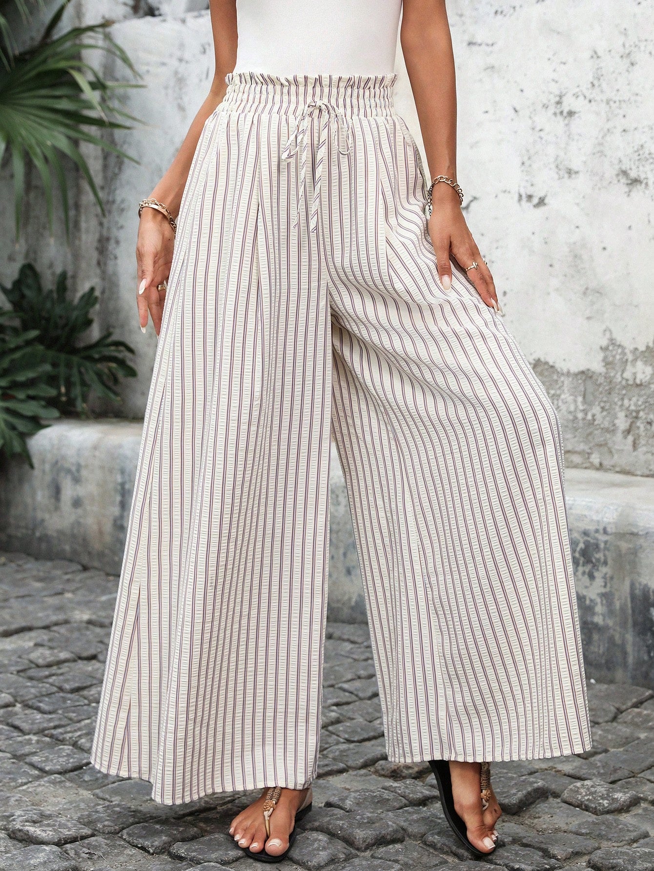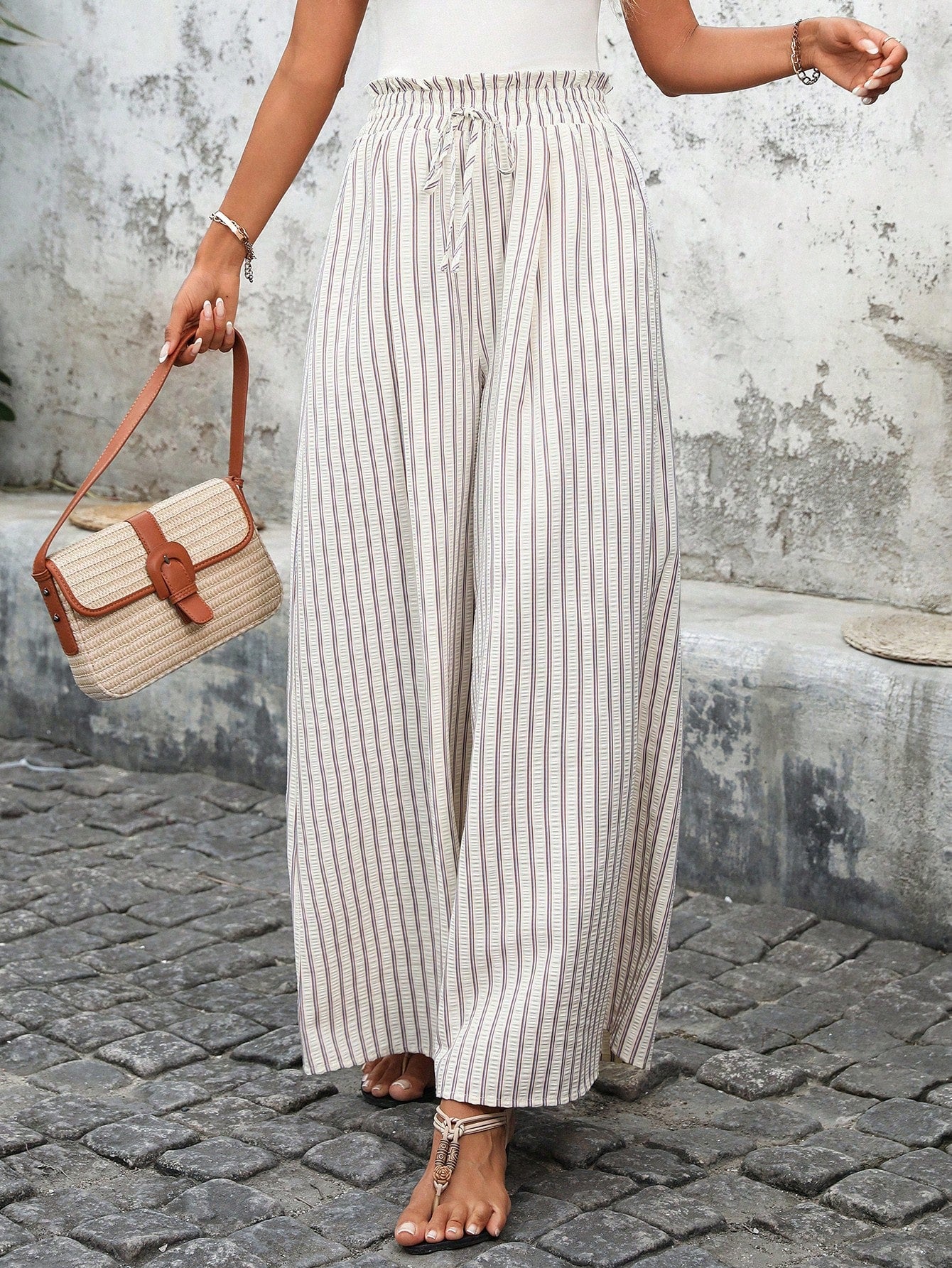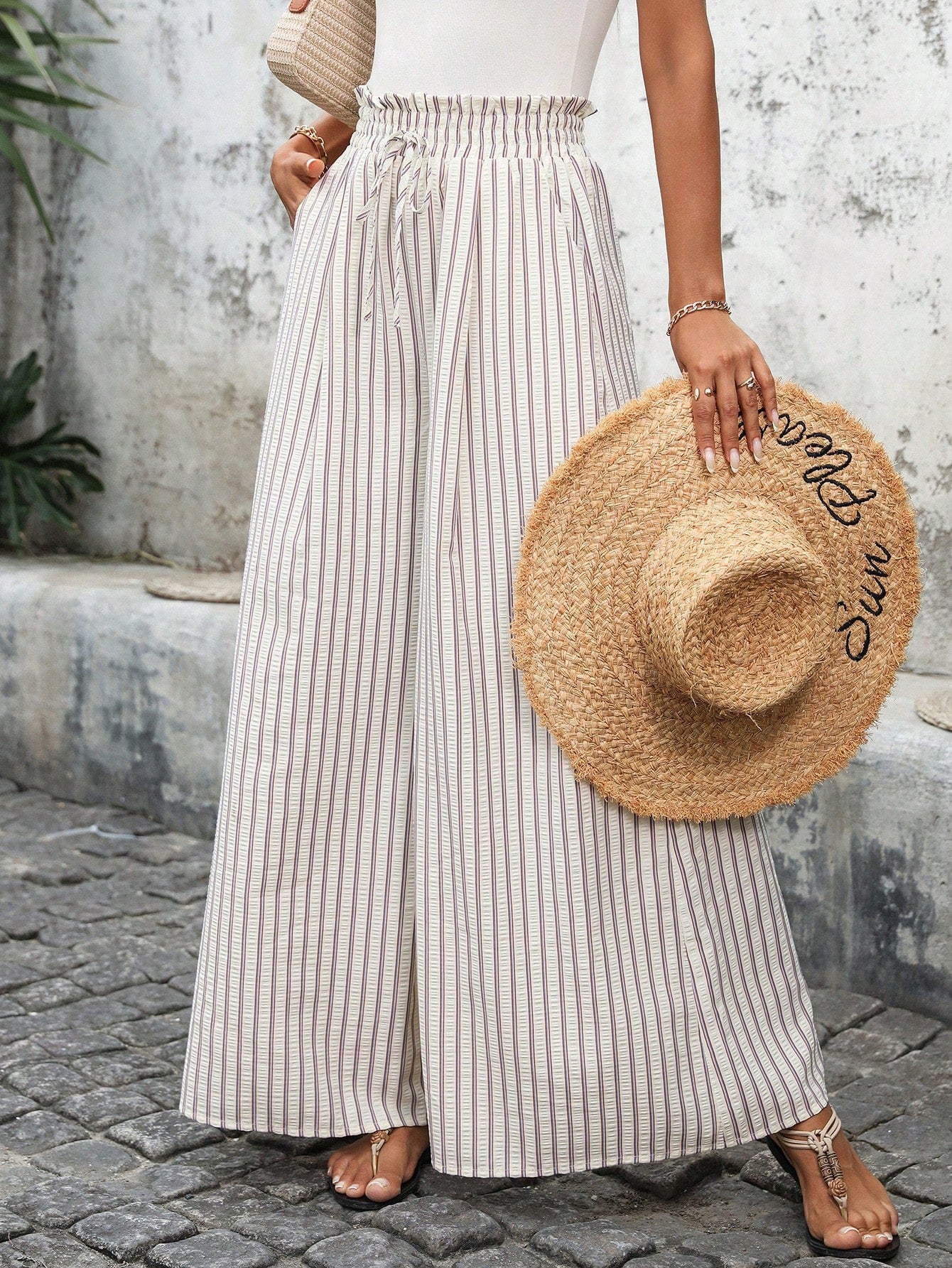 women EMERY ROSE Women's Romantic Striped Print Paper Bag Waist Long Pants