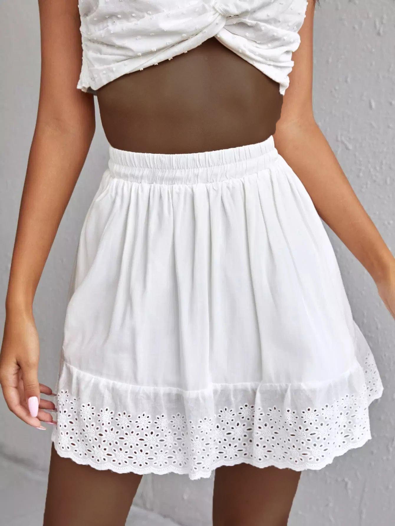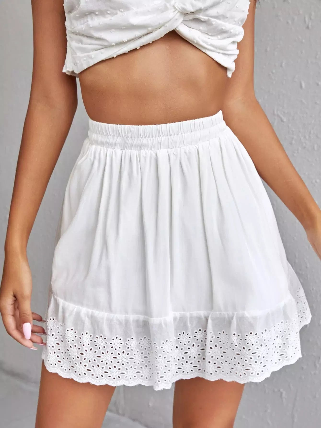 Women - Eyelet Embroidery Ruffle Hem Skirt