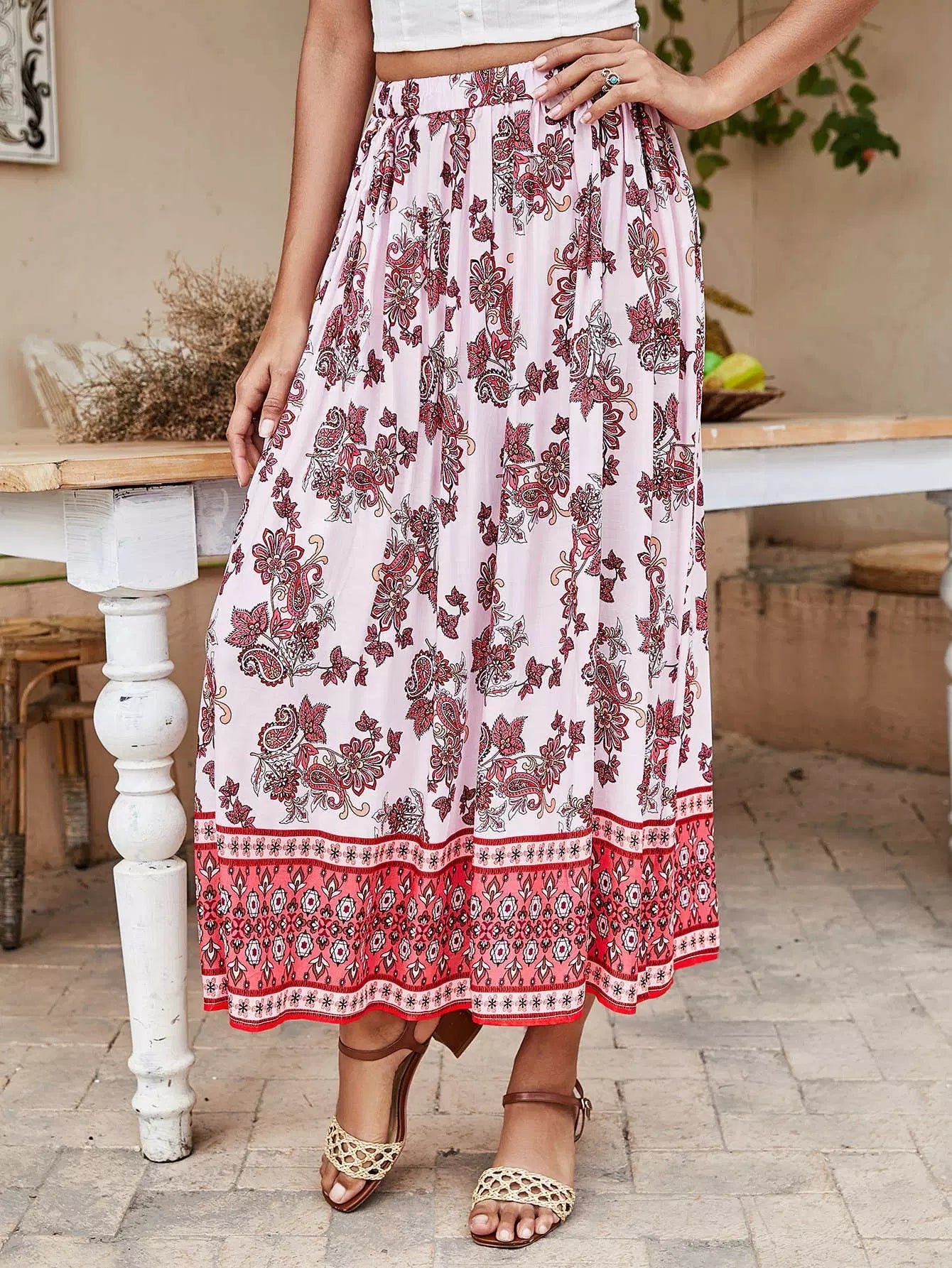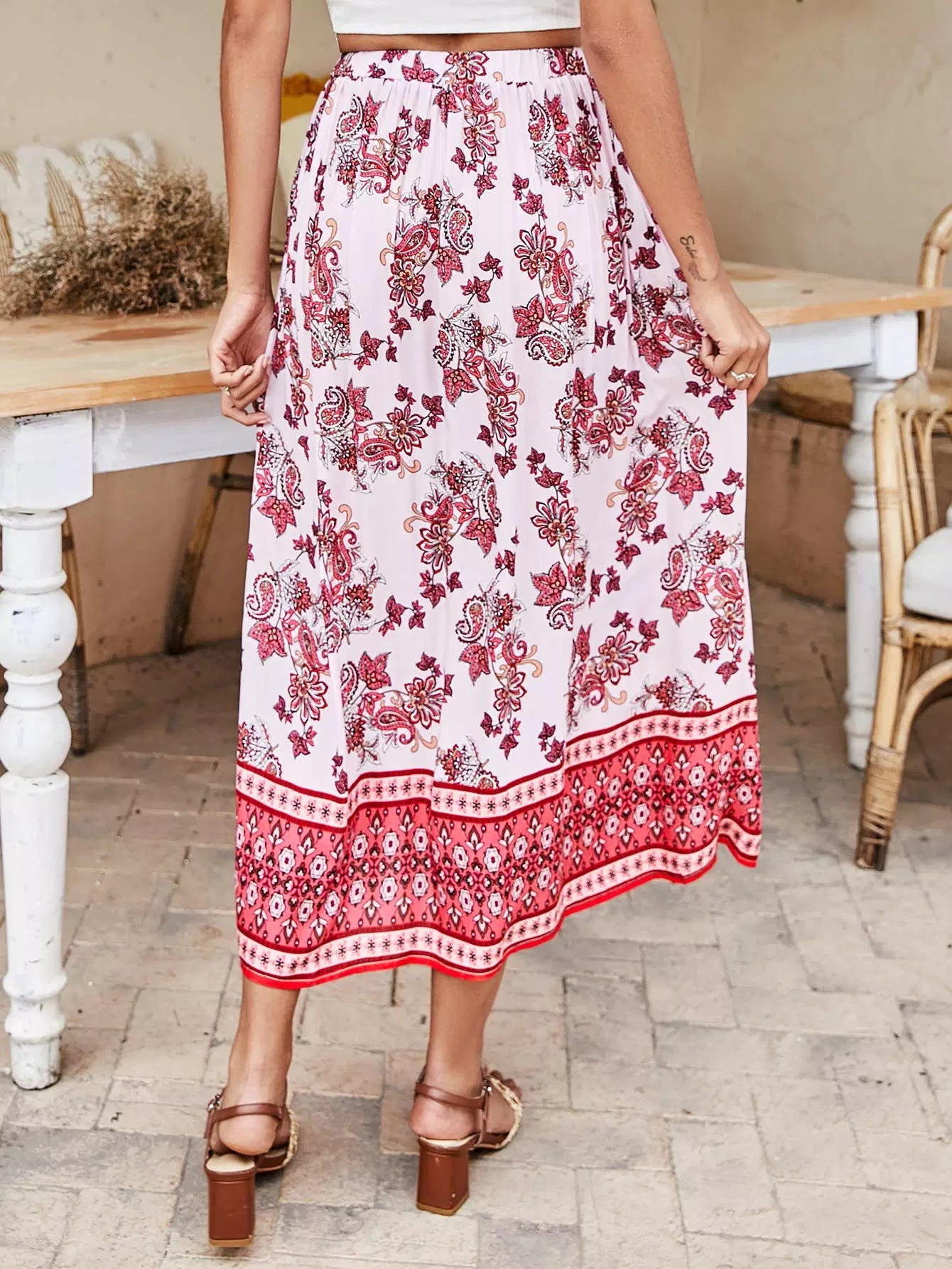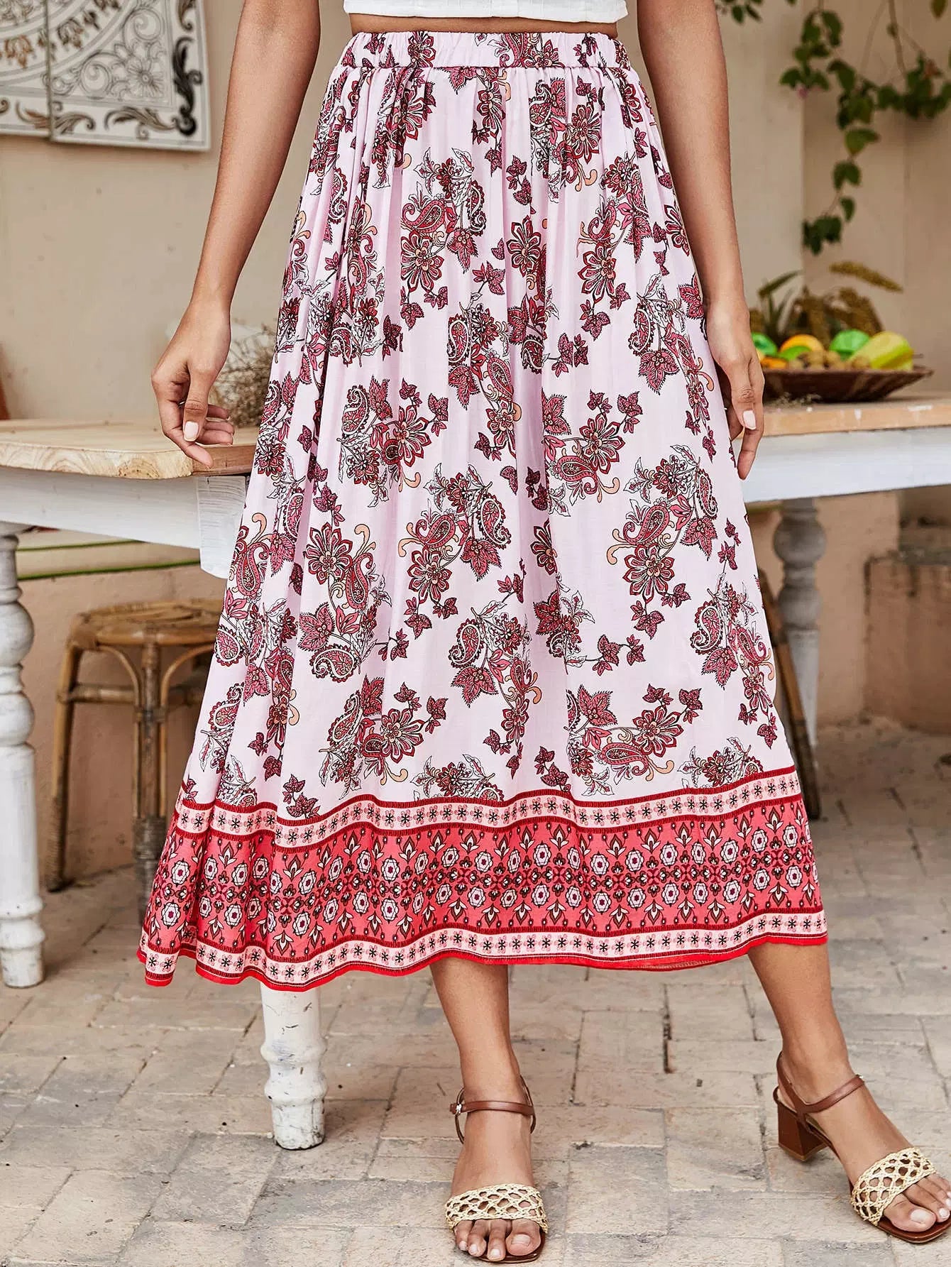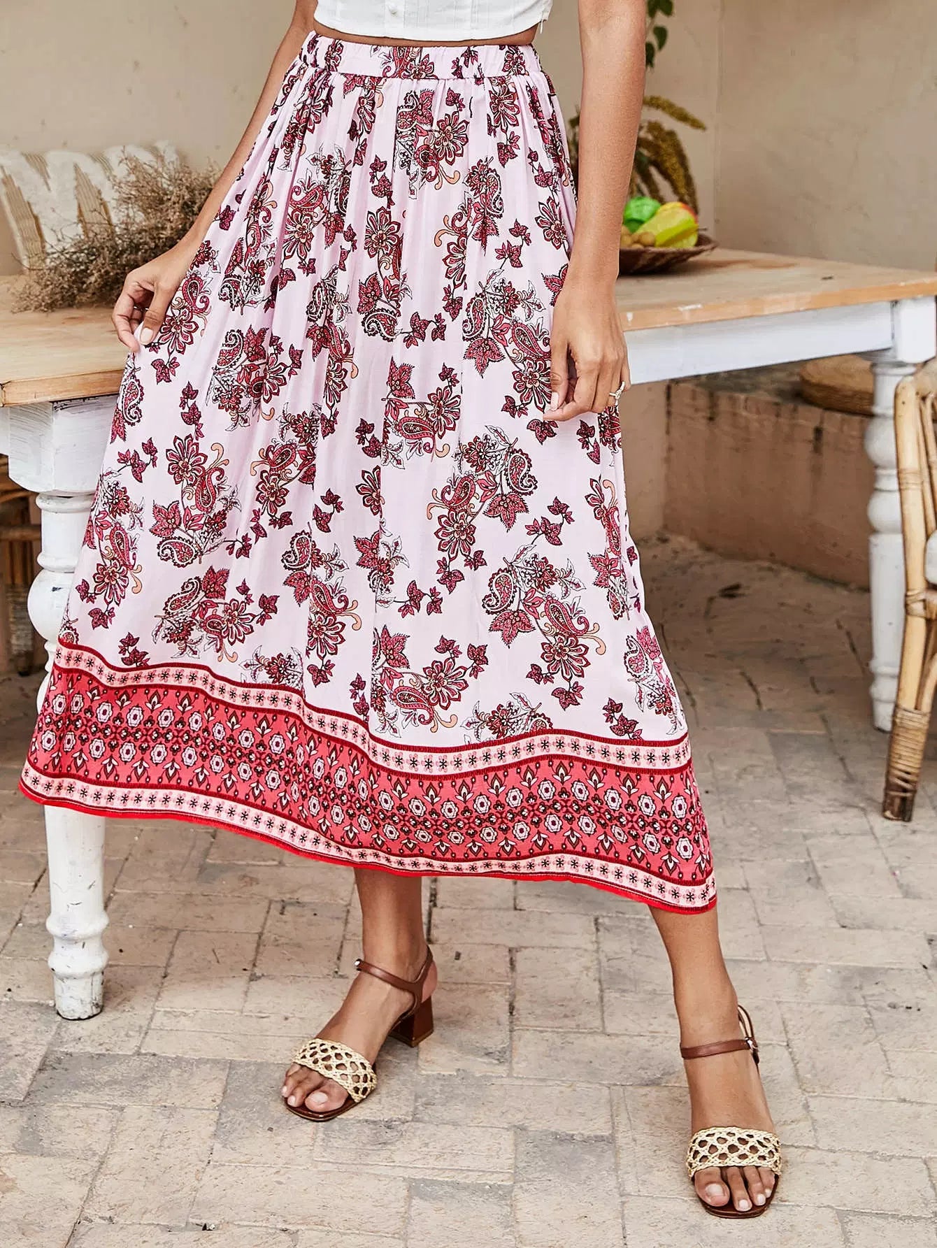 Floral & Paisley Print Skirt