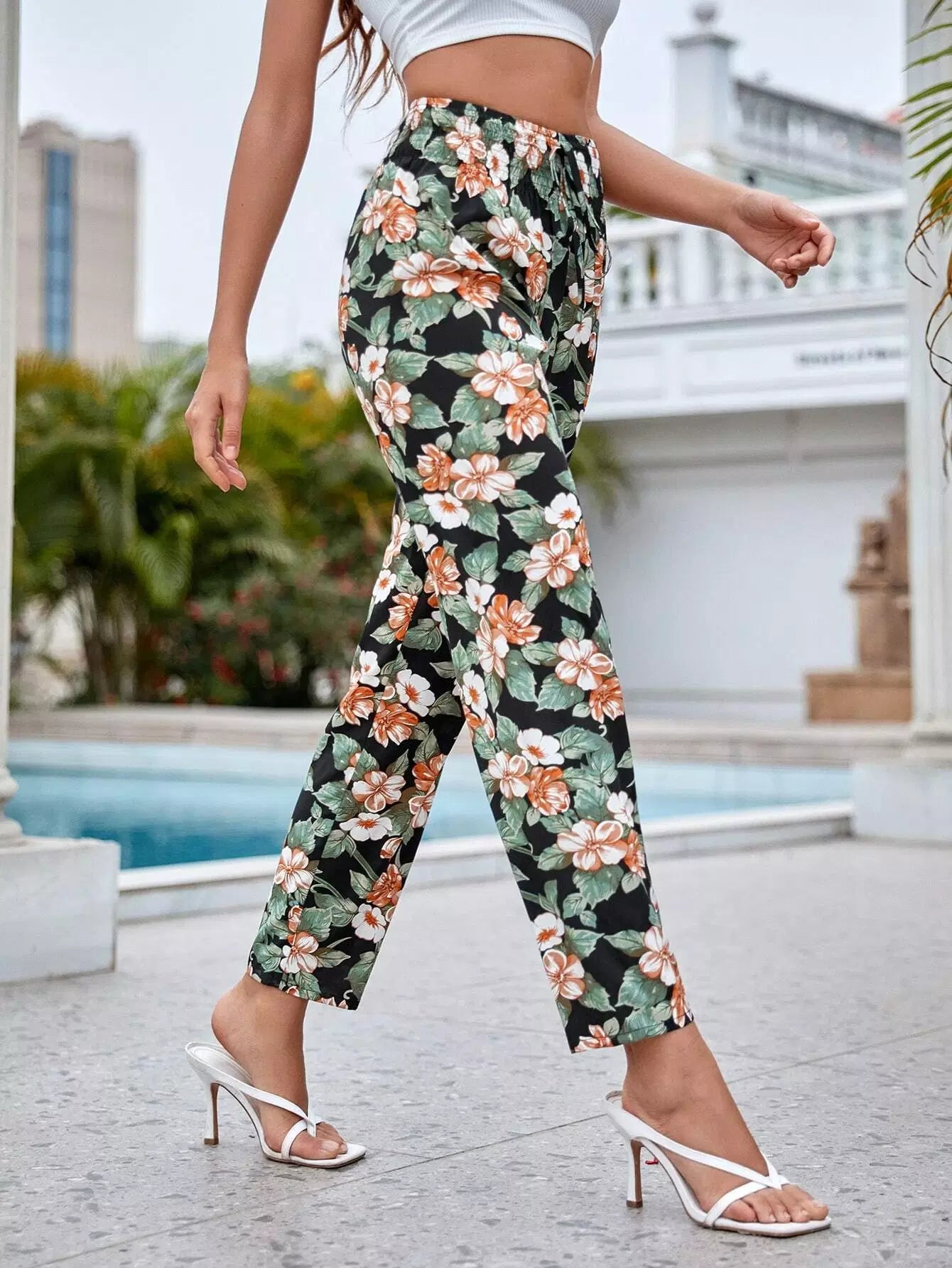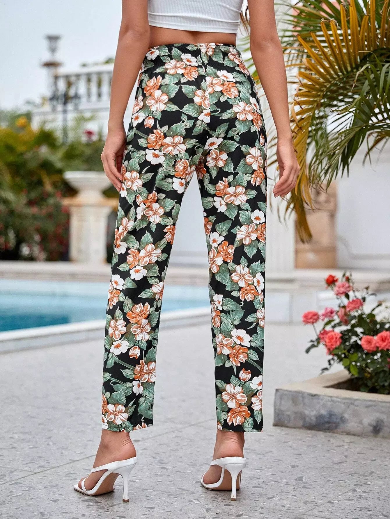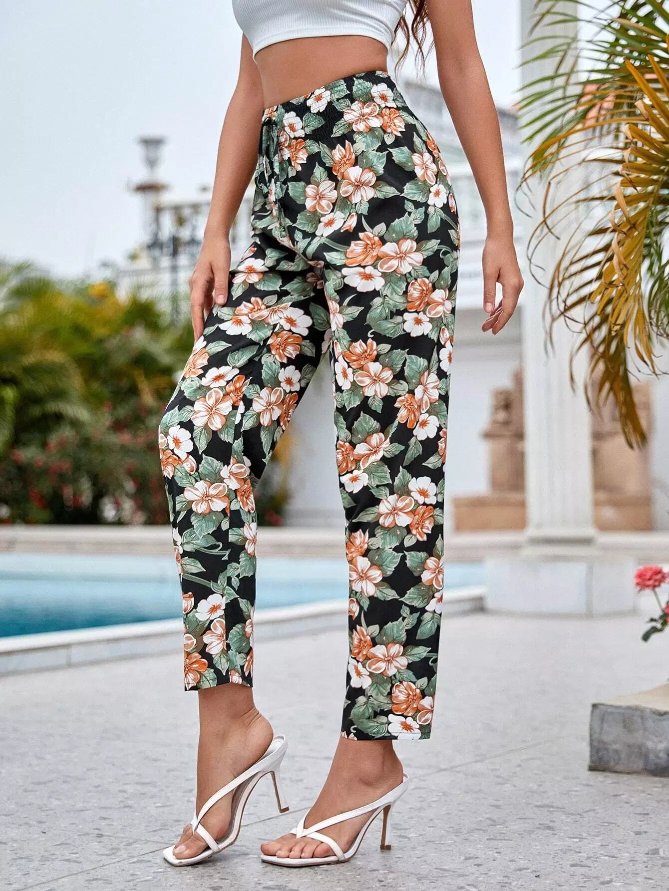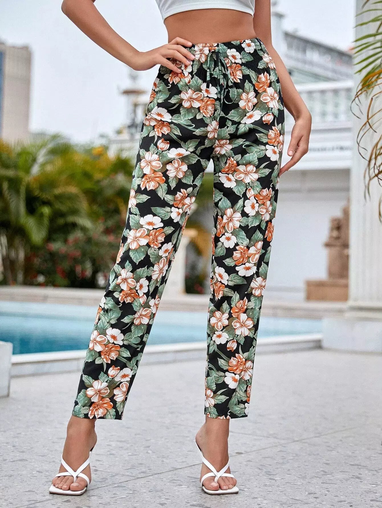 Knot Waist Floral Print Pants
